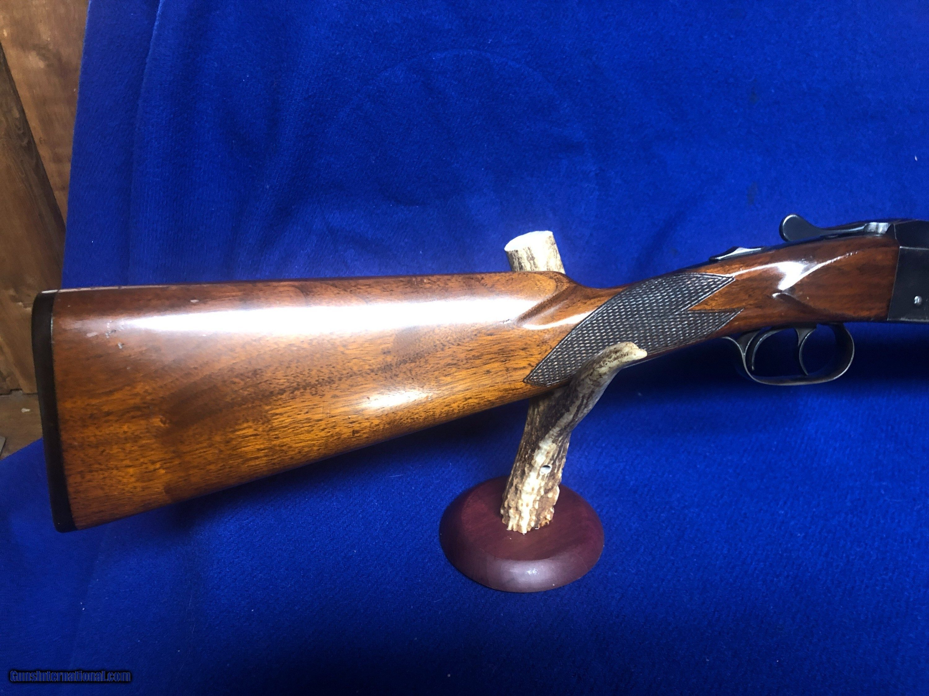 Description: IVER JOHNSON 410 SIDE BY SIDE serial 29044 (circa 1931-1943) 28 " solid matted rib bbls choked F&F with 3 " chambers. Box lock non-ejector with double triggers and auto saftey. Straight Grip Stock 14 1/4 " LOP, 2 3/4 drop at heel to nice original Owls Head Butt Plate. Semi beavertail forearm with D&E fastener. Bores are excellent. Bluing is very good. Stock and forearm are excellent original finish with light handling marks (see pics). (This is a late gun that is not a Hercules or Hammer Forged. is like a Skeeter but not so Marked?. Left side of frame -IVER JOHNSON- Right side has address (see pics) Very nice vintage American quality built 410 Shotgun. Manufacturer: Iver Johnson Model: side by side Serial Number: 29044 Barrel Length: 28 Chambers: 3 Ejectors: non ejector Condition: VERY GOOD Metal Condition: VERY GOOD Wood Condition: VERY GOOD Bore Condition: EXCELLENT Action: Break Triggers: double Stock: WALNUT Stock Dimensions: FACTORY STANDARD Manufacture Date: circ 1931_1943 Chokes: F&F Price: $2,950.00 Shipping: $65.00 Contact Seller |