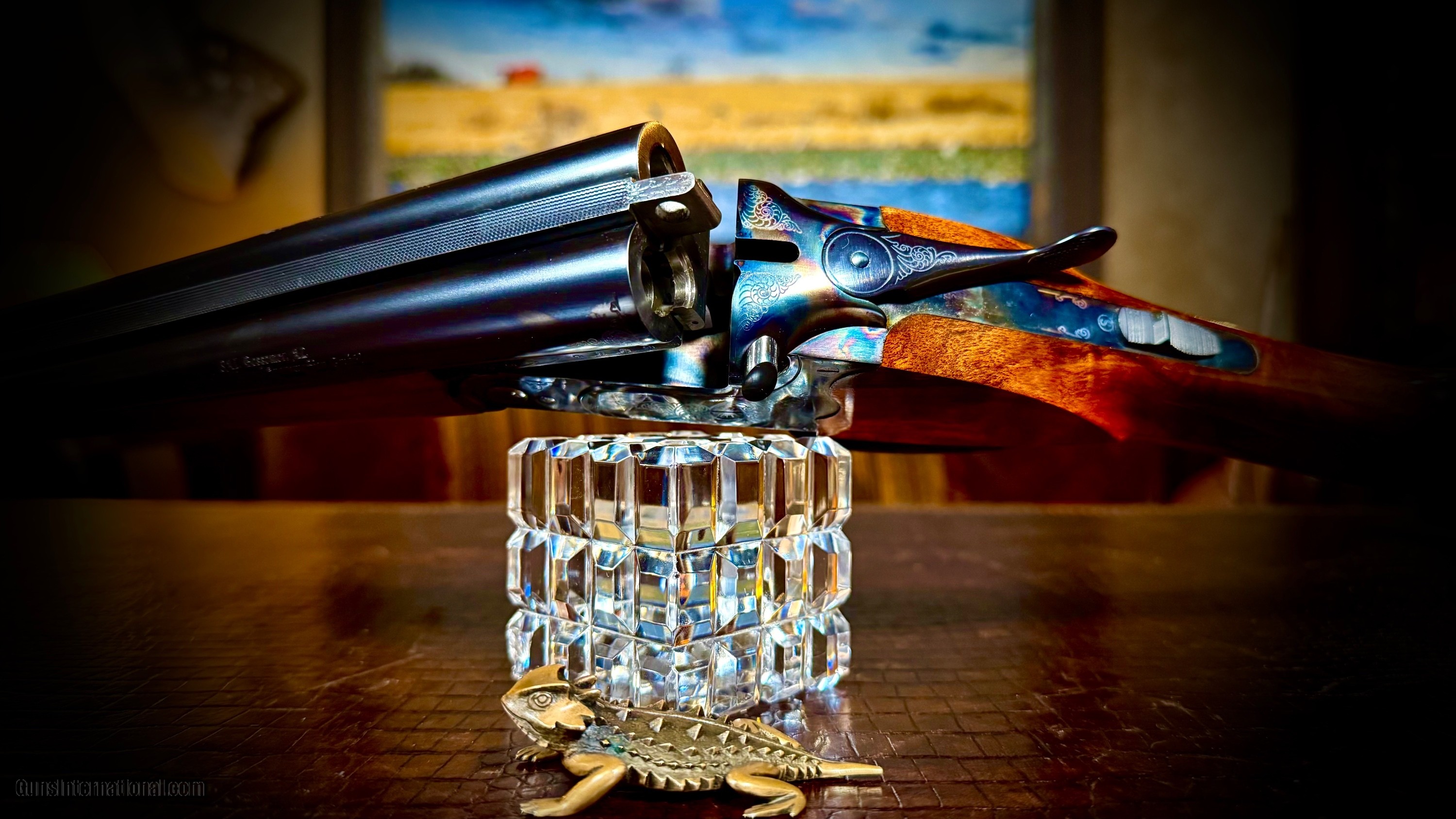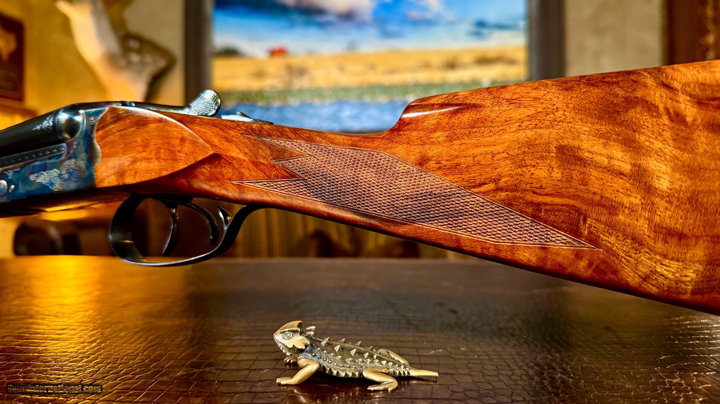 Shotgun Gauge: .410 Gauge Manufacturer: MERKEL Model: 360 SXS DOUBLE TRIGGER BLE Serial Number: 388725 Barrel Length: 28 Chambers: 3 Ejectors: CRISP TIMED Condition: AS NEW -- ONLY WEAR I COULD FIND I HAD TO USE INSPECTION LAMP (BOTTOM OF RECEIVER AND TINY EVIDENCE) Metal Condition: 99% Wood Condition: 99% AS NEW Stock: ENGLISH STRAIGHT GRIP Stock Comb: 1 1/2" Stock Heel: 2 1/2" Stock Cast: 100% NEUTRAL Fore End: SPLINTER Butt Pad: MERKEL BUTTPLATE LOP: 14 3/8" TO FRONT TRIGGER -- 13 1/2 TO REAR TRIGGER Rib: SOLID RAISED GAME RIB Finish: HAND RUBBED OIL Weight: 5 LB 12 OZ Chokes: MOD / FULL FIXED Engraving: ARABESQUE ENGRAVED Extras: ALL AS SEEN IN PHOTOS Case: BOX -- NO CASE Price: $10,995.00 Shipping: $75.00 Buy Now Contact Seller |