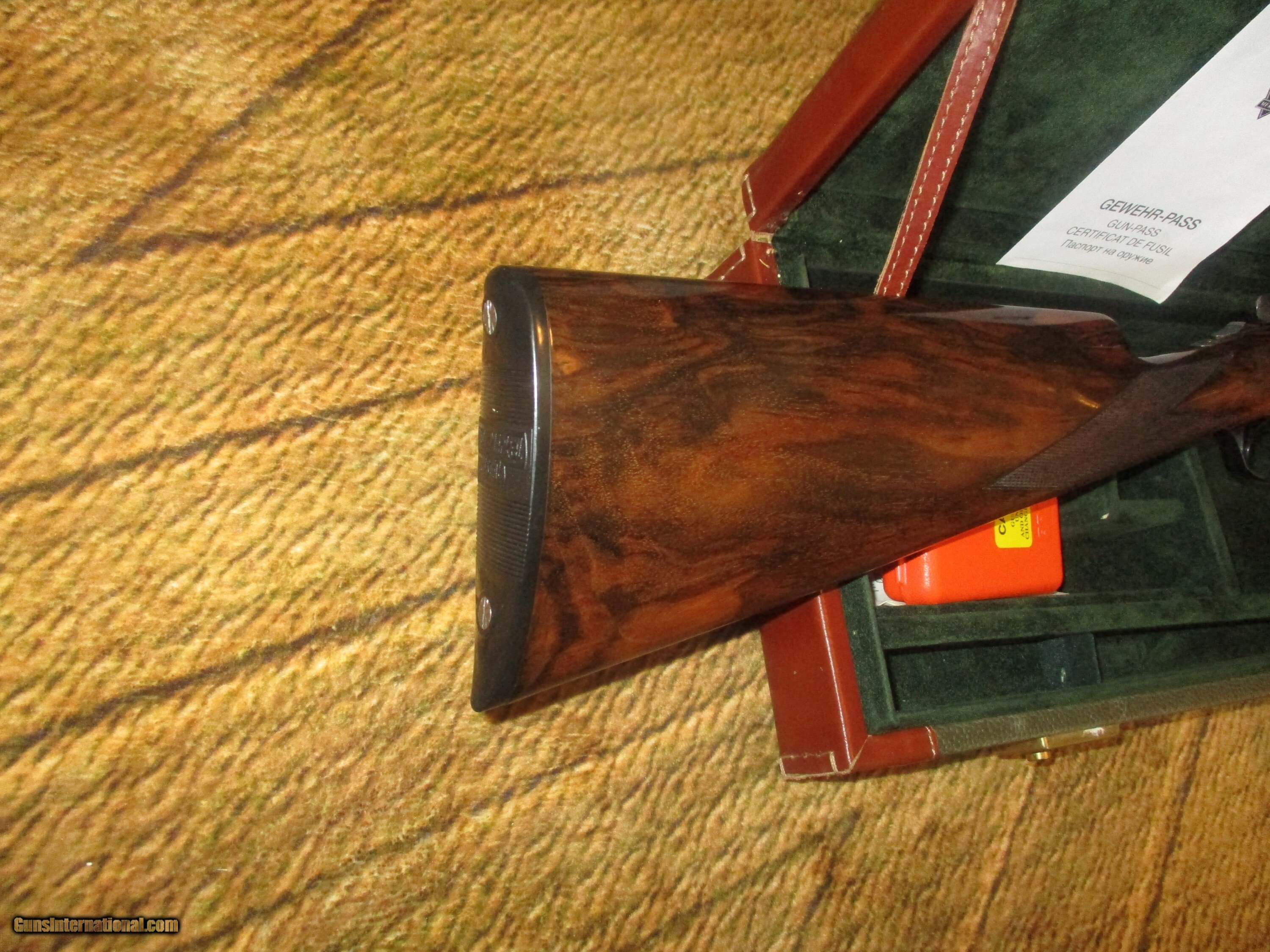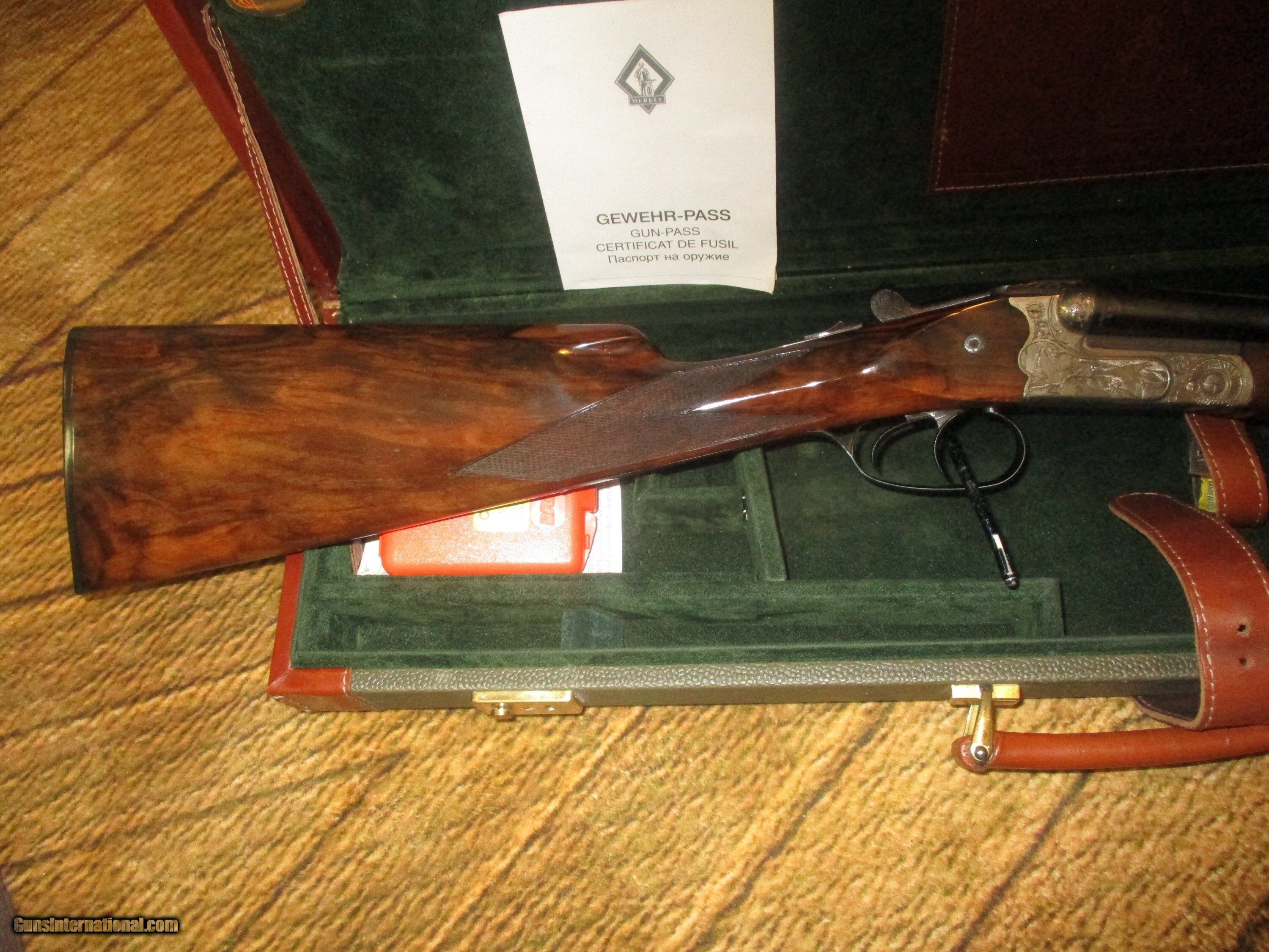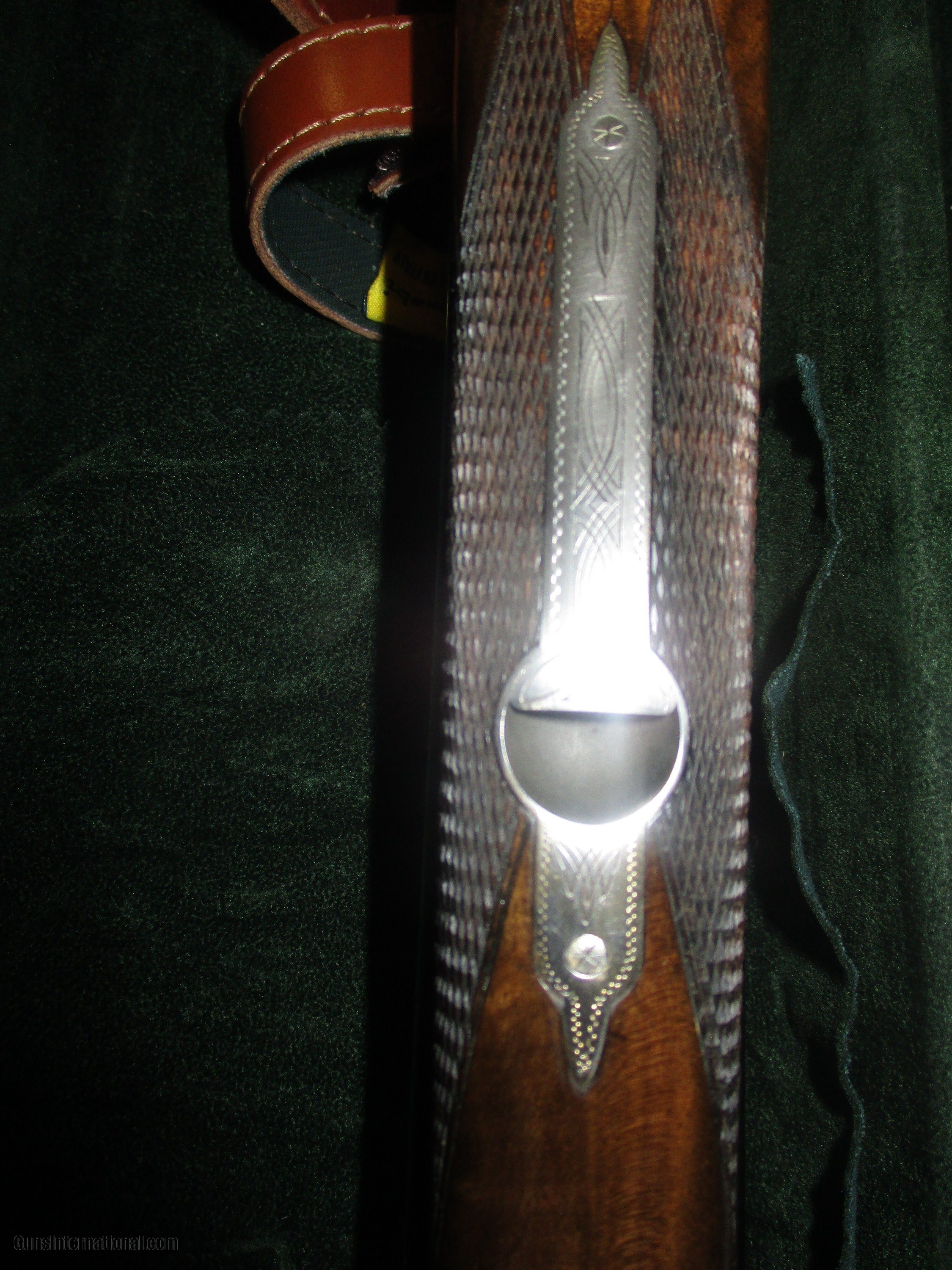 Description: 28" solid rib, Briley thinest wall multi chokes, (5), Double triggers, double underlocking luugs, ejectors, pictured multi gamescenes in floral habitat, straight stock of exotic #3 Circasian walnut 14" LOP, ,manual , provanance & fine fitted Merkel luggage case As new 99% hasn't been out of csae but a few times, 1 or 2 microscopic "knat" pecks, 1 1/2" DAC - 2" DAH, 5 1/2 lbs so: Price: $5,995.00 Contact Seller |