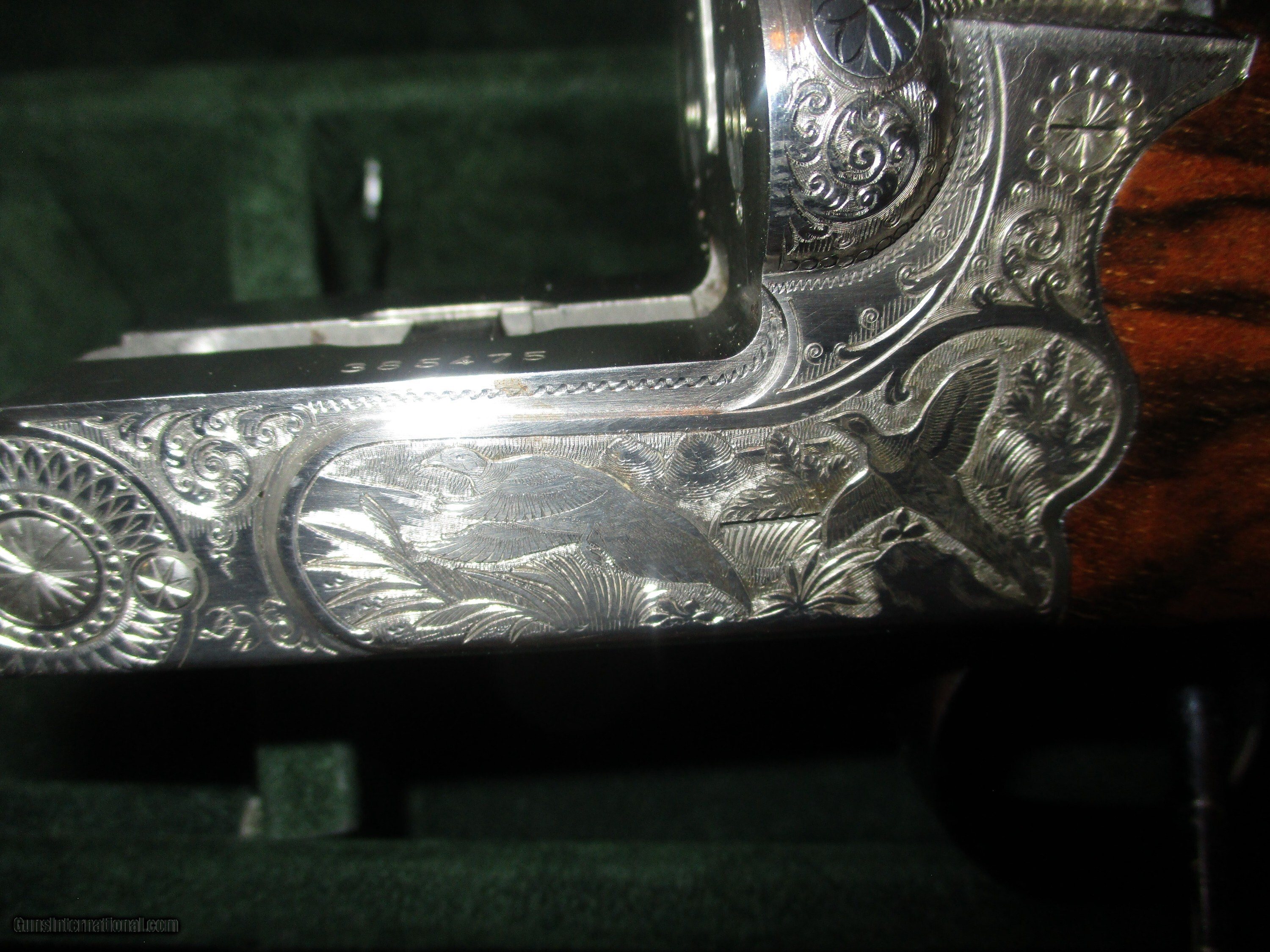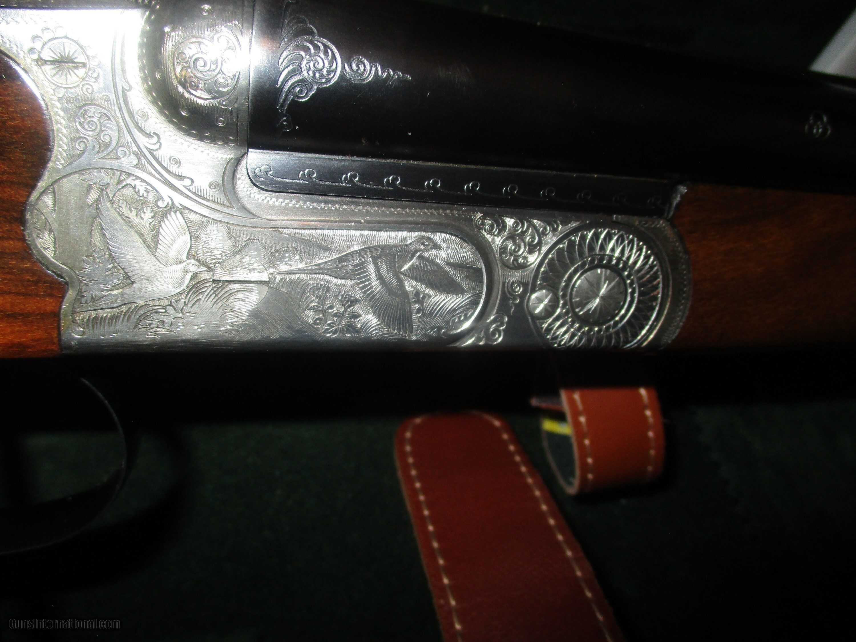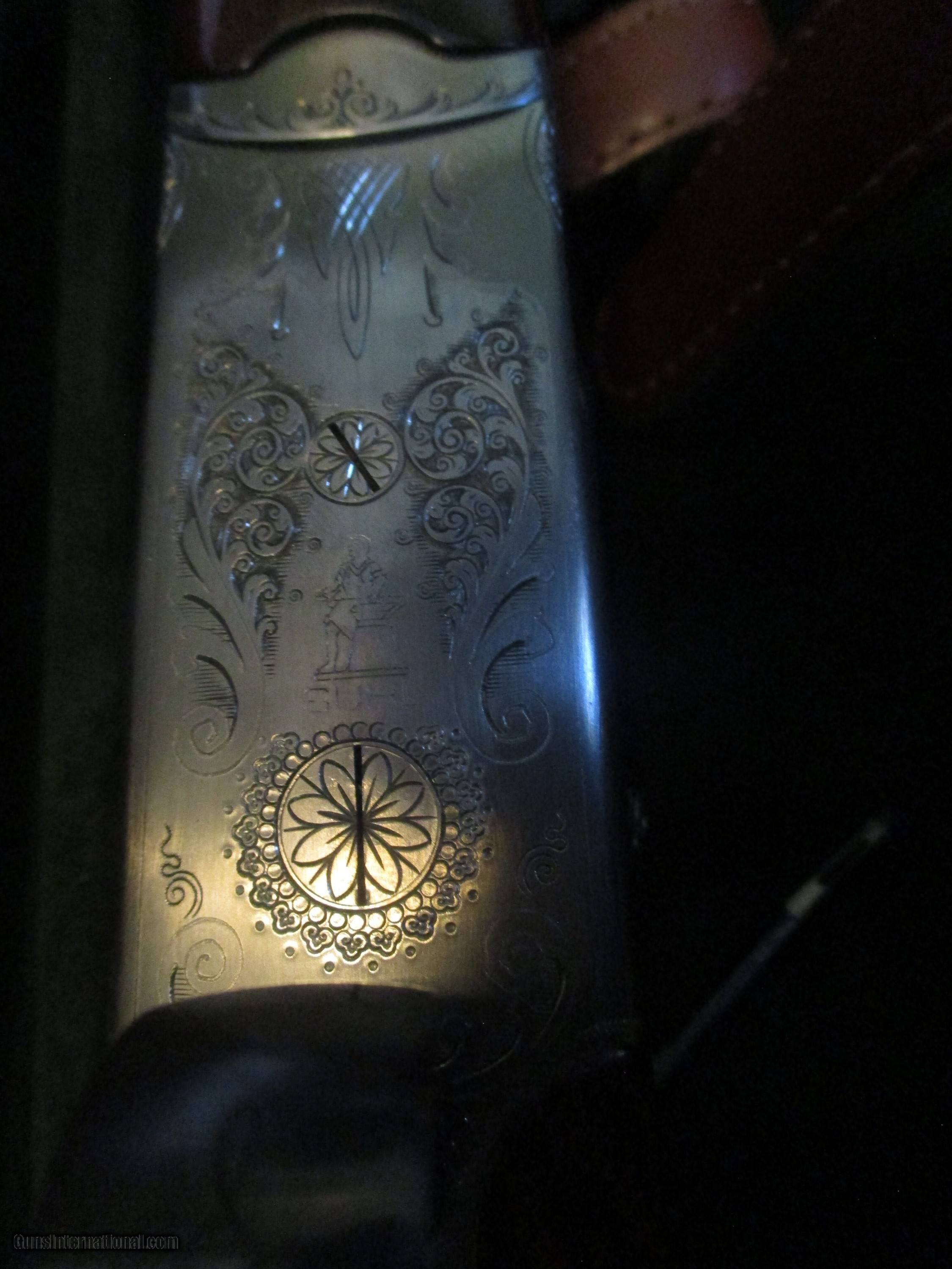 Description: 28" solid rib, Briley thinest wall multi chokes, (5), Double triggers, double underlocking luugs, ejectors, pictured multi gamescenes in floral habitat, straight stock of exotic #3 Circasian walnut 14" LOP, ,manual , provanance & fine fitted Merkel luggage case As new 99% hasn't been out of csae but a few times, 1 or 2 microscopic "knat" pecks, 1 1/2" DAC - 2" DAH, 5 1/2 lbs so: Price: $5,995.00 Contact Seller |