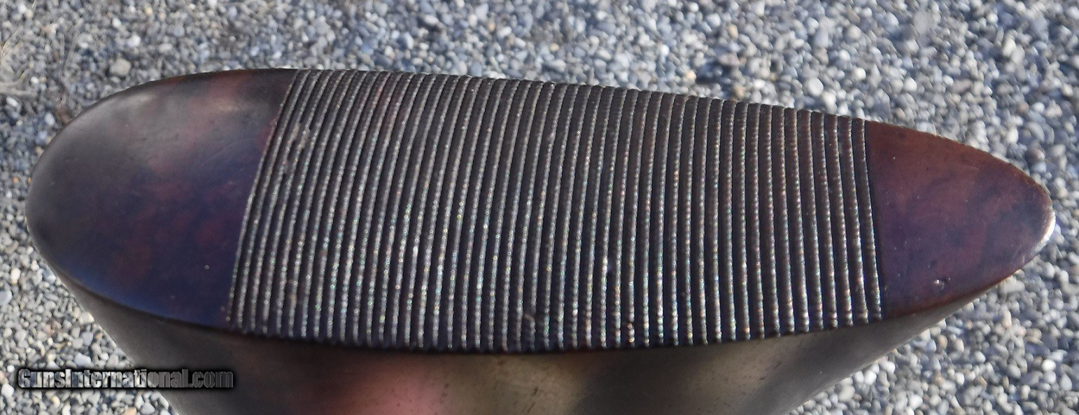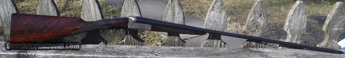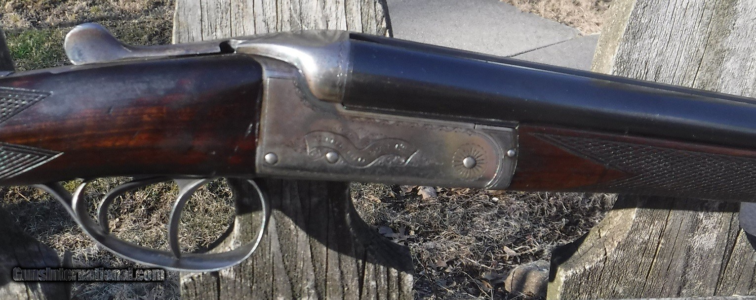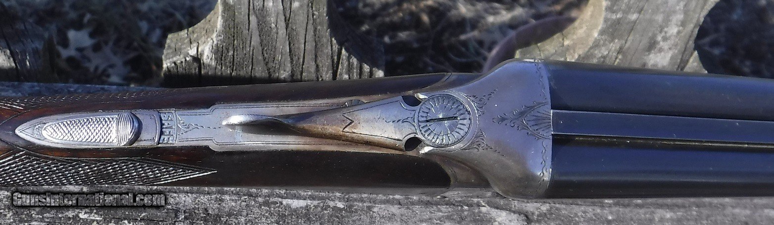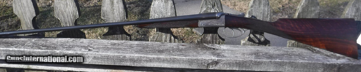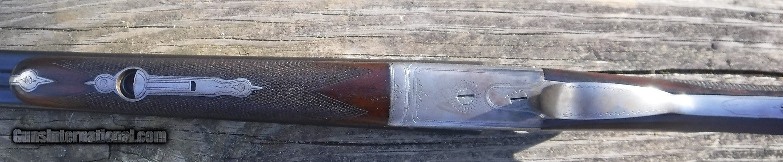 Description: MIDLAND GUN CO. - 410 GAUGE - ENGLISH MADE VERY SMALL FRAME SIDE X SIDE - EJECTOR GUN - 28" BARRELS CHOKED LIGHT MODIFIED ( .008 ) & FULL ( .021 ) - RECEIVER FRAME IS JUST 1 1/4" WIDE - TRACES OF CASE COLRS - GUN WEIGHS 4 lbs 8 ozs. - STRAIGHT HAND STOCK WITH DECENT FIGURE - GROOVED WOOD BUTT - LOP 14 3/16" - DROP COMB 1 5/16" DROP HEEL 2 1/8" - SPLINTER FOREND - WOOD IS IN GOOD CONDITION WITH ENGLISH FLT TOP CHECKERING - DOUBLE TRIGGERS - AUTO SAFTEY - TOP LEVER RIGHT OF CENTER - TRIGGER GAURD BOW SLIGHTLY OUT OF ROUND - SOLD Manufacturer: MIDLAND GUN CO. Model: SIDE XSIDE BOXLOCK |