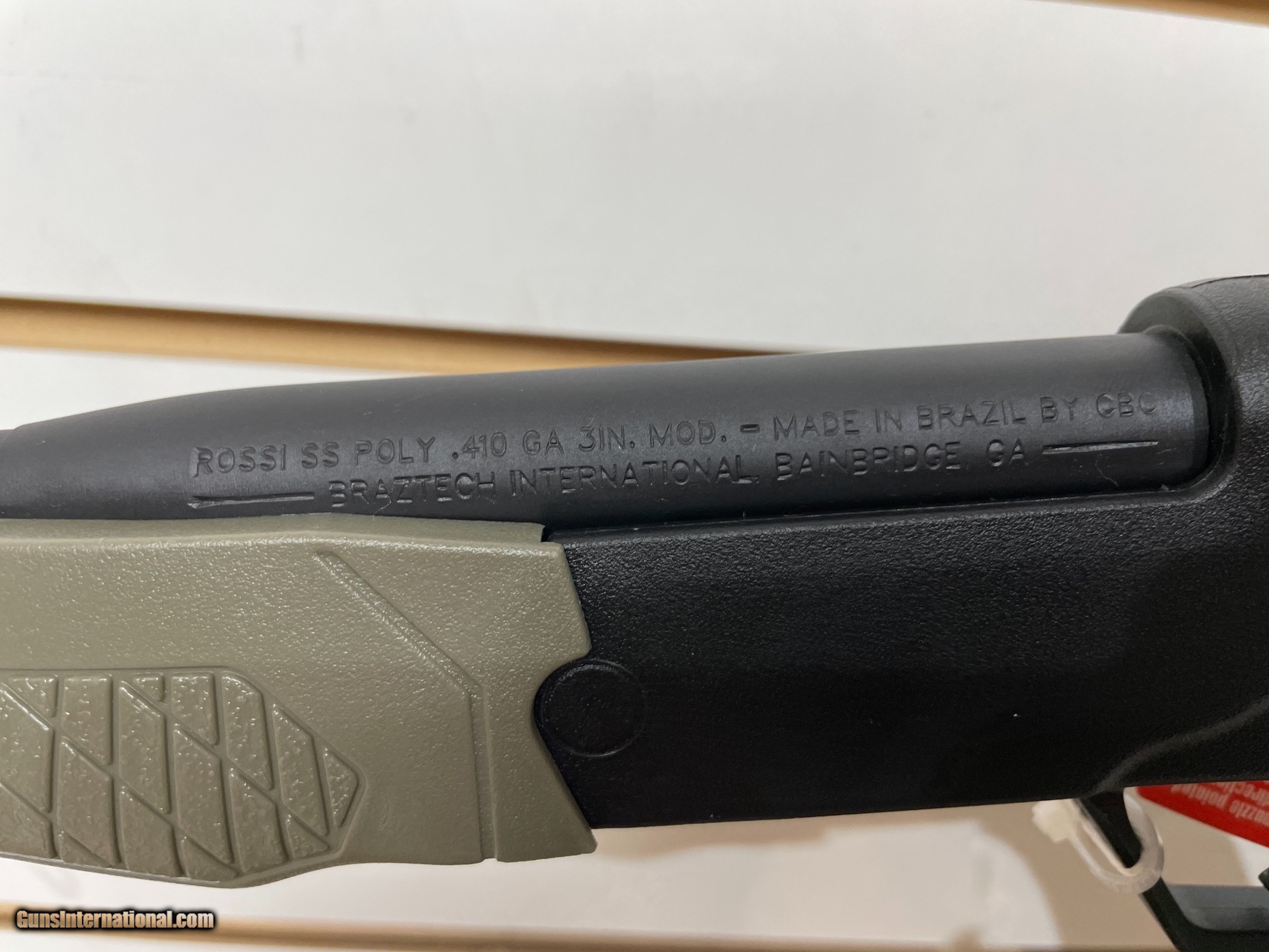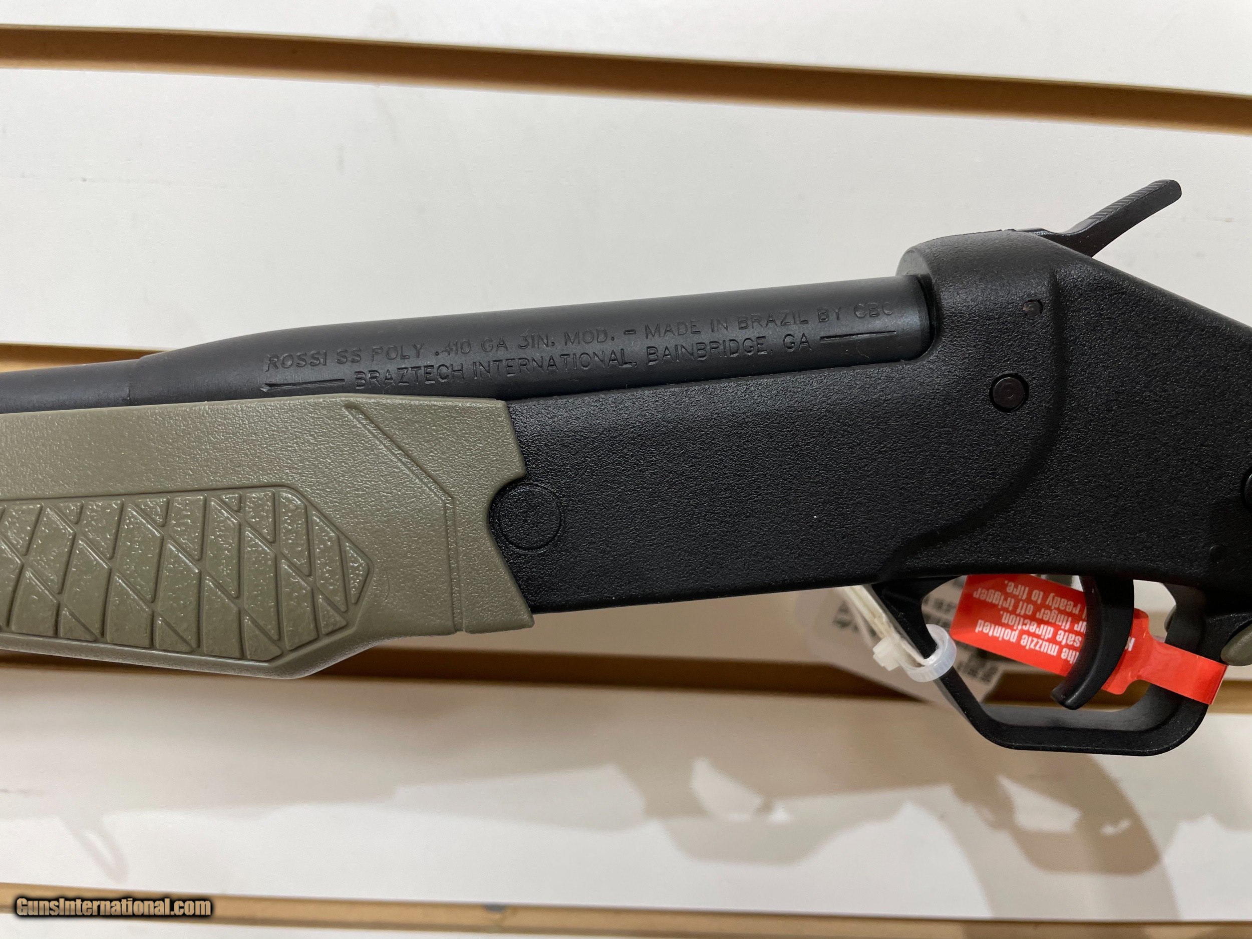 Description: New Rossi Single Shot 410 Gauge 18" barrel manuals trigger lock new in the box Buyer pays shipping Millers Gun Center Located in New Castle, Delaware "Home of TAX-Free shopping" No Credit Card Fees SOLD Serial Number: 7CS088378N |