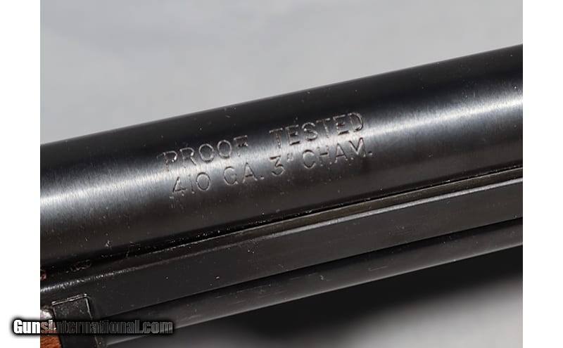 Description: For your consideration we have a Noble, model 70, .410 gauge shotgun chambered for 3" shells. Gun is in good condition with signs of wear. For more information or to purchase this firearm, please contact the Wichita, Kansas Gun Library at (316) 854-0748. .410 Bore SOLD Chambers: 3" Chamber Metal Condition: "Fair to good condition, has some signs of wear Wood Condition: Good condition with a few scratches Bore Condition: "Good condition, clean and smooth Barrels: 26" round barrel Stock Dimensions: 45" Length OAD Butt Pad: Recoil Pad Weight: 4 lb 5 oz Sights: Bead sight at end of barrel Item Location: Wichita, KS |