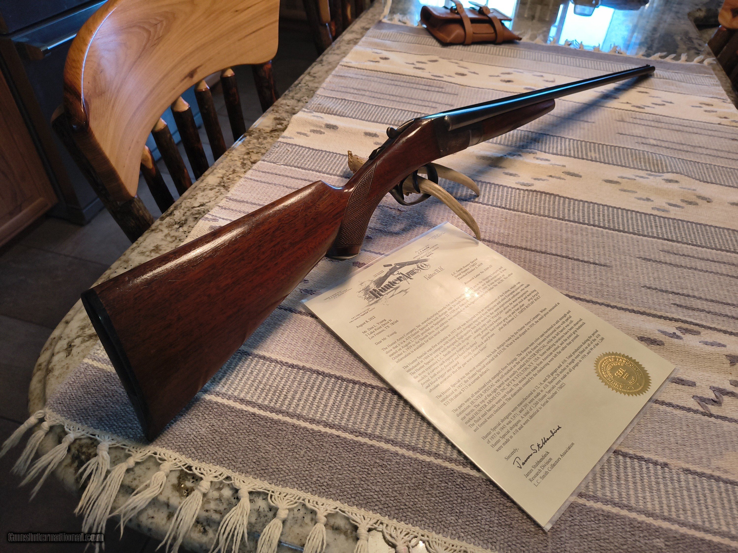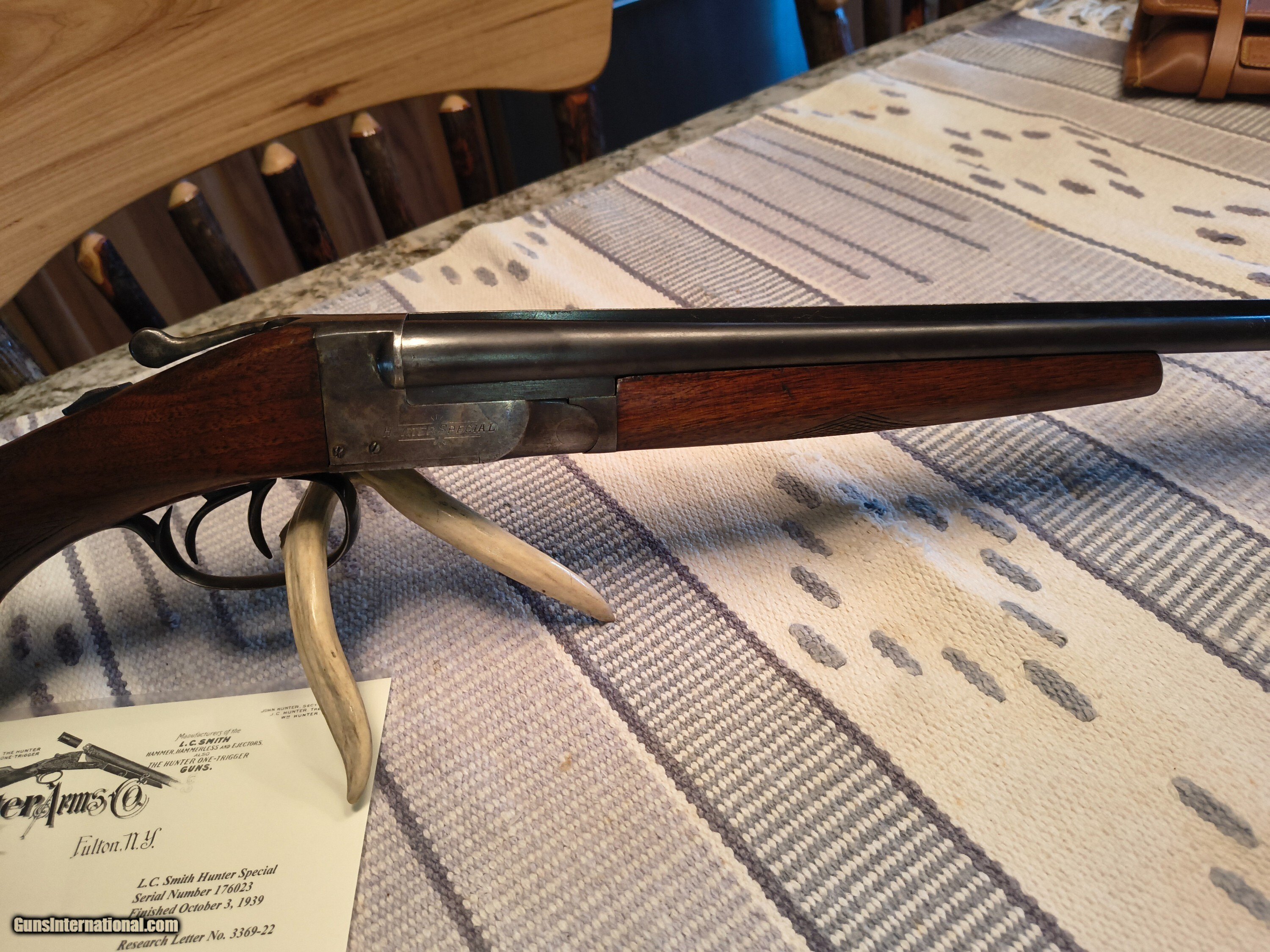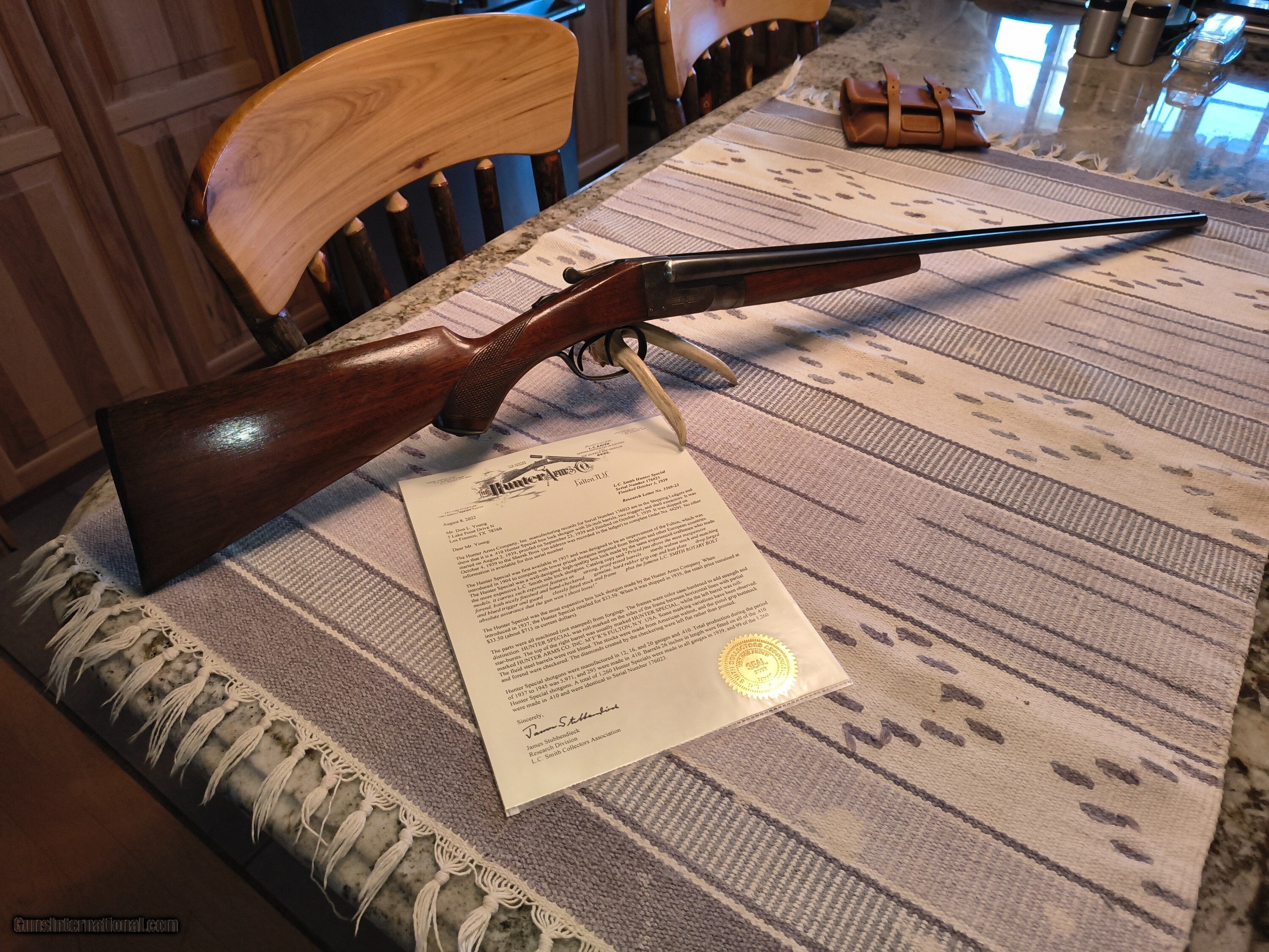 Description: A very nice example of a quite rare Hunter Arms Co model Hunter Special 26" 410 ga in original condition and provided with a copy of the L C Smith research letter confirming this is 1 of 99 built in 1939. Call with questions thanks. Curio/Relic: Yes Shotgun Gauge: .410 Gauge Manufacturer: Hunter Arms/ LC Smith Model: Hunter Special Serial Number: 1760xx Barrel Length: 26 Chambers: Factory 3 Ejectors: No Condition: Original Metal Condition: Original Wood Condition: Original Bore Condition: Excellent Triggers: Double Stock Dimensions: Original Manufacture Date: 10/3/1939 Chokes: Full & Full Price: $4,650.00 Buy Now Contact Seller |