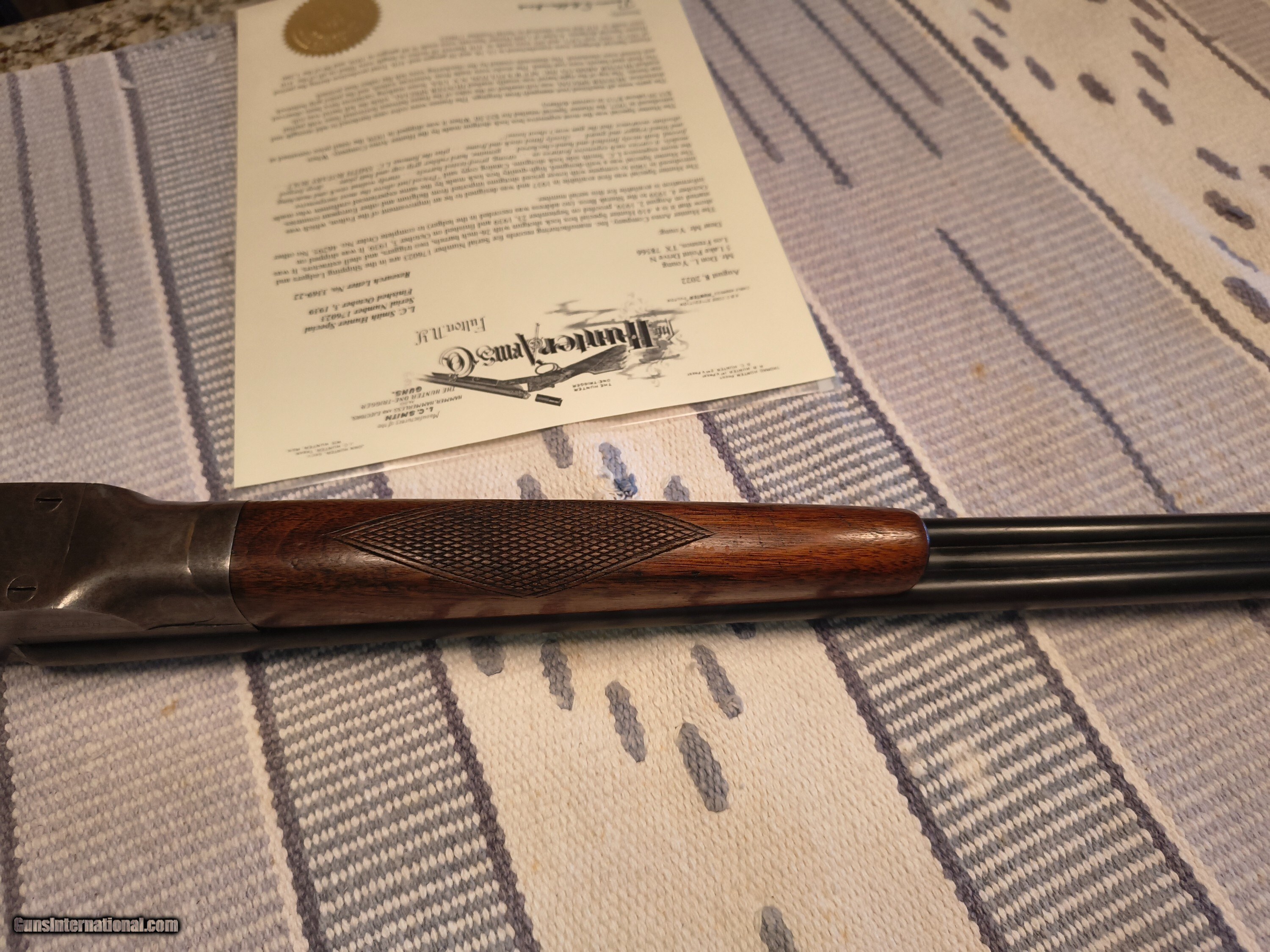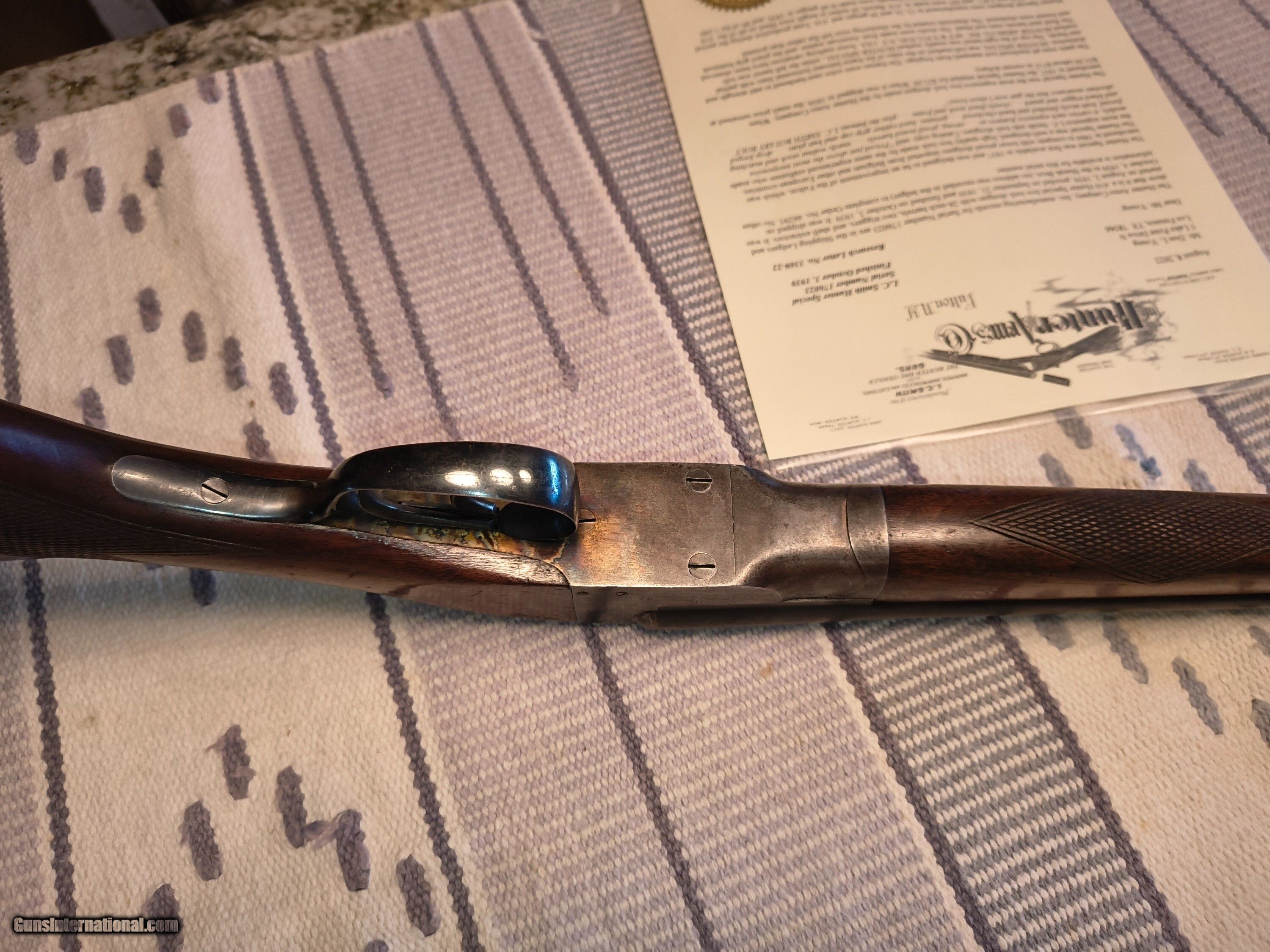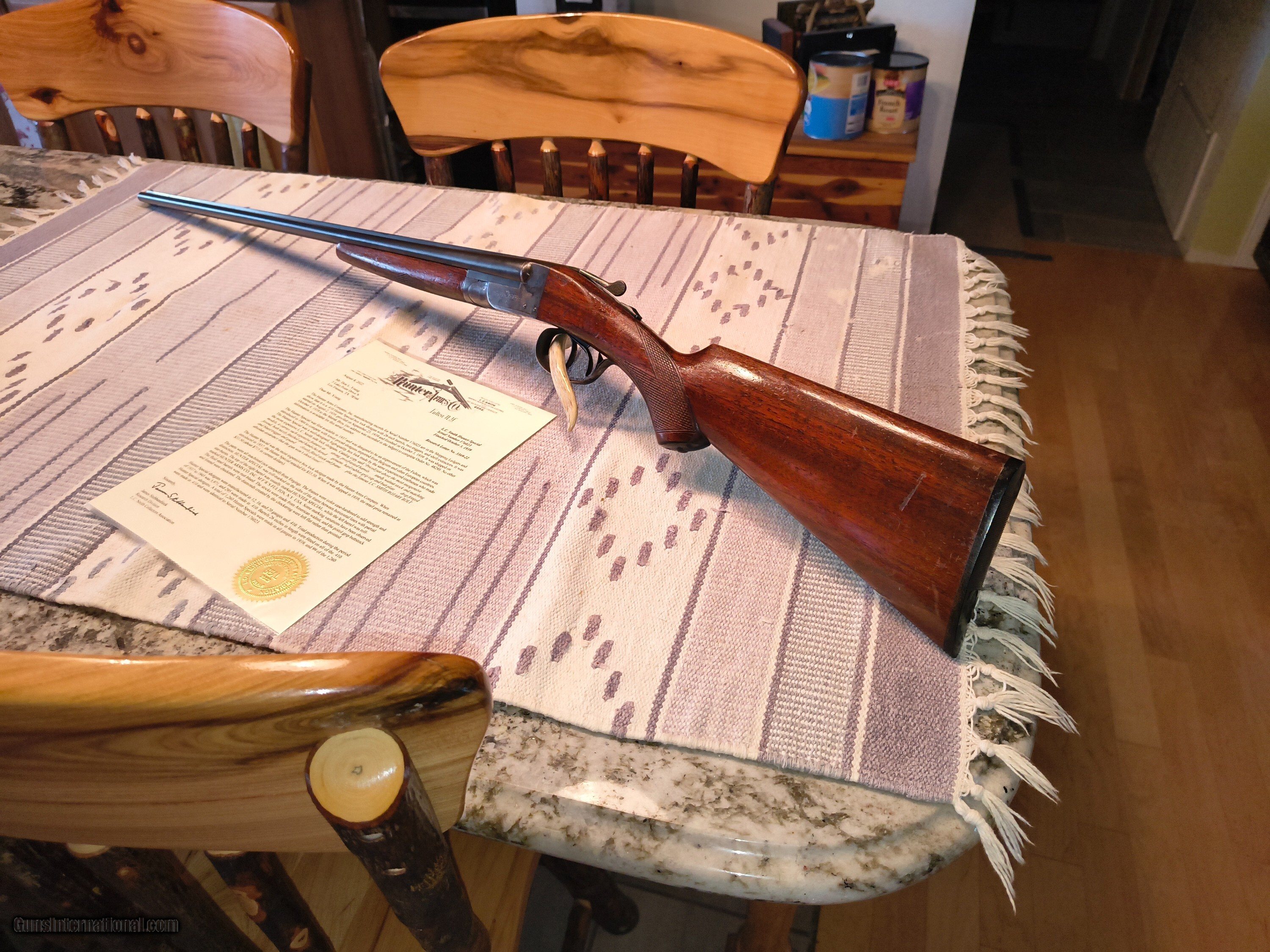 Description: A very nice example of a quite rare Hunter Arms Co model Hunter Special 26" 410 ga in original condition and provided with a copy of the L C Smith research letter confirming this is 1 of 99 built in 1939. Call with questions thanks. Curio/Relic: Yes Shotgun Gauge: .410 Gauge Manufacturer: Hunter Arms/ LC Smith Model: Hunter Special Serial Number: 1760xx Barrel Length: 26 Chambers: Factory 3 Ejectors: No Condition: Original Metal Condition: Original Wood Condition: Original Bore Condition: Excellent Triggers: Double Stock Dimensions: Original Manufacture Date: 10/3/1939 Chokes: Full & Full Price: $4,650.00 Buy Now Contact Seller |