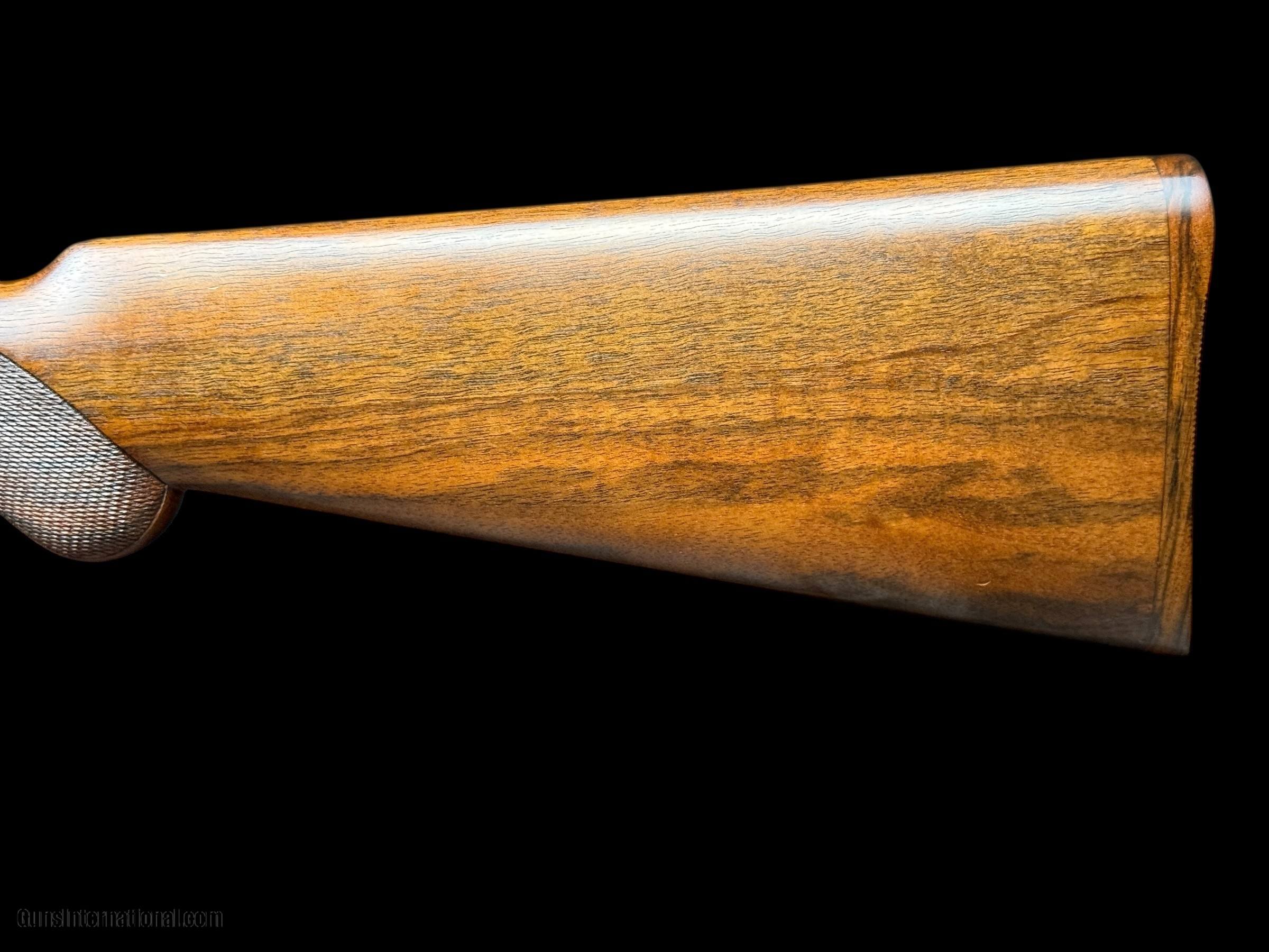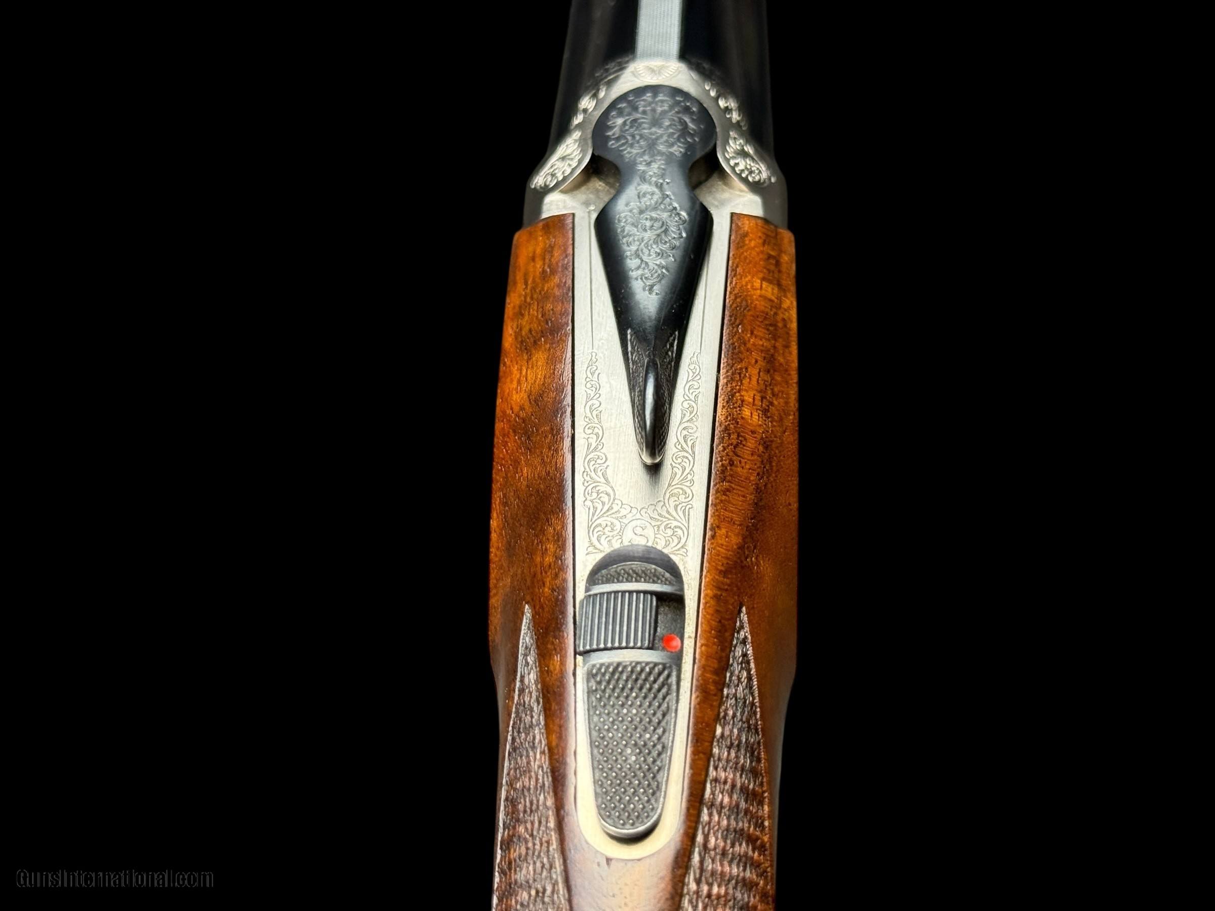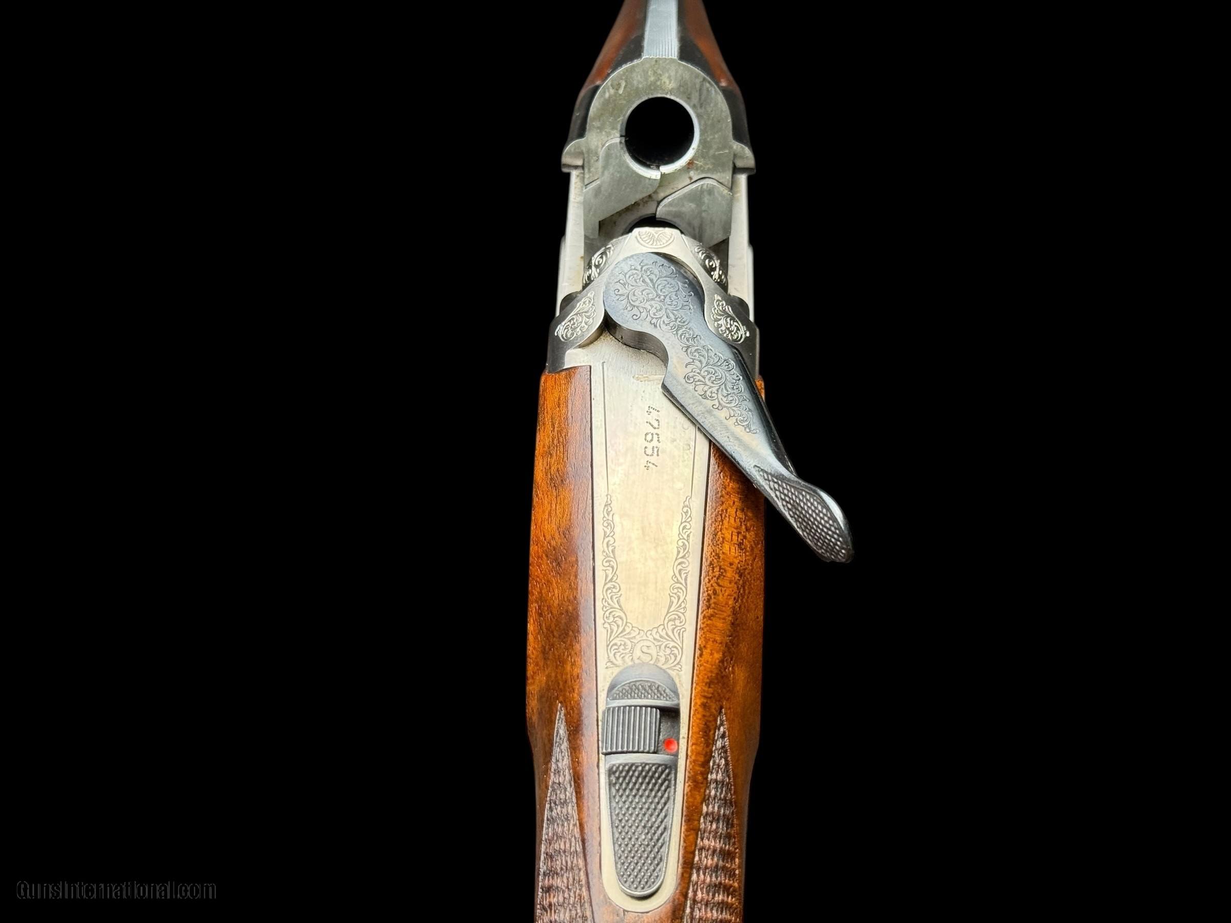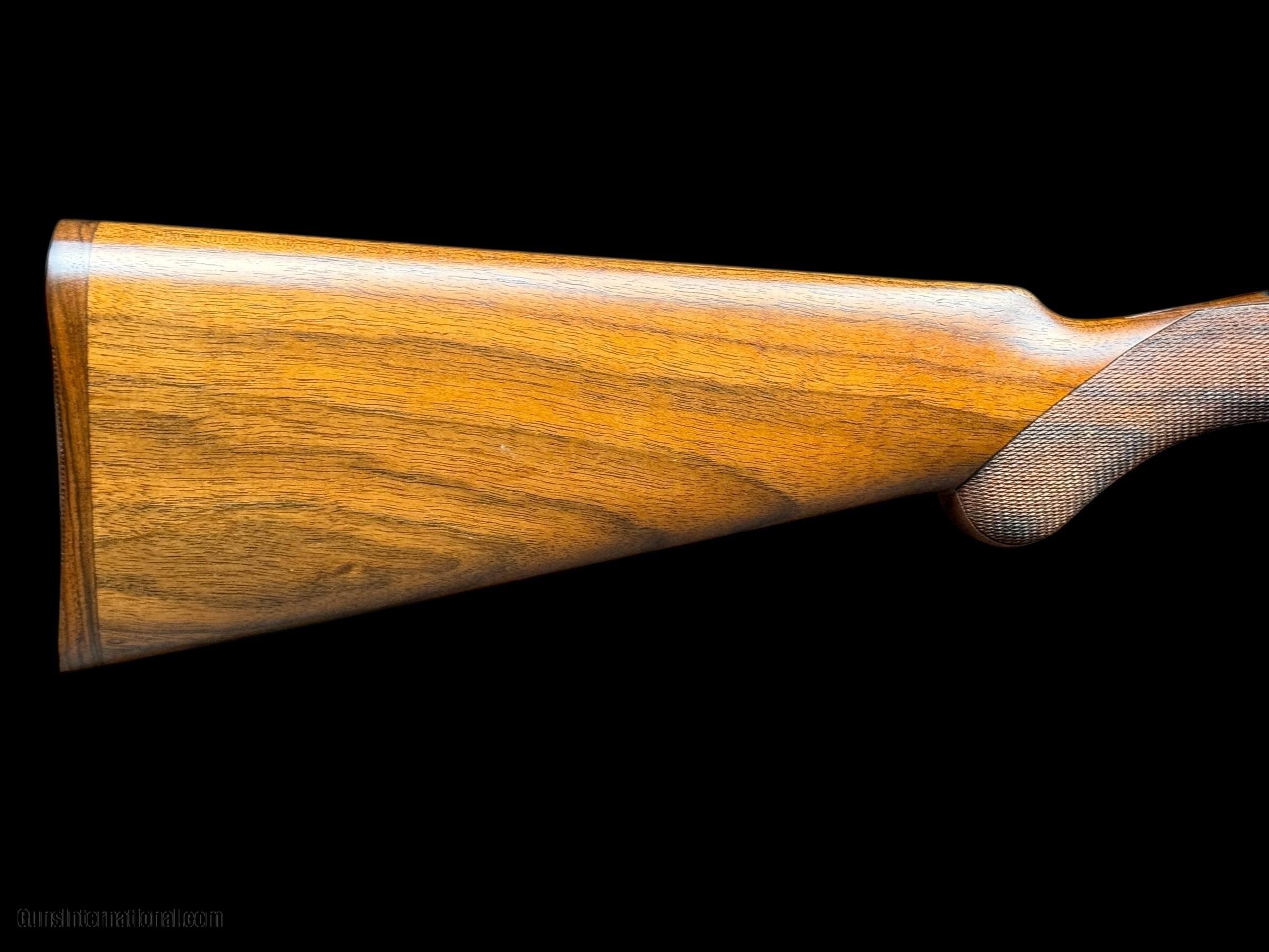 Description: B. RIZZINI - ITALY - MODEL: AURUM LIGHT O/U GAME GUN - COIN FINISHED SCROLL AND GOLD GAME SCENE ENGRAVED - 410 - 3" CHAMBERS - 26.5" VENT RIB BARRELS - CHOKES: IC/MOD - EJECTORS - SINGLE SELECTIVE GOLD TRIGGER - NICELY FIGURED STRAIGHT GRAIN WALNUT SEMI-PISTIL GRIP STOCK W/ POINT PATTERN CHECKERING - WALNUT BUTTPLATE - DIMS: LOP: 14 5/8" | DAC: 1 1/2" | DAH: 2 1/4" - WEIGHT: 4LBS 13OZ CONDITION: GUN IS IN EXCELLENT, LIKE NEW CONDITION SHOWING LITTLE SIGNS OF USE - GENTLEMEN, THIS IS A BEAUTIFUL LIGHTWEIGHT GAME GUN. YOU WILL KIKE THIS GUN! PLEASE CALL NOW! FFL REQUIRED - FLAT $50 S/H/I CARD FEE APPLIES Shotgun Gauge: .410 Gauge Manufacturer: RIZZINI Model: AURUM LIGHT Serial Number: 47654 Barrel Length: 26.5 Chambers: 3" - 76MM Ejectors: YES Condition: MINT Metal Condition: MINT Wood Condition: MINT Bore Condition: MINT Action: BOXLOCK EJECTOR Triggers: SINGLE SELECTIVE Price: $2,950.00 Contact Seller |