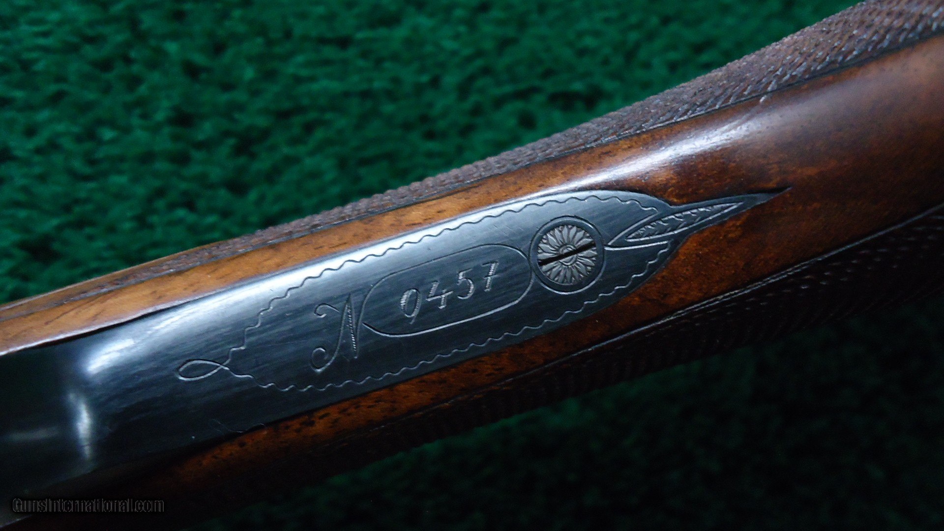 Description: Date code is 1928 making it a pre-war German made 410. A really fine little gun. It has a single trigger. 26 inch barrels. Stock length is 13-1/4 inches to the end of the wood. LOP is 13-3/4. 3-piece forearm. Excellent bores. Ejectors. Overall gun has about 95% barrel blue. Wood is finely checkered with a pistol grip stock and a light coat of linseed oil added. Not sanded or undersized. The game scene receiver is elaborately done with a coin type finish. Scarce early gun. Leroy Merz Antique Firearms specializes in antique and vintage Winchesters and other fine American firearms. Since 1965 Mr. Merz has taken part in the world of firearms and has been a contributor to many well known reference books. We have hundreds of additional guns in every price range at our home online. Search for Merz Antiques in google. SOLD Curio/Relic: Yes |