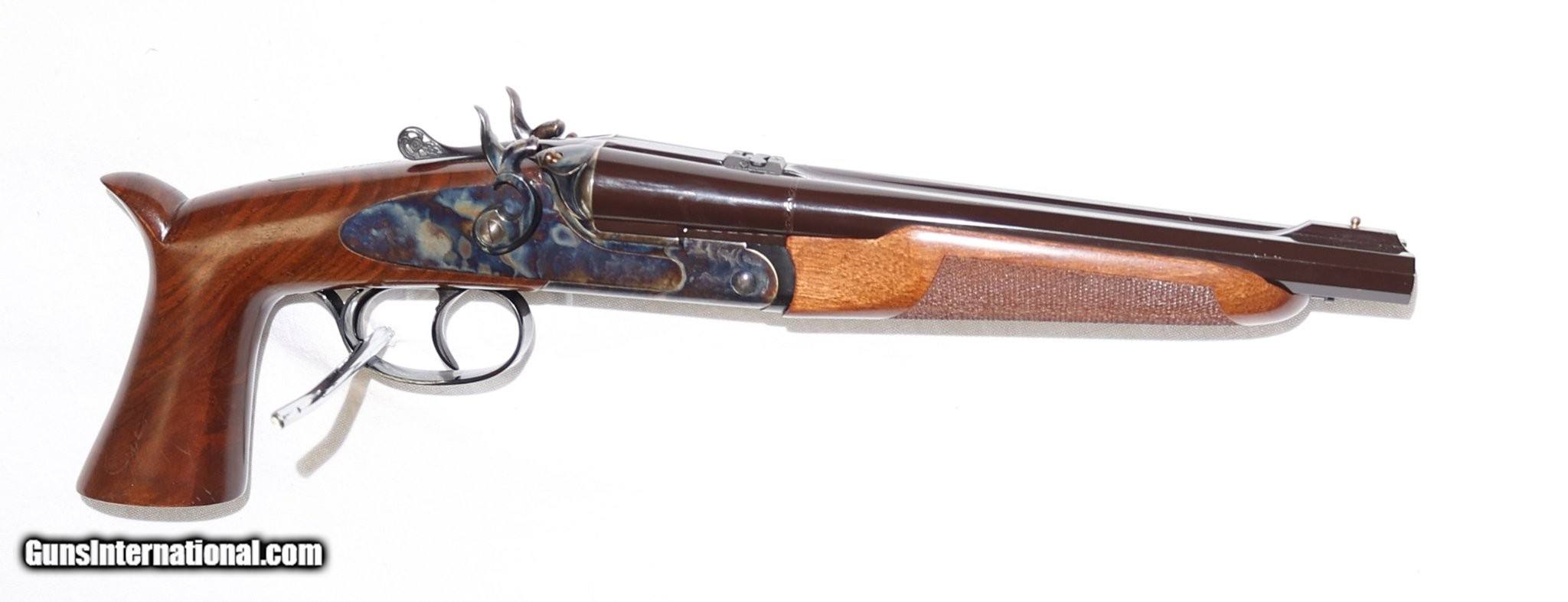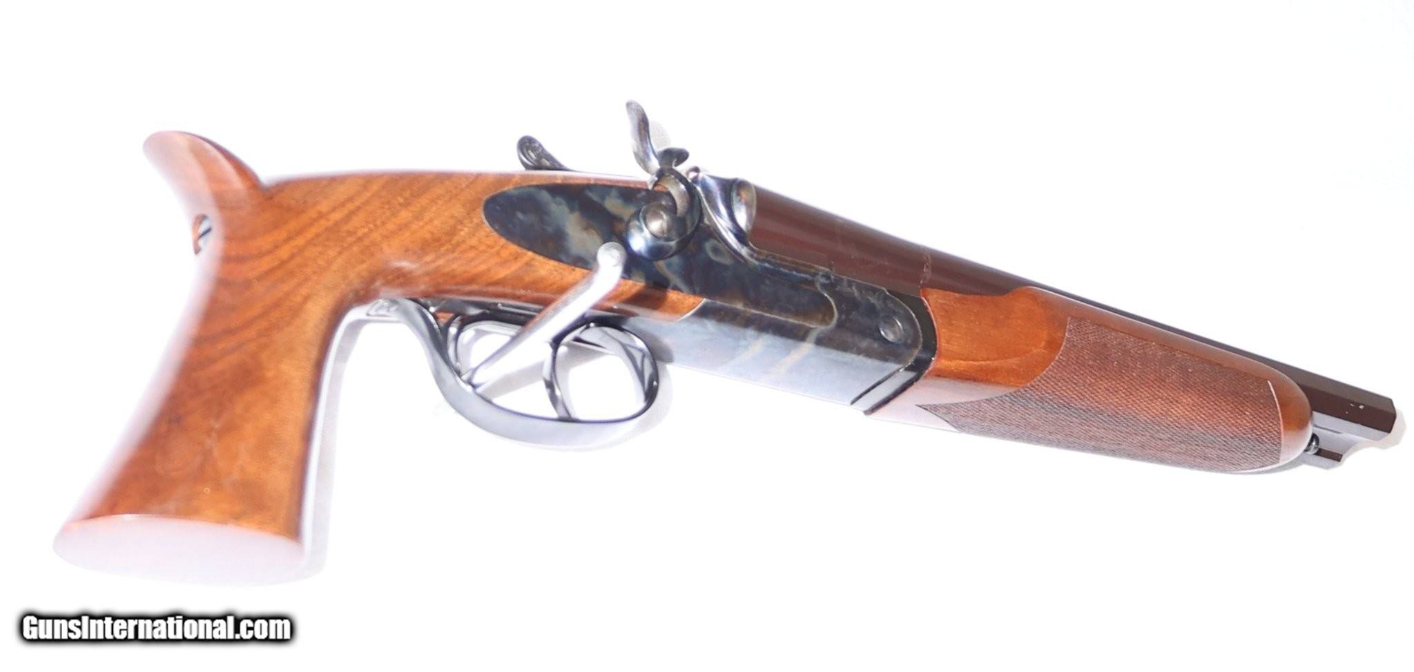 Description: Guns Listing ID: 594377 New item – old inventory. This item is brand new & unfired. It has been in our inventory for quite some time. It has been on display and may have scuffs or scratches from being handled and moved in and out of display cases. Manufacturer: TAYLOR‚S & CO. Model: HOWDAH Caliber Info: .45 LC/.410 GA Condition: Used - Non-Certified Barrels: 10.25" BARREL Action: SIDE BY SIDE Finish: WALNUT/BLUED Weight: 7.2 lbs. Price: $2,369.99 Contact Seller |