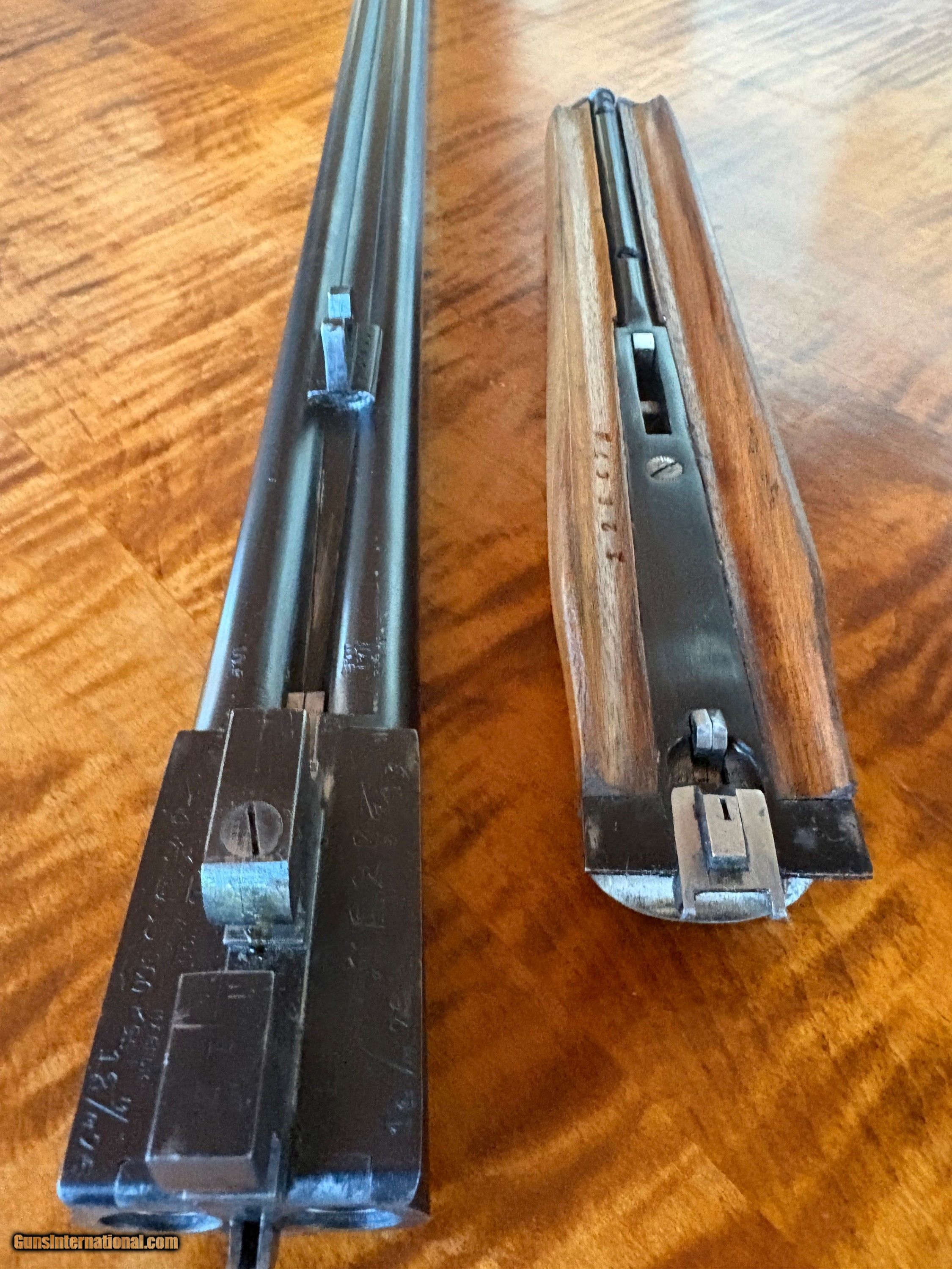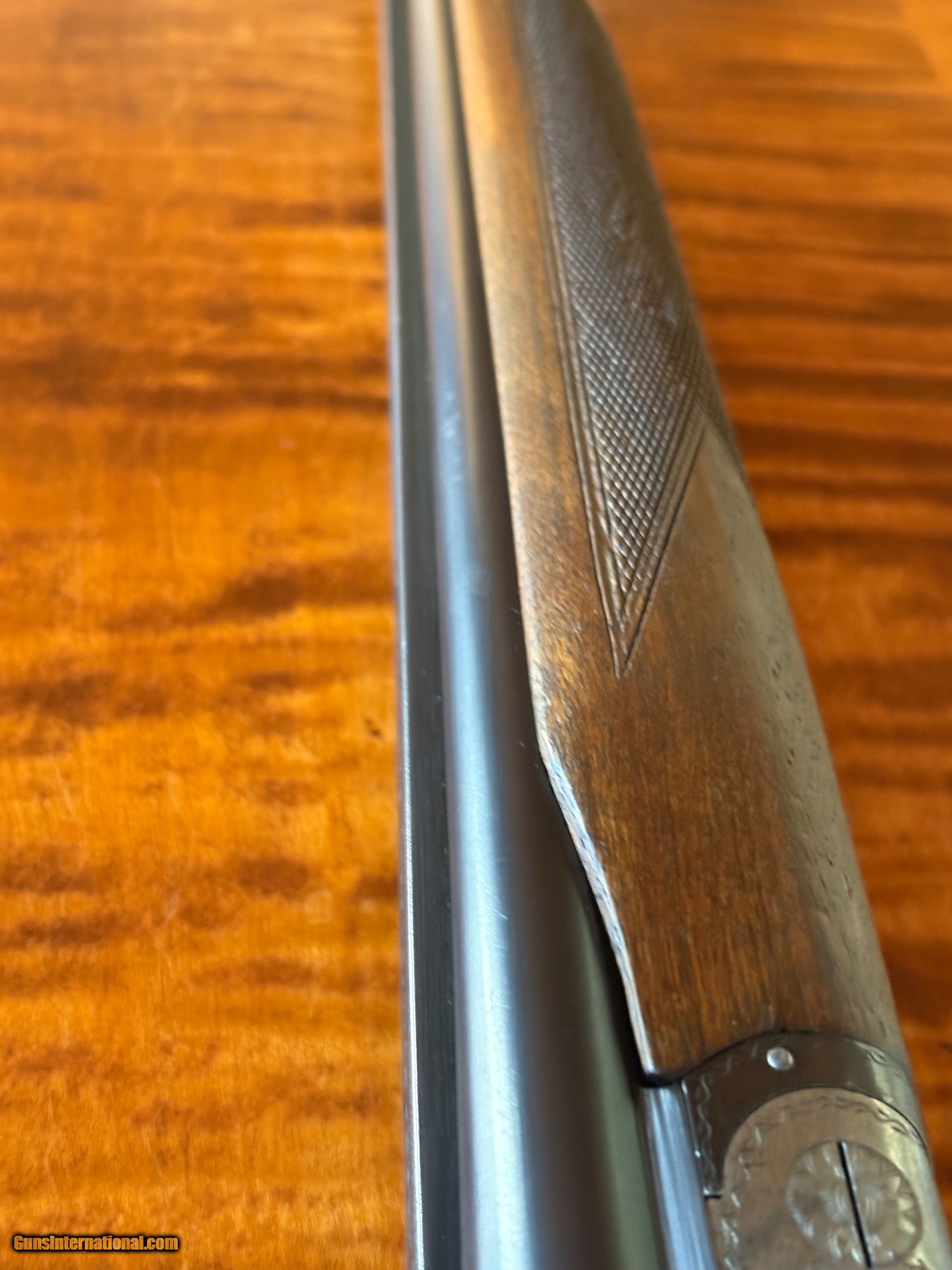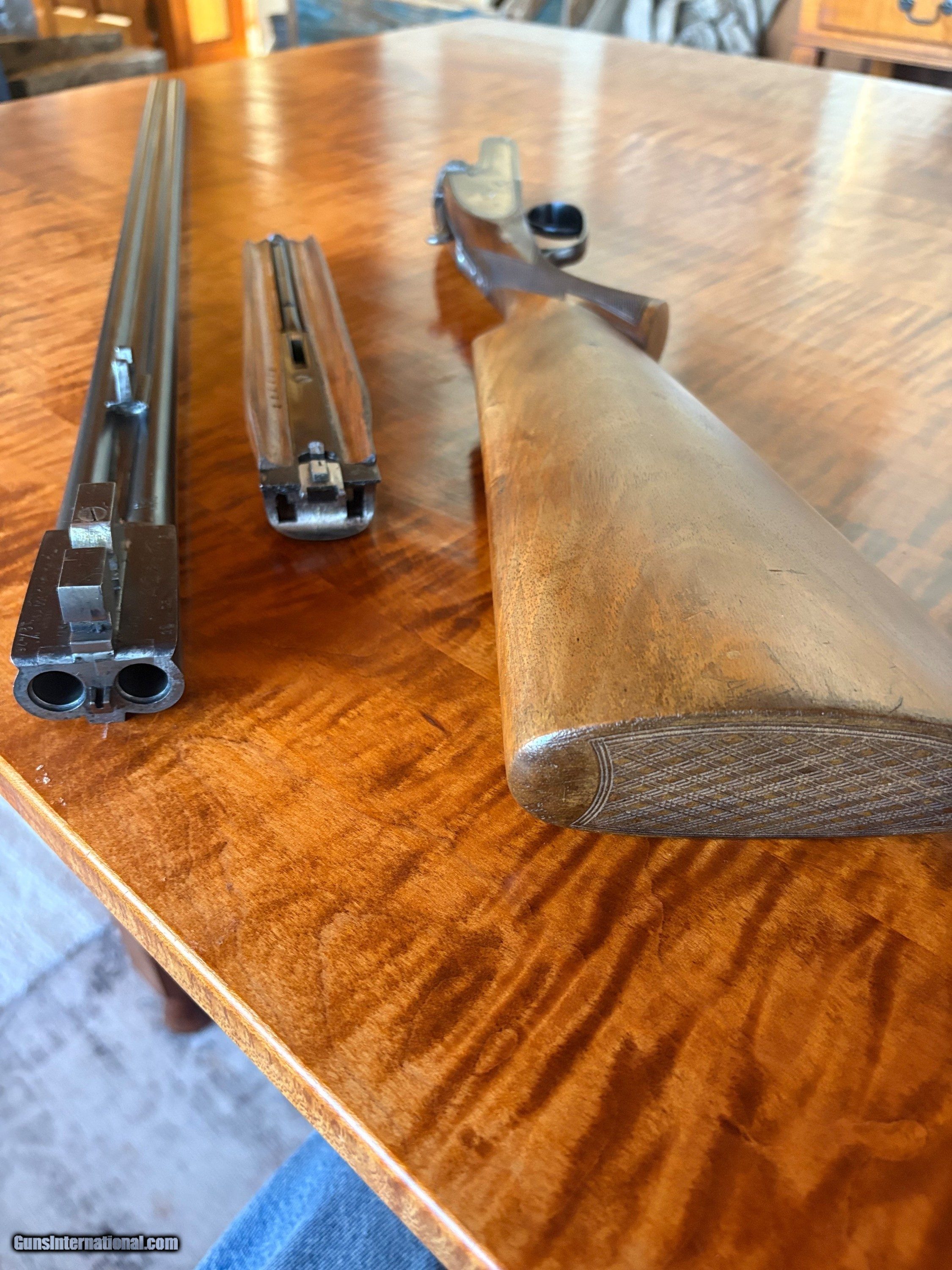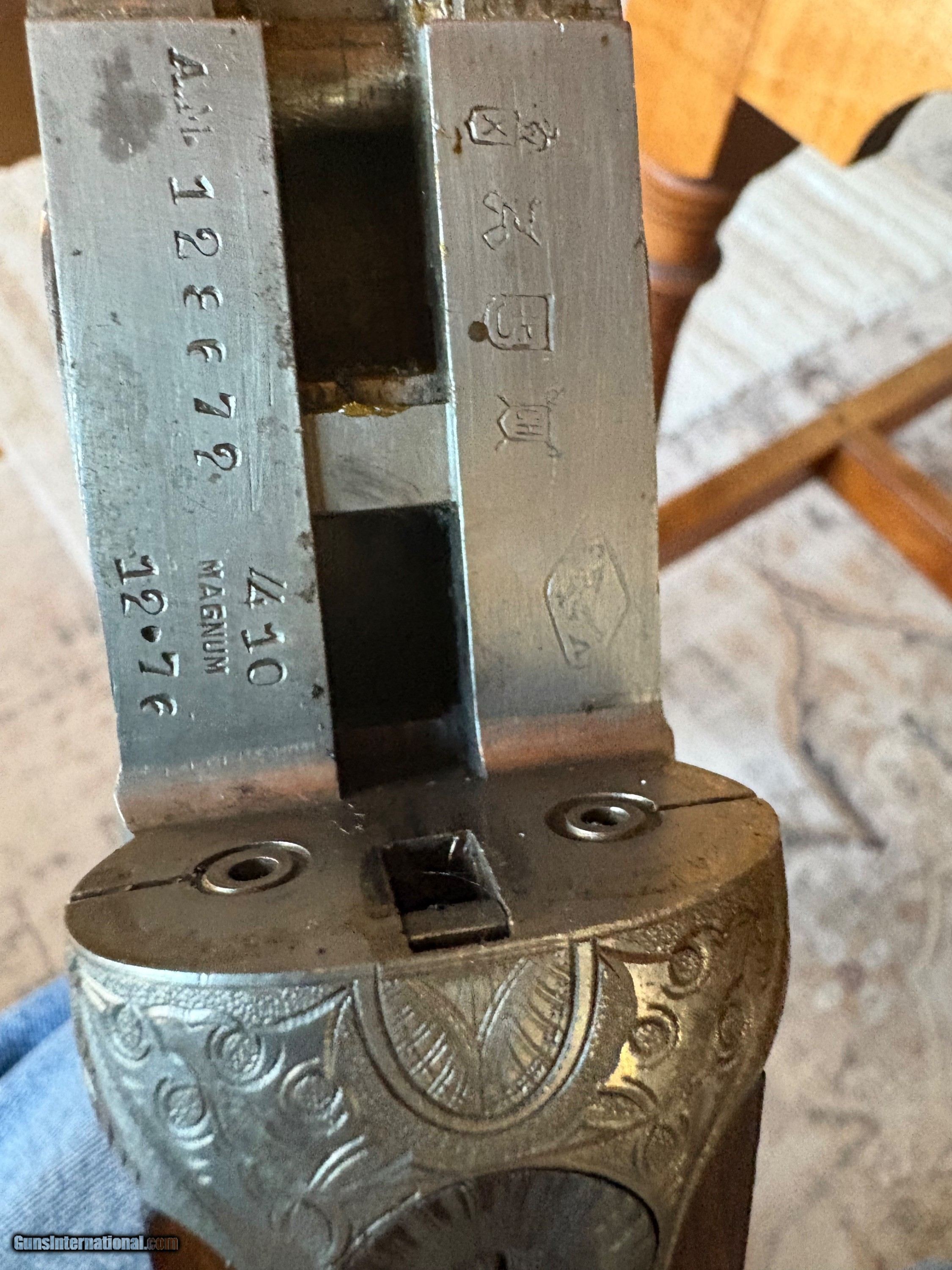 Description: For your consideration I have listed a VERY NICE vintage Stoeger...Victor Saraquata...SCALED FRAME 410 ga side lock.This SXS features bushed firing pins...timed ejectors... cocking dials... 27 1/2 inch barrels with ivory bead that ring like a bell ... choked imp. and full...Lockup is duel underbites with hidden 3rd fastener... tight on face... 5 1/2 lbs... auto safe...Reciever greyed with speckling...pics tell all...A very nice hard to find Zephyr Uplander sub gauge made by Victor Sarasquata for Stoeger...$ 75 shipping my FFL to your FFL Any questions feel free. Manufacturer: Victor Sarasqata Model: Zephyr Uplander Barrel Length: 27 1/2 Bore Info: Perfect Chambers: 3 “ Ejectors: Timed Condition: Excellent Metal Condition: Excellent Wood Condition: 95% Bore Condition: Perfect Barrels: 27 1/2 … 1 small blemish on right barrel near sight Barrel Type: SXS Action: Sidelock Triggers: Double Stock: Walnut Stock Drop: 2 1/8 Stock Comb: 1 1/8 Stock Cast: Right hand Fore End: Semi Beavertail Butt Pad: Checkered LOP: 14 1/2 Rib: Solid Finish: Oil Weight: 5 1/2 Sights: Ivory bead Manufacture Date: Late 50’s early 60’s Chokes: Factory Choke Left: Full Choke Right: IC Engraving: Light Item Location: RI Proof:Nitro: Yes Grips: Pistol Price: $2,275.00 Contact Seller |