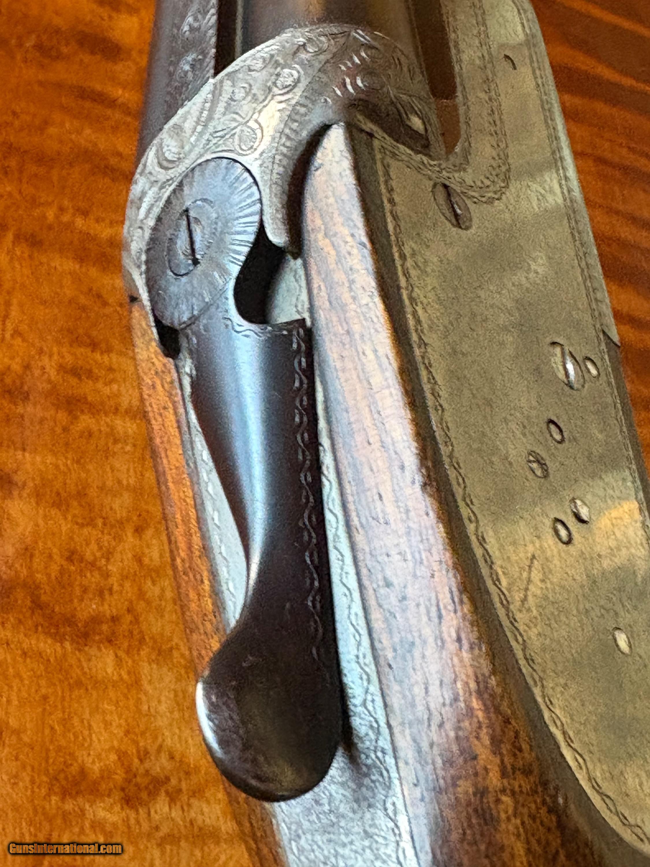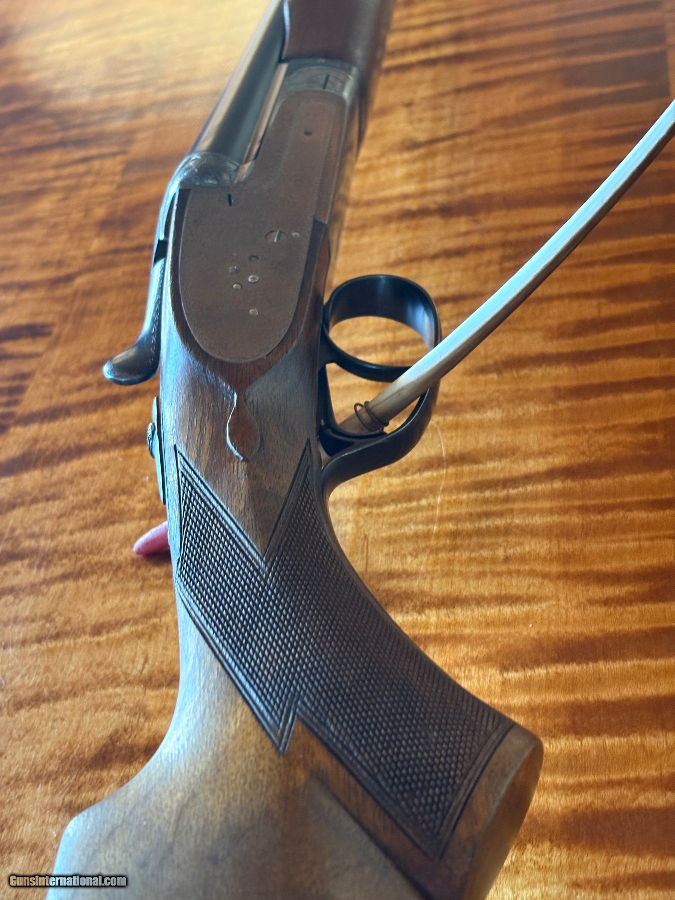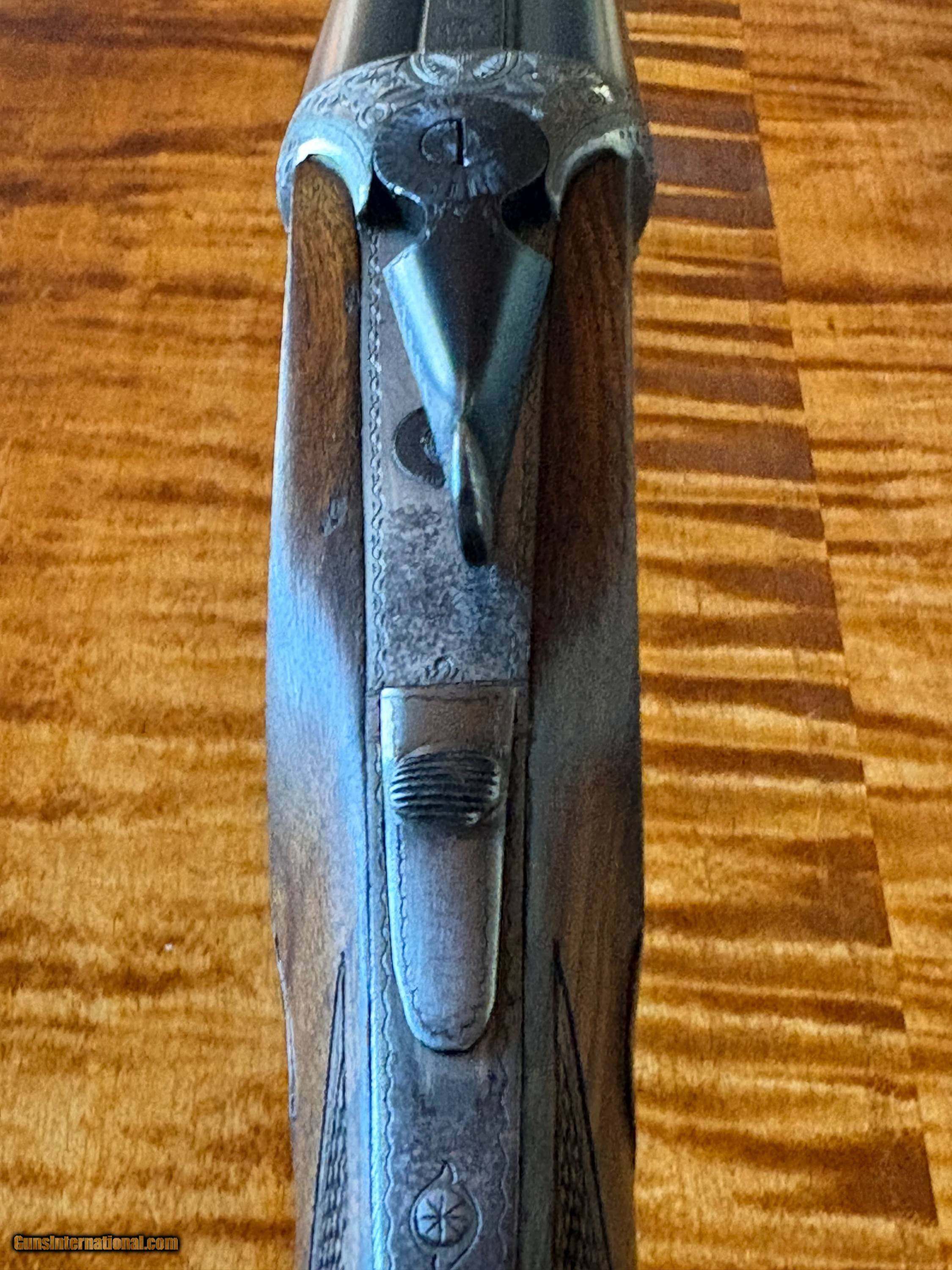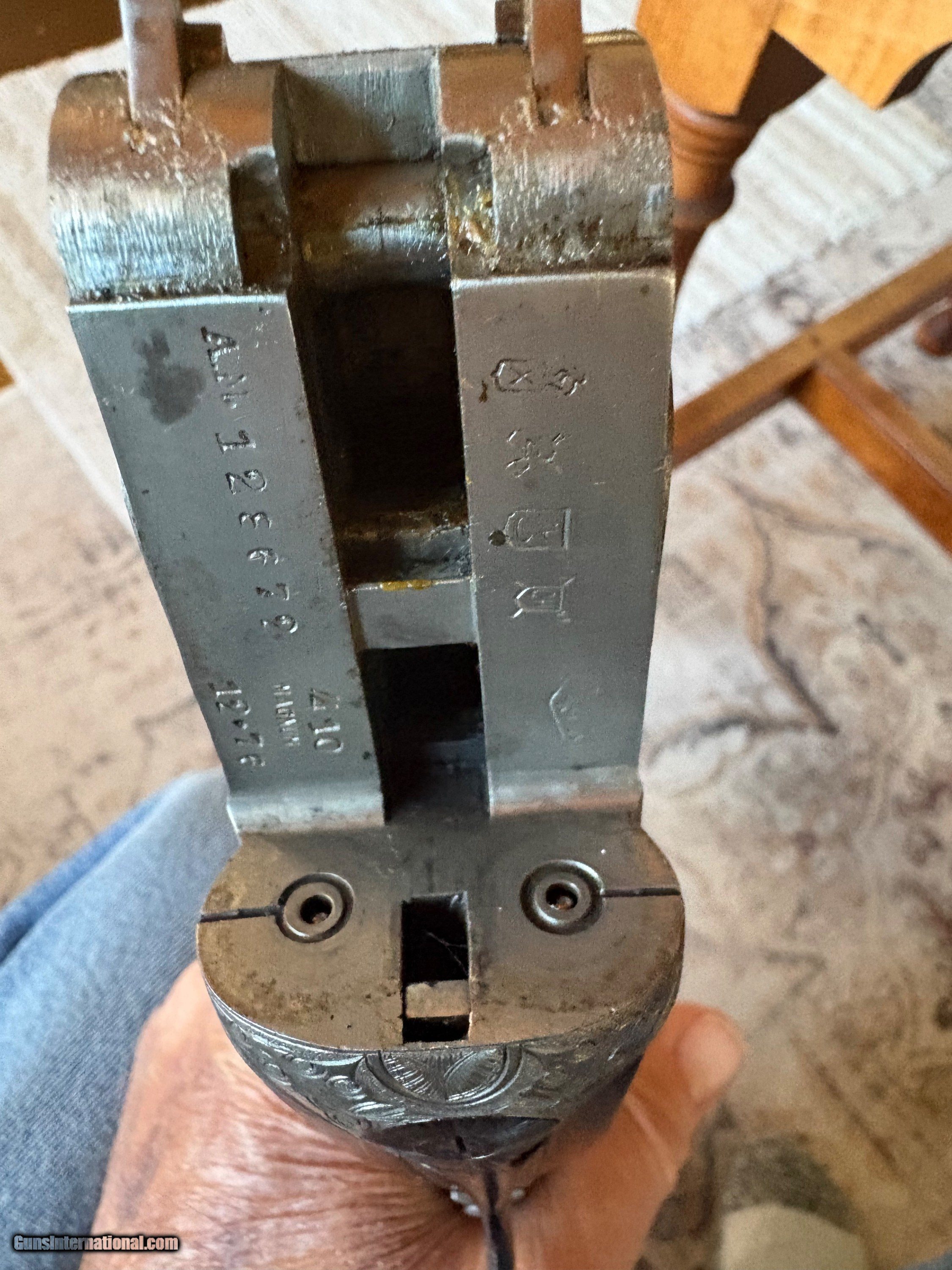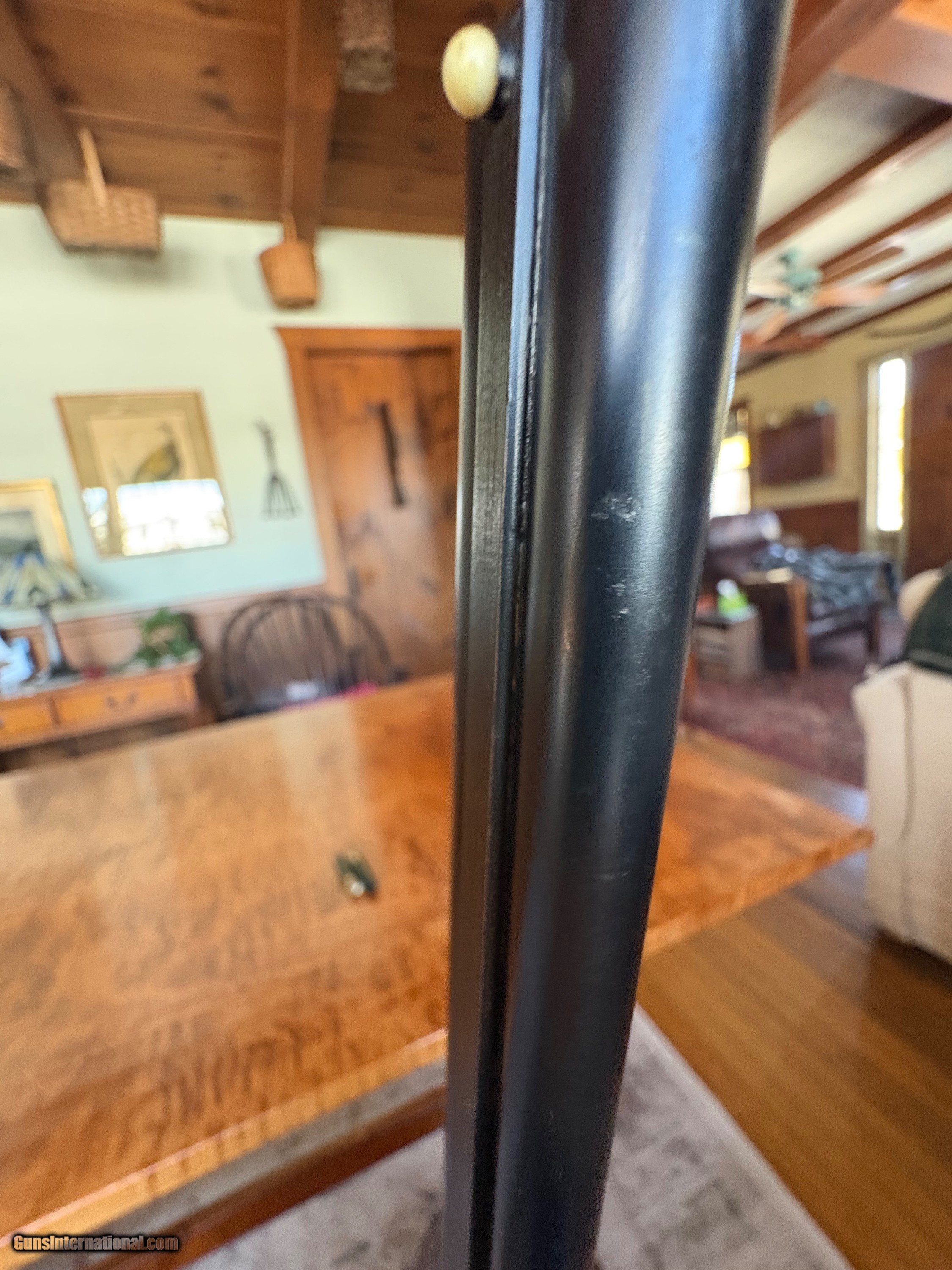 Description: For your consideration I have listed a VERY NICE vintage Stoeger...Victor Saraquata...SCALED FRAME 410 ga side lock.This SXS features bushed firing pins...timed ejectors... cocking dials... 27 1/2 inch barrels with ivory bead that ring like a bell ... choked imp. and full...Lockup is duel underbites with hidden 3rd fastener... tight on face... 5 1/2 lbs... auto safe...Reciever greyed with speckling...pics tell all...A very nice hard to find Zephyr Uplander sub gauge made by Victor Sarasquata for Stoeger...$ 75 shipping my FFL to your FFL Any questions feel free. Manufacturer: Victor Sarasqata Model: Zephyr Uplander Barrel Length: 27 1/2 Bore Info: Perfect Chambers: 3 “ Ejectors: Timed Condition: Excellent Metal Condition: Excellent Wood Condition: 95% Bore Condition: Perfect Barrels: 27 1/2 … 1 small blemish on right barrel near sight Barrel Type: SXS Action: Sidelock Triggers: Double Stock: Walnut Stock Drop: 2 1/8 Stock Comb: 1 1/8 Stock Cast: Right hand Fore End: Semi Beavertail Butt Pad: Checkered LOP: 14 1/2 Rib: Solid Finish: Oil Weight: 5 1/2 Sights: Ivory bead Manufacture Date: Late 50’s early 60’s Chokes: Factory Choke Left: Full Choke Right: IC Engraving: Light Item Location: RI Proof:Nitro: Yes Grips: Pistol Price: $2,275.00 Contact Seller |
