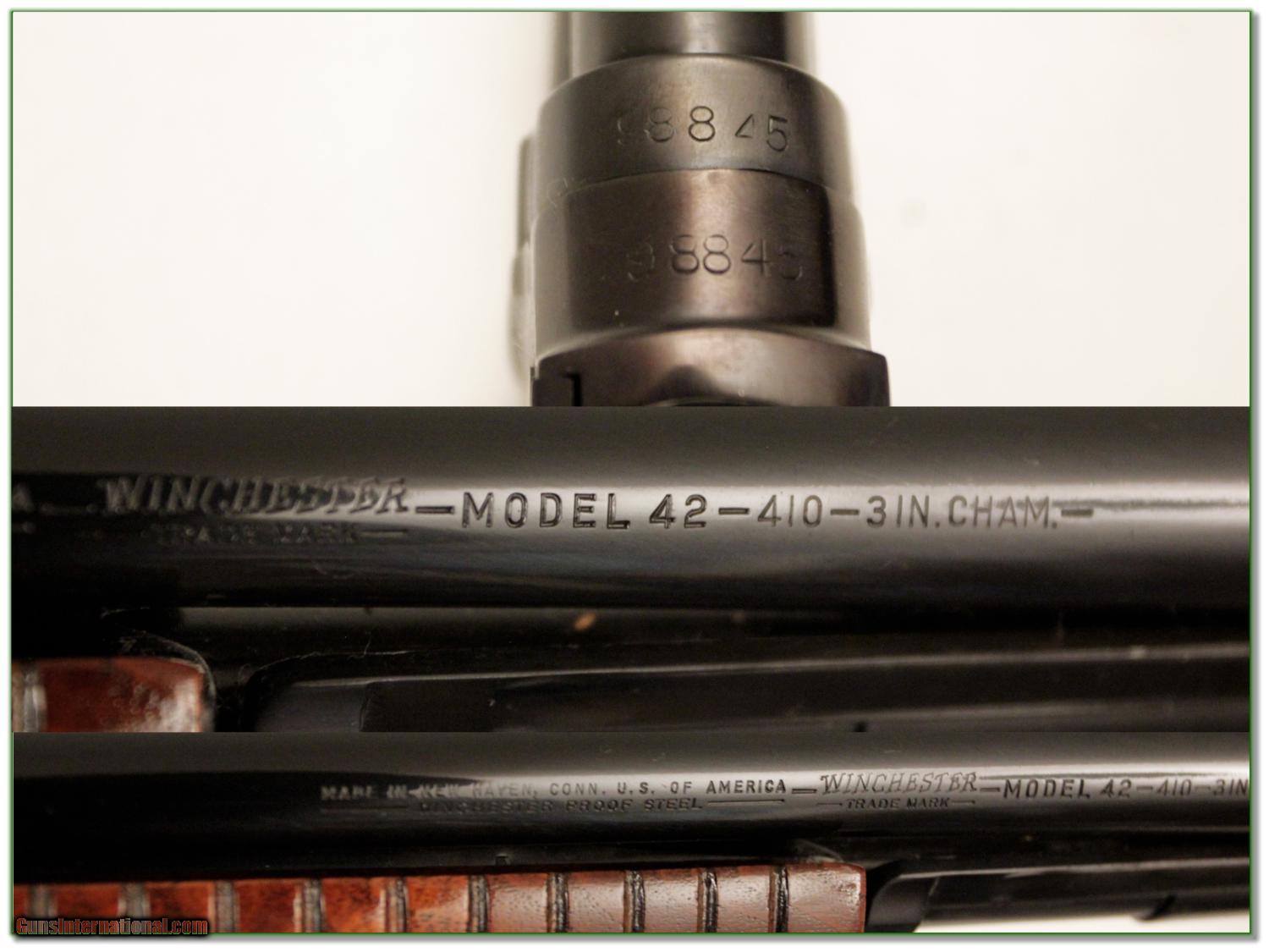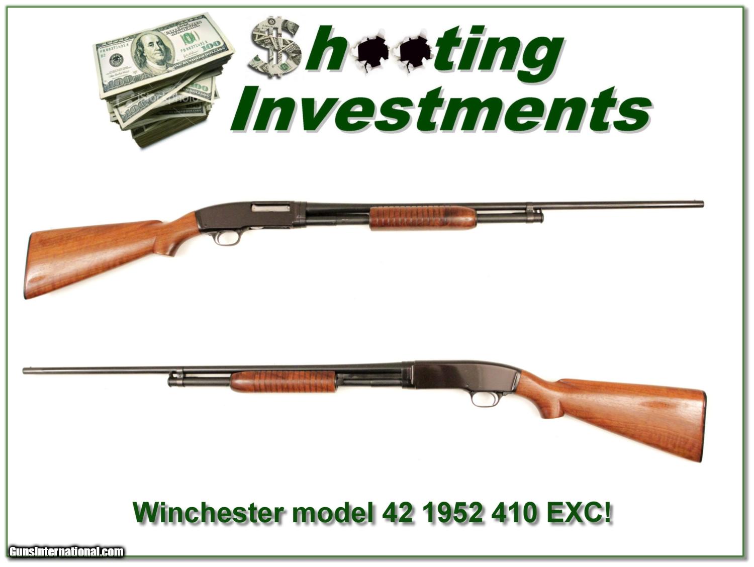 Description: Collectors, this is an excellent condition Model 42 Winchester. It was made in 1952 and shoots 2 3/4in and 3in shells. The barrel is choked full. It is so nice it may be restored to as new. The owner bought it 15 years ago as it is. I am selling this one on consignment and as such lay-a-way can’t be used. It does of course have the standard 3 day inspection. Shipping and insurance is $30 or $18 more if you want it shipped in a new Plano hard case. Please email me with any questions or larger pictures. (I now consign quality firearms only 10%! Let me know if you have any you would like to sell!) [15-1502] Payment: Payment is by Money Order, Cashiers Check or Personal Check. I can now also accept MasterCard and Visa with a 3% convenience fee. PayPal can be used for some items but never firearms. Please let us know if you would like to pay via PayPal. Shipping: The shipping charge will be listed in each description. It is $35 for most guns. Some heavy guns or those insured for over $2000 will be higher. Shipments to Alaska and Hawaii are higher because air shipment is required. Most firearms are shipped within 5 days of receipt of payment. We prefer shipping at the beginning of the week to avoid firearms in transit over weekends. We package all shipments carefully and insure them for the full purchase price, rounded up to the next $100. In the unlikely event that damage occurs, it is important that you save all packaging material for the claims process. Optics are shipped Priority Mail and most other non-firearm shipments are shipped First Class. Returns: Our return policy is simple. If for any reason you are not pleased with your purchase, you may return your item for a refund. The only exception is ammunition, it cannot be returned. It is important to us that you are happy. Guns cannot be fired or dissembled before returning them and must be returned in the same condition as received. Notification of a return must occur with-in 3 days of receipt at your dealer. Shipping, convenience and dealer fees are not refundable and are the responsibility of the buyer. Lay-a-way: If needed, we offer a 60 day lay-a-way option on most firearms. It is 1/3 now, 1/3 in 30 days and 1/3 in 60 days. Lay-a-way firearm sales are final. Consigning your firearms with Shooting Investments: We will help you get top dollar for your firearms. While most local guns shops charge 20% or more, our fee is only 10% with a minimum of $50. At your local gun shop it might take months to sell. Selling on-line provides instant access to thousands of interested buyers. You won’t find any other on-line dealer willing to sell your firearms for only 10% or listing every gun on 4 separate s. Selling through an House typically costs the seller 15% and the buyer an addition 15% (so 30%) and you have to wait several months to sell and longer to receive funds. If properly priced, we will sell your firearms in a week or two. Send us an email or give us a call and we’ll explain how easy it is for you to get top dollar. Trading: We collect guns and usually just trade for guns we want to add to our collections. We often sell guns for others wanting to purchase one of ours. We find this the most fair to both of us. Our Commission is only 10% and we hold the gun you want until yours sells. Please contact us if you want to sell one of yours to buy one of ours. Help for California Buyers: We are happy to ship to California. It is the buyer’s responsibility to make sure any item you buy is legal in your state. We are also happy to help with your purchase of a firearm from someone other than us. If you see a gun you would like to buy but the seller can’t or won’t ship to California we can help. You buy the gun and have it shipped to us. We’ll then ship it to your California dealer. The cost for this service is only $30 + shipping. Let me know if we can help! SOLD |