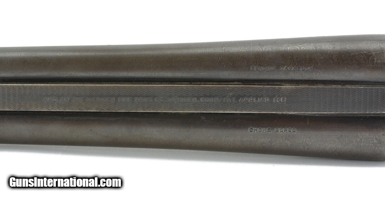 Description: Meriden Firearms Company Aubrey 12 Gauge shotgun. Damascus barrel shotgun 32” full and modified. Bores are excellent with good Damascus pattern. Receiver is factory engraved game scenes and scrolls. Stock has most of its original varnish case color on receiver. About 60% visible colors. Overall very great Damascus shotgun. Not for modern ammo.