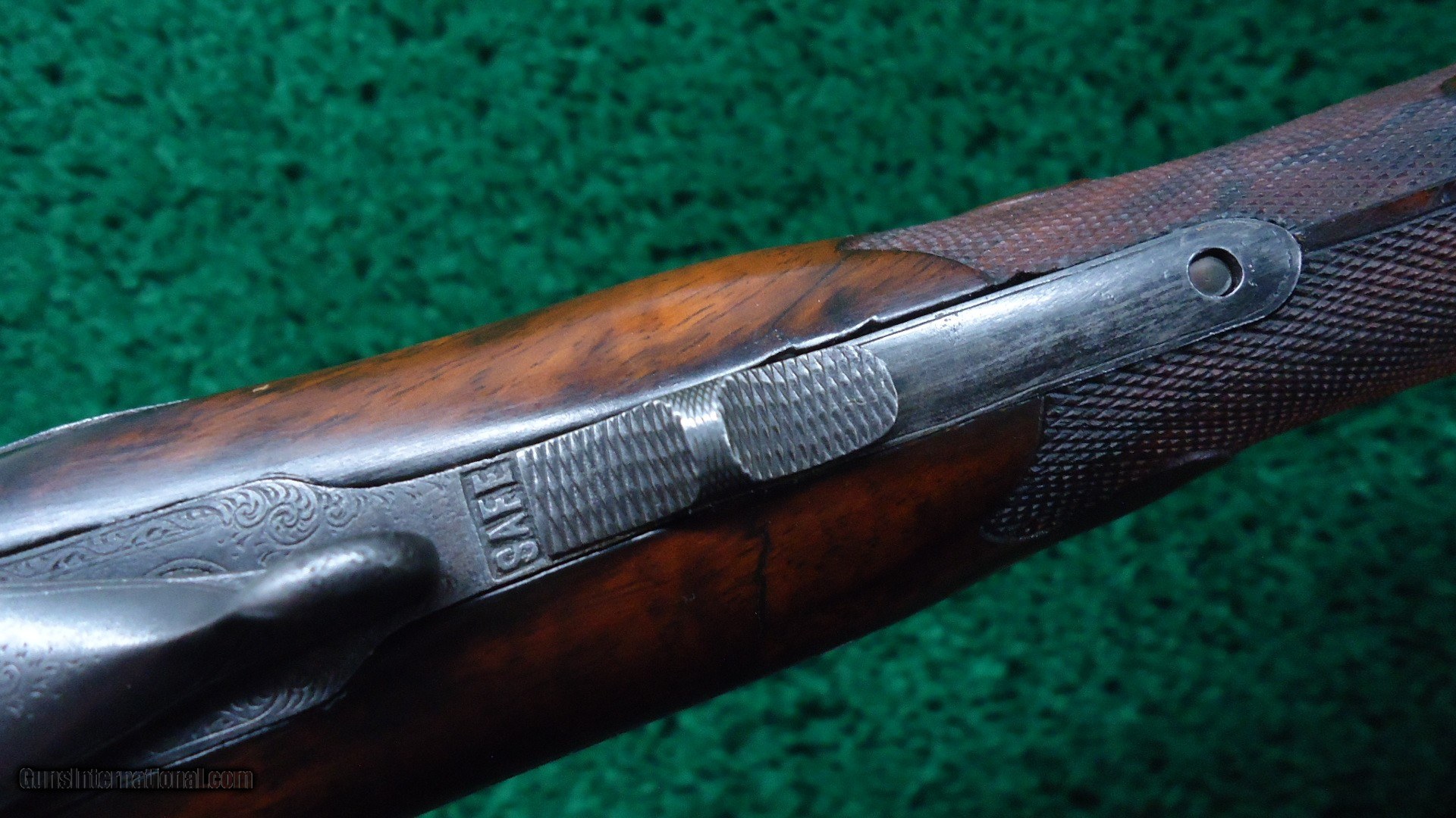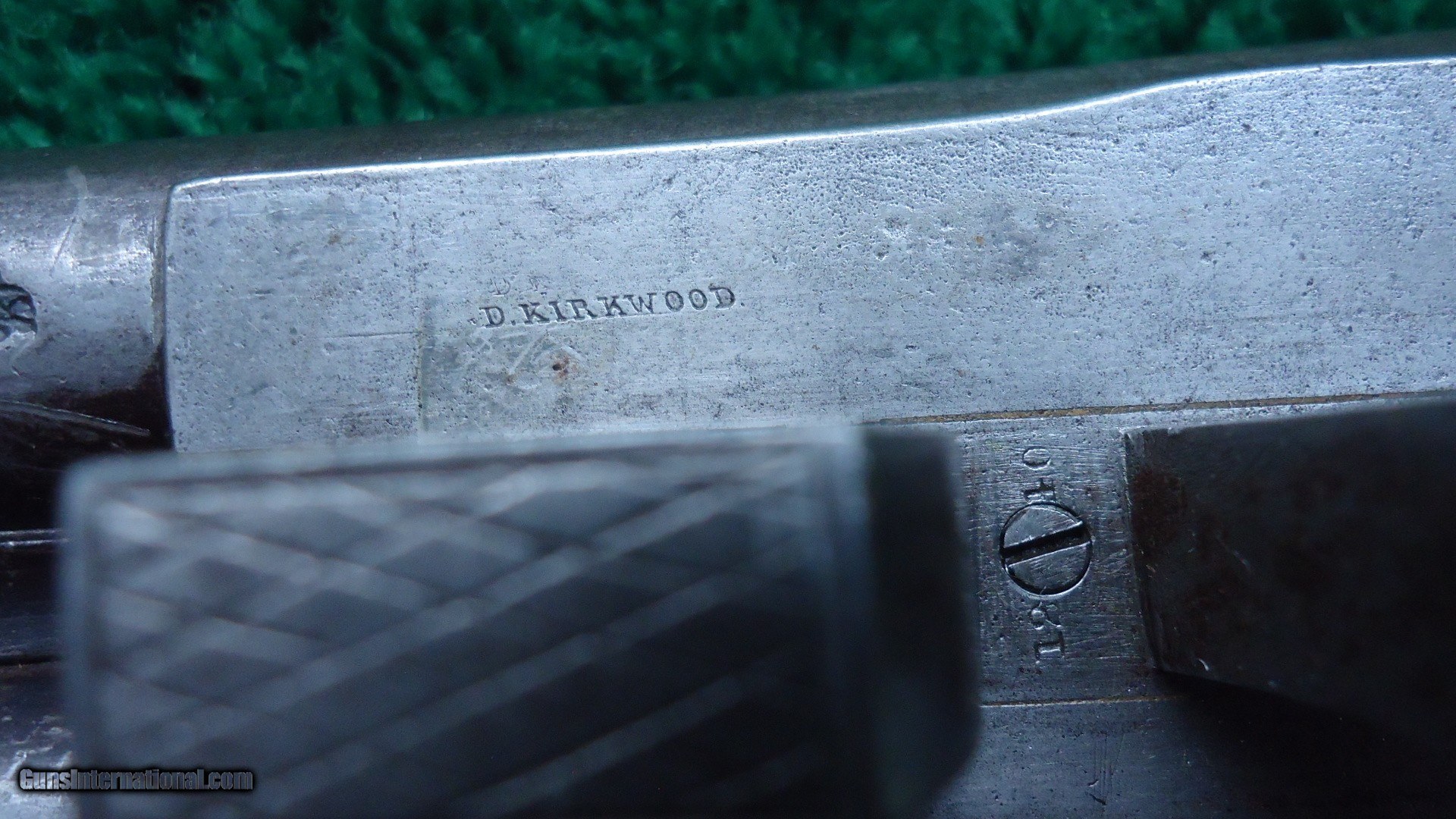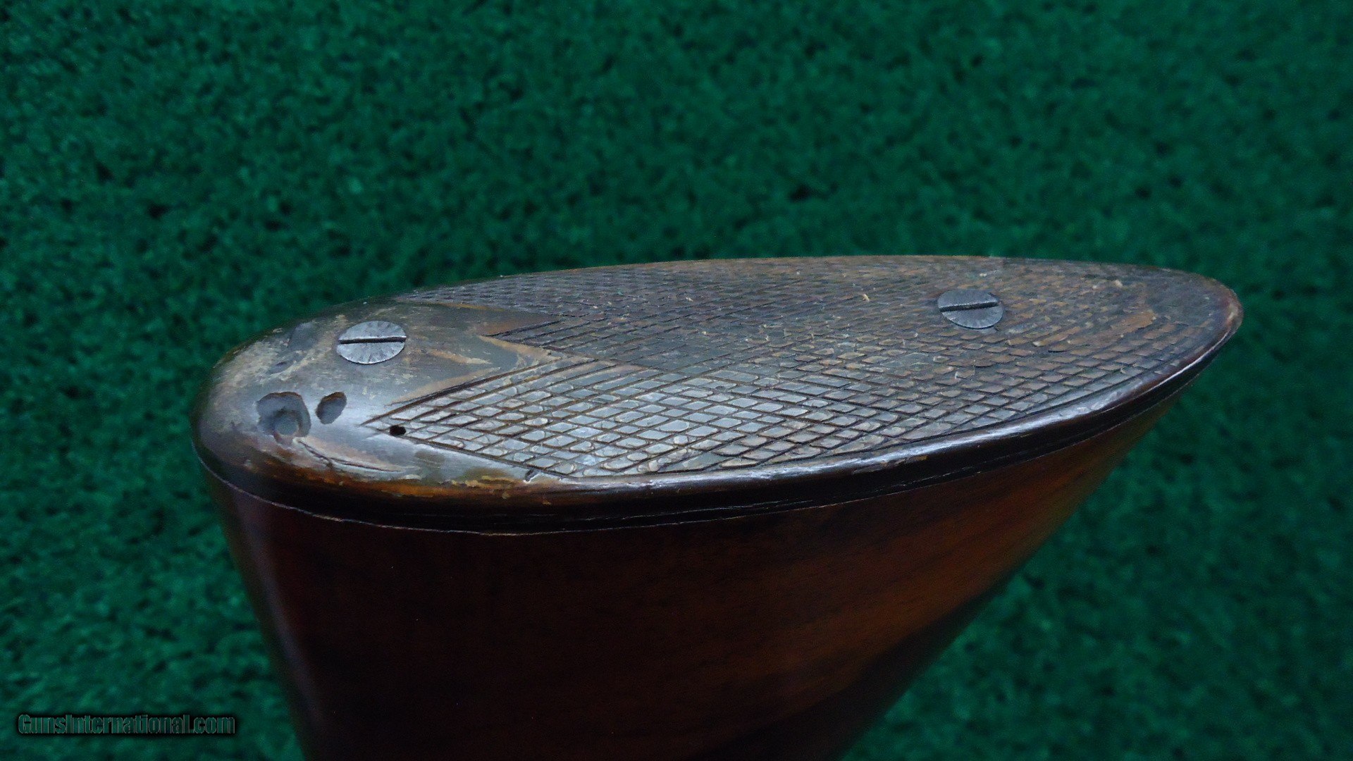 Description: avid Kirkwood of Boston hand made several guns in the 1880’s and 1890’s. Reportedly he produced about 400 handmade Shotguns, Drilling and Double Rifles. His guns are superb and were easy rivals of the beautiful English guns. This is a 16 Gauge Side-lock Hammerless. 28 inch barrels are choked Full and have good traces of a Damascus pattern. Circassian walnut of high quality stocks. 13-1/2 inch LOP. Pistol grip with fluer-de-lis style checkering. Wood has been lightly refinished. Looks great. Side plates are nicely engraved with scroll work. Overall metal retains very little finish and is mostly a gunmetal grey. Excellent mechanics. Gun features ejectors, double triggers and a third fastener. Fitted in a nicely preserved “leg of mutton” case. Leroy Merz Antique Firearms specializes in antique and vintage Winchesters and other fine American firearms. Since 1965 Mr. Merz has taken part in the world of firearms and has been a contributor to many well known reference books. We have hundreds of additional guns in every price range at our home online. Search for Merz Antiques in google. SOLD Antique: Yes Shotgun Gauge: 16 Gauge |
