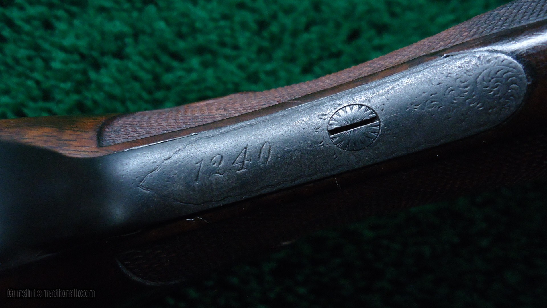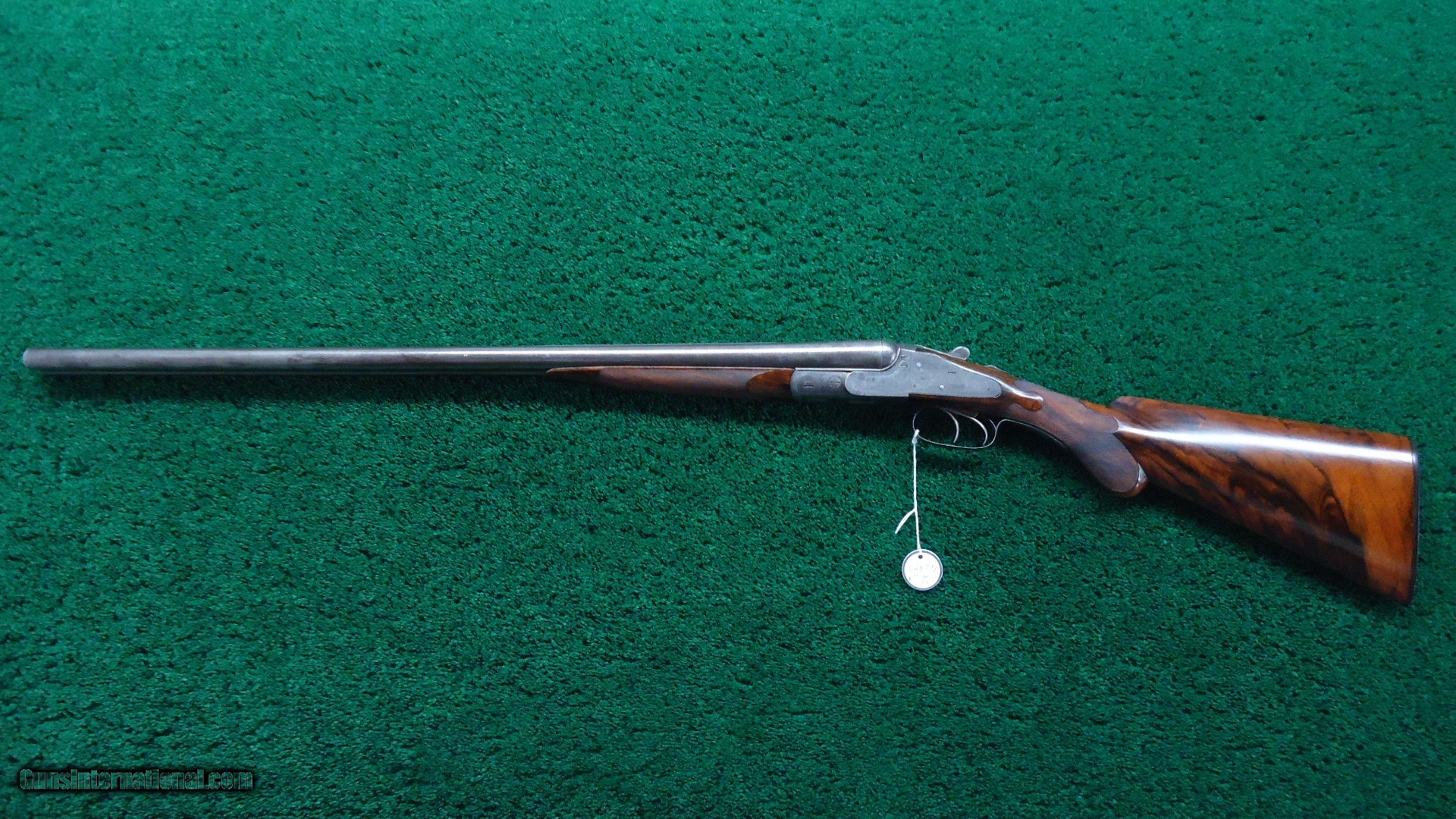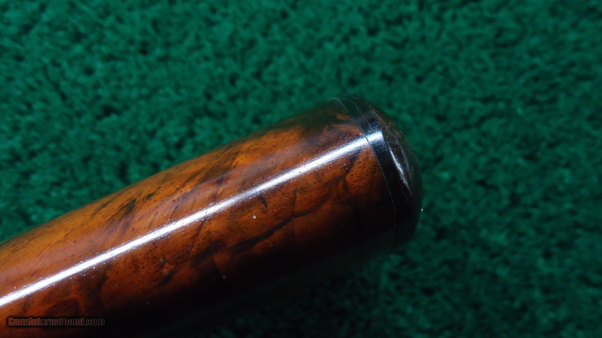 Description: avid Kirkwood of Boston hand made several guns in the 1880’s and 1890’s. Reportedly he produced about 400 handmade Shotguns, Drilling and Double Rifles. His guns are superb and were easy rivals of the beautiful English guns. This is a 16 Gauge Side-lock Hammerless. 28 inch barrels are choked Full and have good traces of a Damascus pattern. Circassian walnut of high quality stocks. 13-1/2 inch LOP. Pistol grip with fluer-de-lis style checkering. Wood has been lightly refinished. Looks great. Side plates are nicely engraved with scroll work. Overall metal retains very little finish and is mostly a gunmetal grey. Excellent mechanics. Gun features ejectors, double triggers and a third fastener. Fitted in a nicely preserved “leg of mutton” case. Leroy Merz Antique Firearms specializes in antique and vintage Winchesters and other fine American firearms. Since 1965 Mr. Merz has taken part in the world of firearms and has been a contributor to many well known reference books. We have hundreds of additional guns in every price range at our home online. Search for Merz Antiques in google. SOLD Antique: Yes Shotgun Gauge: 16 Gauge |