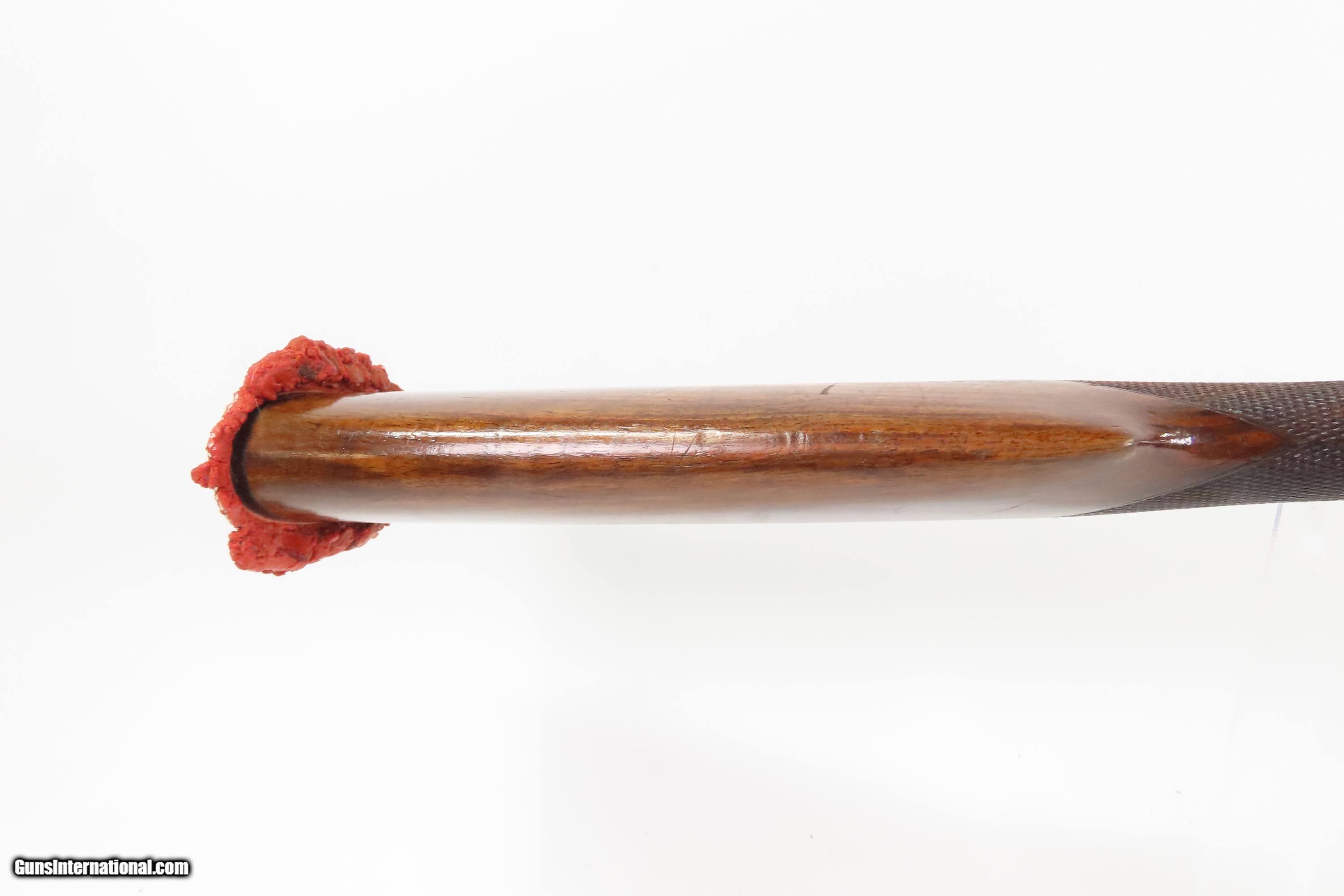 Description: ENGRAVED L.C. SMITH Antique BOXLOCK Double Barrel 12 g. HAMMERLESS Shotgun Circa 1886-88 Side x Side HUNTING/SPORTING Shotgun Here we present an antique Engraved L.C. Smith 12 Gauge Boxlock Double Barrel Side by Side Hammerless Shotgun, manufactured circa 1886 to 1888. L.C. Smith is easily one of the most recognizable names in the world of American double guns. They are very close in quality compared to many of the other popular doubles of their time and are inarguably tied to wingshooting history in the States. The era of the great American double-barreled shotgun lasted for almost 100 years, from shortly after the Civil War in the late 1860s until the middle of the 20th century. Grand old names like Parker, Fox, Ithaca, Winchester and L.C. Smith topped the list of the better double guns that were made in the United States. Each of these brands have many advocates, users and collectors. The L.C. Smith Company has a rather complex history. Lyman Cornelius Smith and his older brother, Leroy, entered the gun business in partnership with William H. Baker in 1877 to manufacture the Baker series of shotguns. In 1880, Lyman (L.C.) Smith bought out his brother and William Baker. Leroy Smith, William Baker and some other partners went on to form Ithaca Gun Co. L.C. continued to make the Baker guns, which were marked “L.C. Smith, Maker of the Baker Gun.” The Baker models were phased out beginning in 1884, and by 1886 newly designed hammer and hammerless side-by-sides were being made by “L.C. Smith, Maker.” At about this time, L.C. was looking beyond the firearms industry for his next business venture. Comb drop1 ¾”. Heel drop 3”. Weight: 7.10 pounds. The overall condition is very good. Damascus pattern barrels. Case colors remain on the locks and frame. Lightly engraved locks. The re-varnished stock is very good with minimal handling, deep checkering on the wrist and forend. The visible numbers match. “SD&G” is marked on the underside of the barrels. Crisp markings. The rubber buttplate is deformed. Robust action. The bores are smooth and bright. Replacement forend spring. Own the original! This is a legitimate antique and not a reproduction. Barrels: 26 inches. Caliber: 12 Gauge Chambers: 2-3/4 inches. Chokes: Cylinder/Cylinder Length of Pull: 13-3/4 inches Overall condition as seen in photos. Very Fast. Very Safe. FREE SHIPPING WORLDWIDE. Delivered directly to your door by express mail! Guaranteed AUTHENTIC & Includes CERTIFICATE OF AUTHENTICITY. $1695 #257535 Antique: Yes Price: $1,695.00 Buy Now Pay with ![]() Contact Seller |