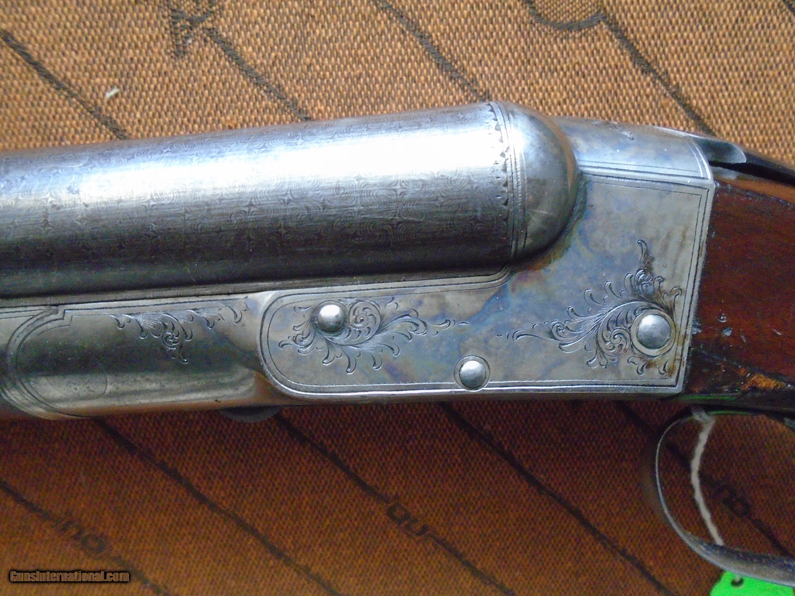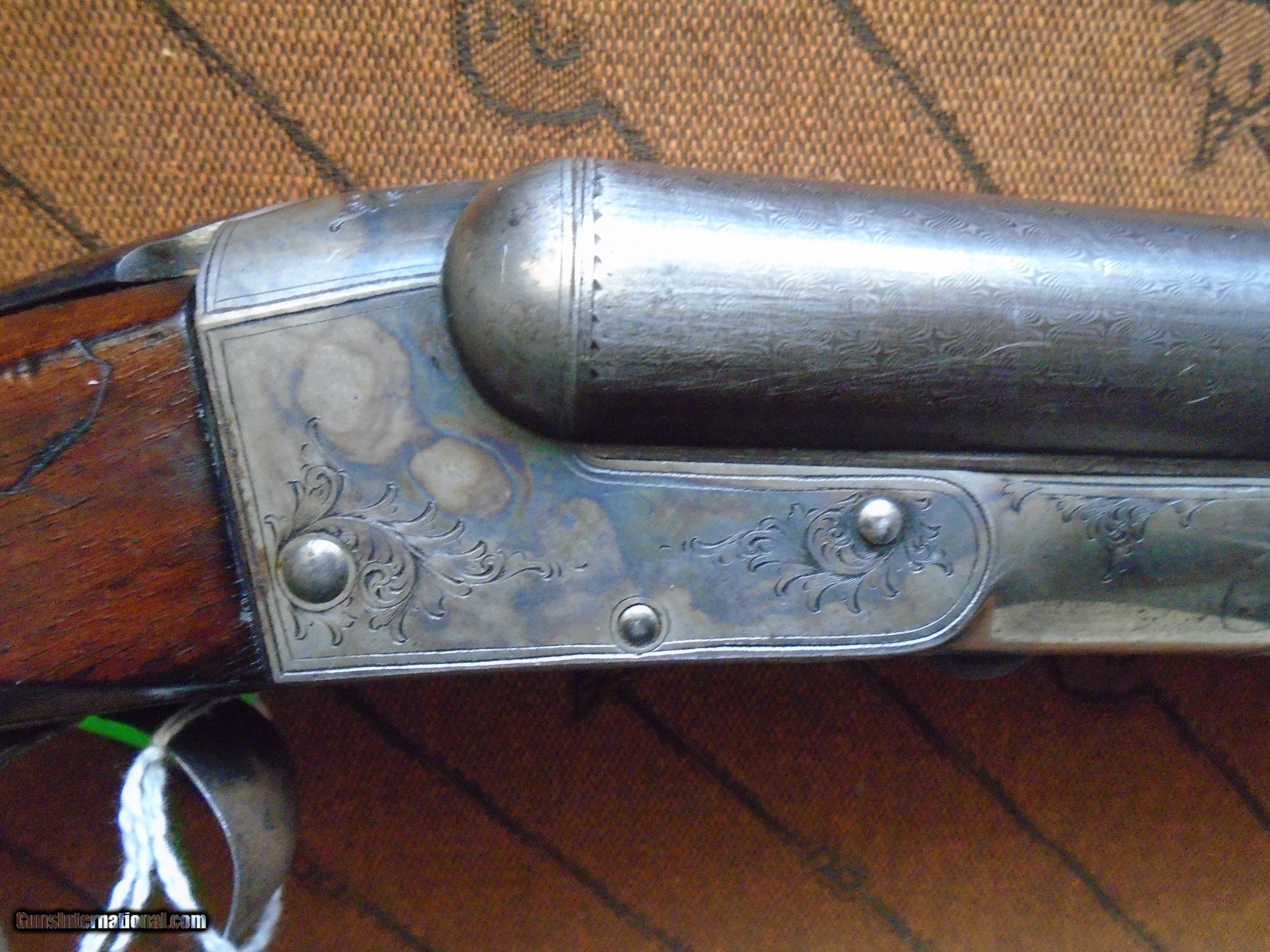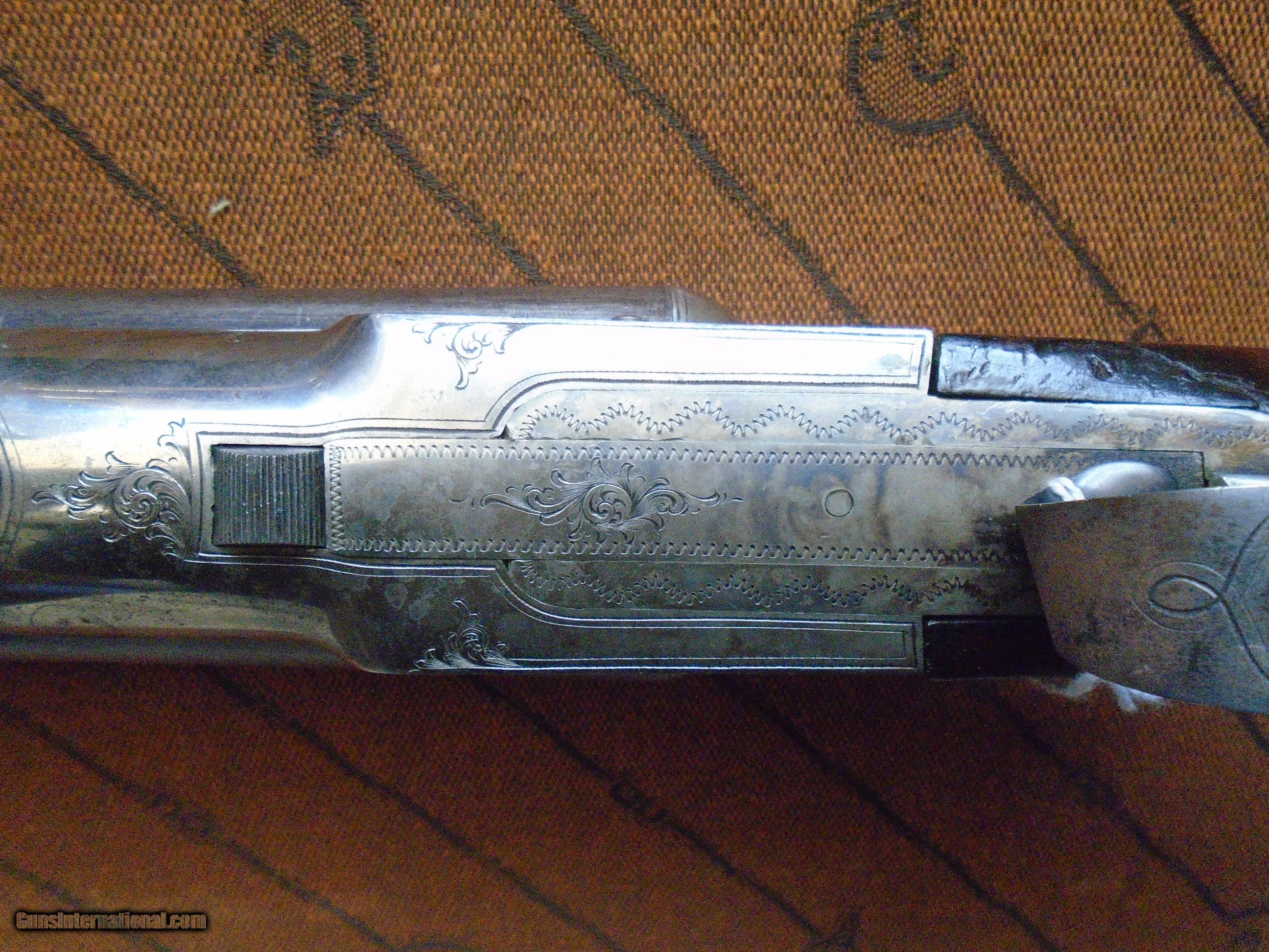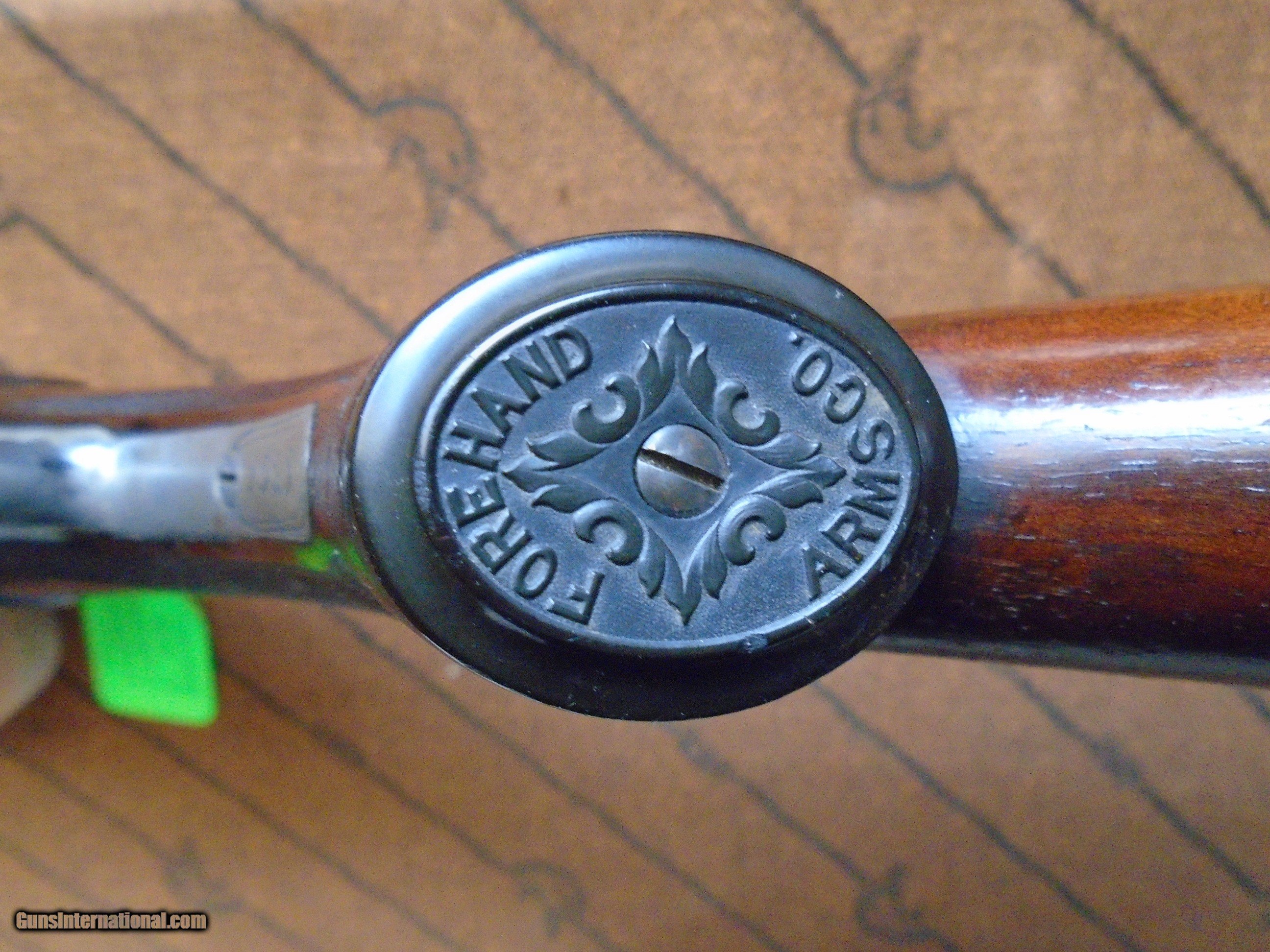 Description: This is a very nice example of The Forehand Model 1890. It is a 12 ga boxlock gun with 30” Damascus barrels and Westly Richards type rib extension for lock up. It is a very well-made gun and retains over 90% original finish including about 80% case colors. Forehand , and its predecessor Forehand & Wordsworth, were well known makers of revolvers known as Bull Dogs. The Shotguns are very rarely encountered. This one is higher grade with some nice engraving and good wood. The grade “1” is marked on action flat. At least one higher grade was made as well as lower grades 0 and 00. In order to dismount the barrels one must push forward on button on the bottom of the action. Reduced from $1250 The Forehand Model 1890 was made on the Nov. 2,1890 patent by Martin Bye. It is of an unusual design. This maker has an interesting background. It finds its origin when Ethan Allen set up a pistol shop in 1871. The company passed thorough several generations and name changes: Ethan Allen, E. Allen & company, Allen & Wheelock, Forehand & Wordsworth, and Forehand. Forehand ceased production in 1898 on Forehand’s death. SOLD Antique: Yes Shotgun Gauge: 12 Gauge Manufacturer: Forehand Arms, Norwich, Conn Model: Model 1890, Grade 01 Serial Number: 1350 Barrel Length: 30 Chambers: 2 3/4 Ejectors: no Condition: Excellent Wood Condition: Very good Bore Condition: Excellent Action: Boxlock Triggers: double Stock: English walnut Stock Comb: 1 3/4 Stock Heel: 2 3/4 Fore End: Splinter Butt Pad: HRBP LOP: 13 3/4 Weight: Abou 7 lbs. Manufacture Date: 1892 Choke Left: Full Choke Right: Modifed Item Location: CA |