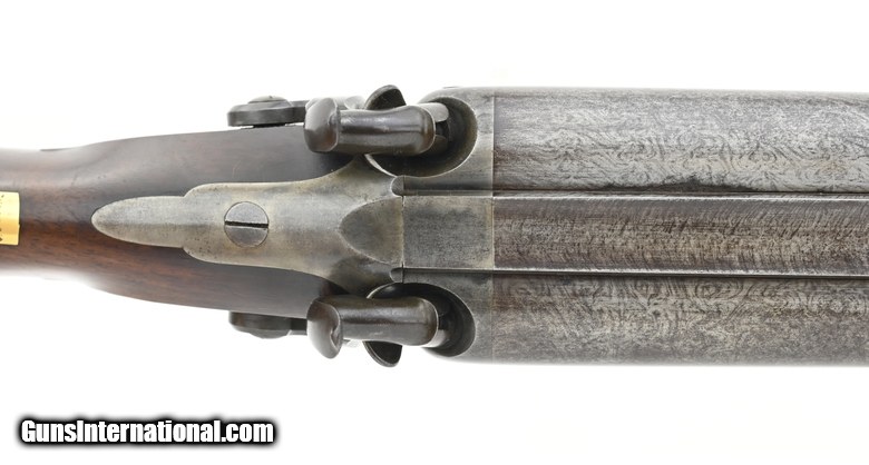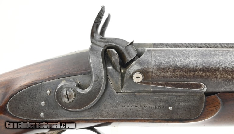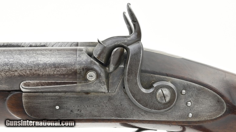Description: MacFarlane Double Barrel 10 Gauge shotgun. Side by side shotgun circa 1850’s-1860’s. 31” Damascus barrels marked “MacFarlane” marked “New York”. Stock is nicely figured walnut. A quality percussion side by side shotgun.