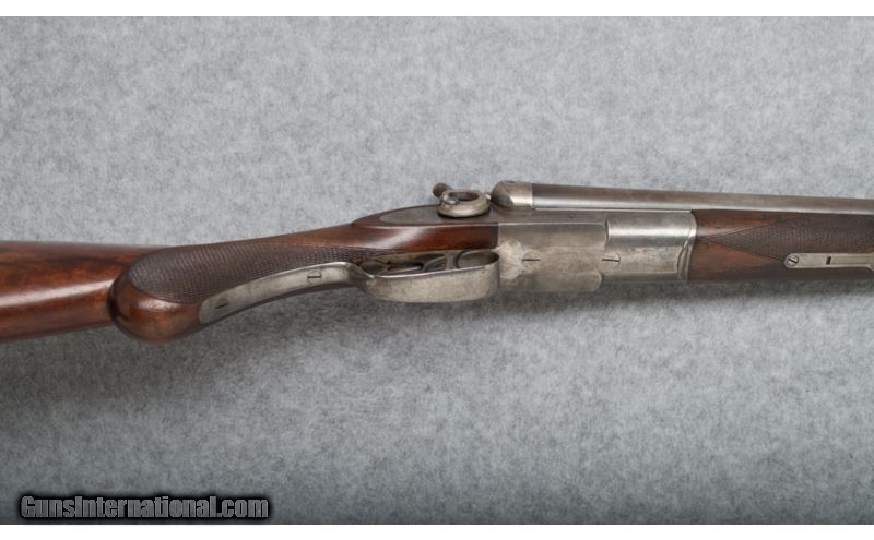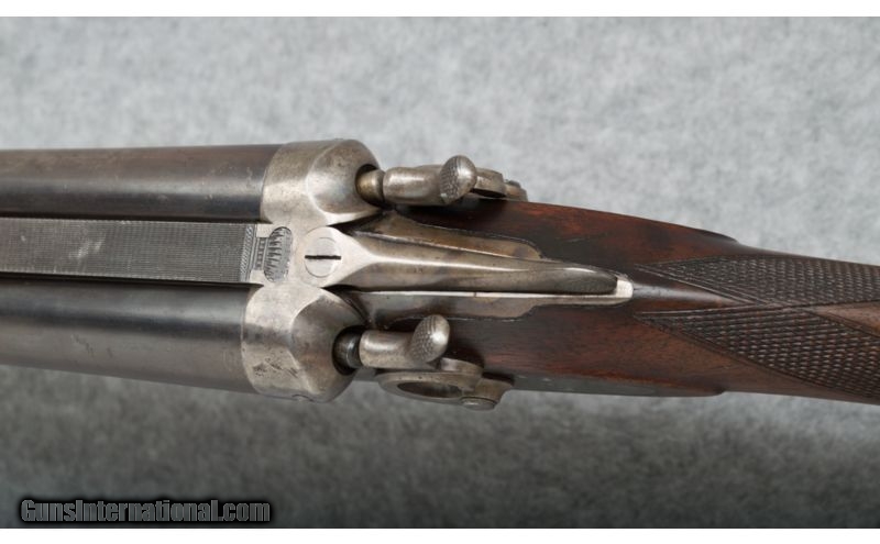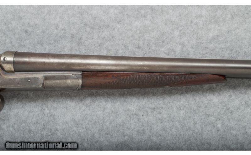 Description: A nice old hammer double. SOLD Caliber Info: 12 gauge Chambers: 2 3/4 inches Metal Condition: Good; bluing wear on lower barrels; not much case coloring left. Wood Condition: Very good; usual handling marks; forearm missing a chip. Bore Condition: Clean and bright Barrels: 30 inches - (steel barrels) Triggers: Double triggers Stock: Round knob checkered walnut Stock Dimensions: LOP - 14 1/4 inches Fore End: Checkered splinter style walnut Butt Pad: Black plastic (Toe missing chip) Weight: 8 lbs. Sights: Silver bead front Chokes: Fixed; Mod. and Mod. Item Location: Sun Prairie, WI |