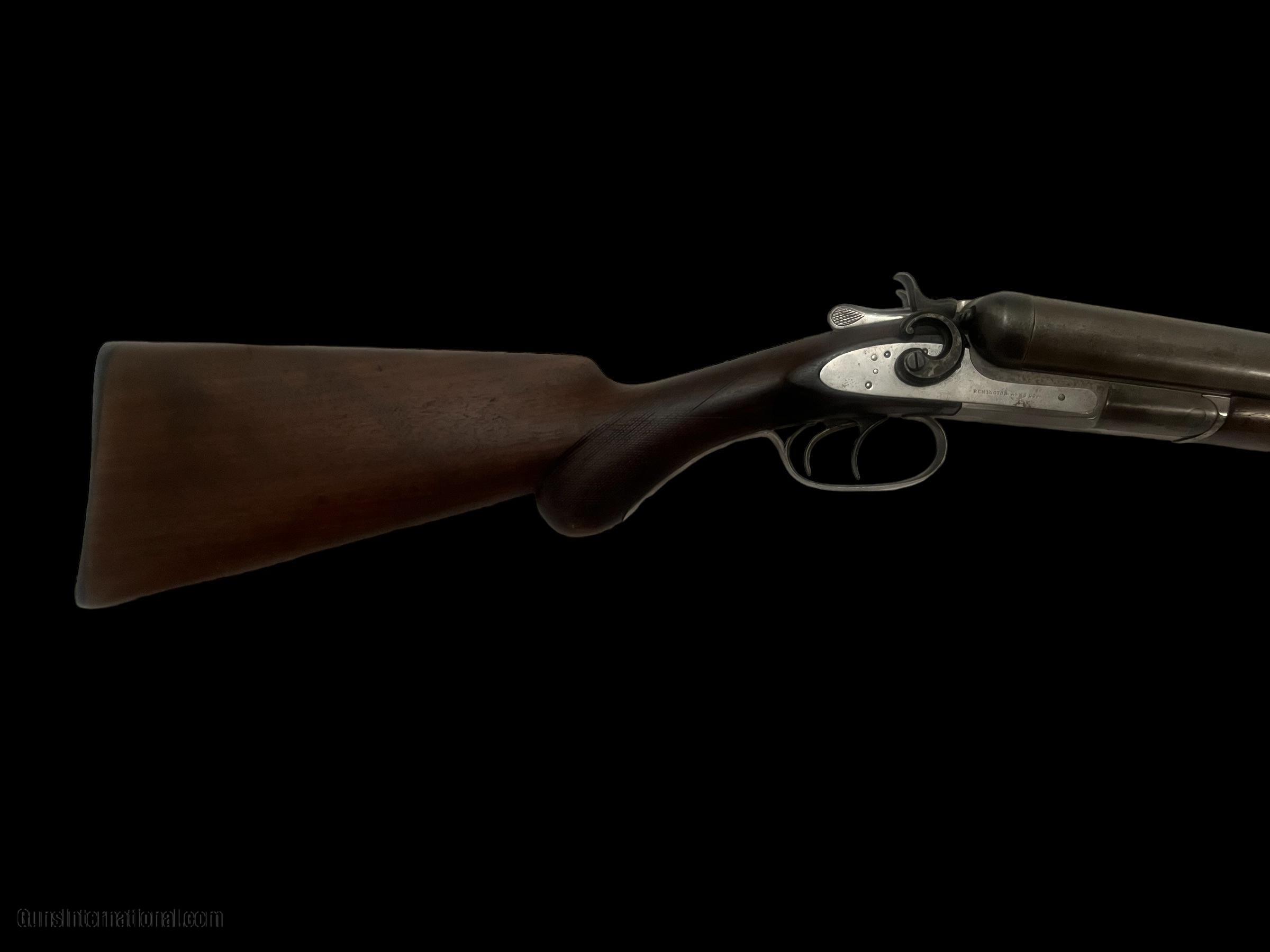 Description: Remington 1889 Grade 1 10 Gauge, hammer gun, 32” Damascus steel barrels, 14-1/8” LOP, SN 67817, extractors Price negotiable Sorry for the lighting. Please email me for better pictures. Thanks. SOLD Shotgun Gauge: 10 Gauge Manufacturer: Remington Model: 1889 Serial Number: 67817 Barrel Length: 32” Condition: Fair Metal Condition: Fair Wood Condition: Fair Bore Condition: Fair Barrel Type: Damascus |