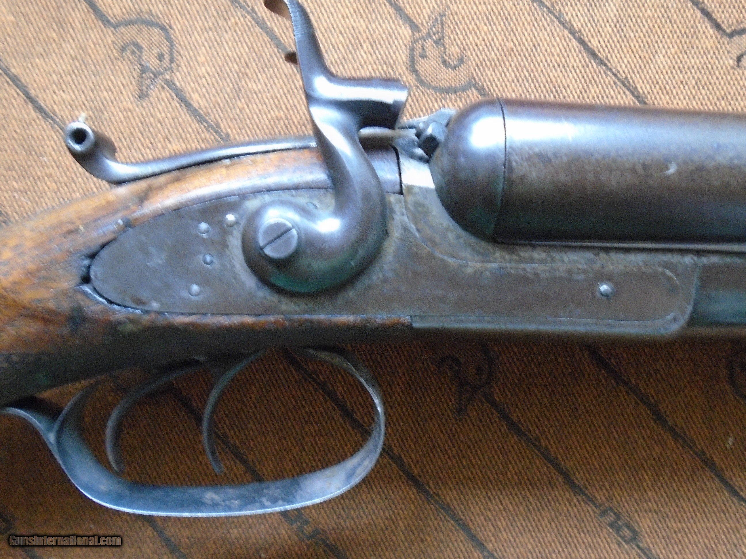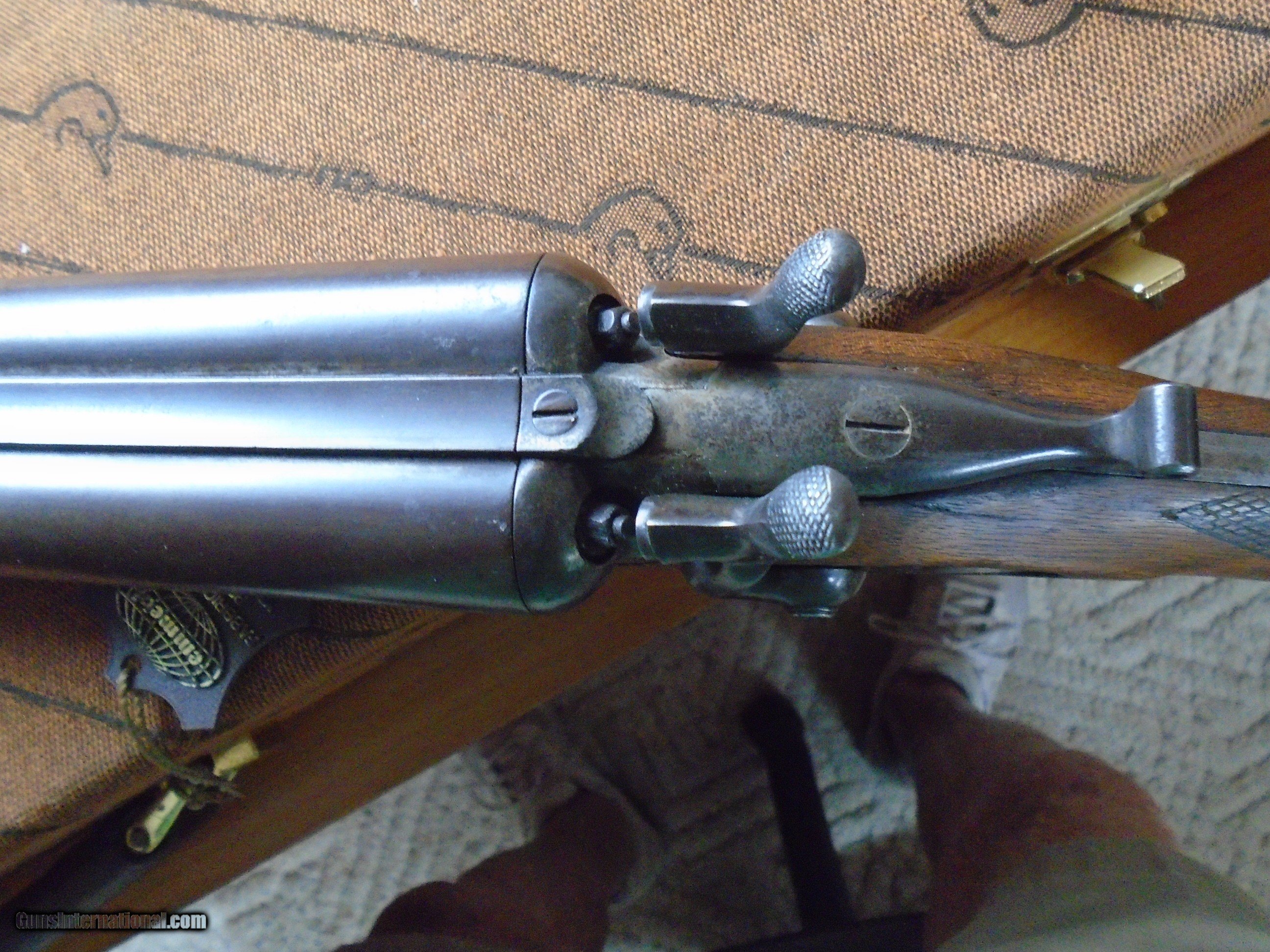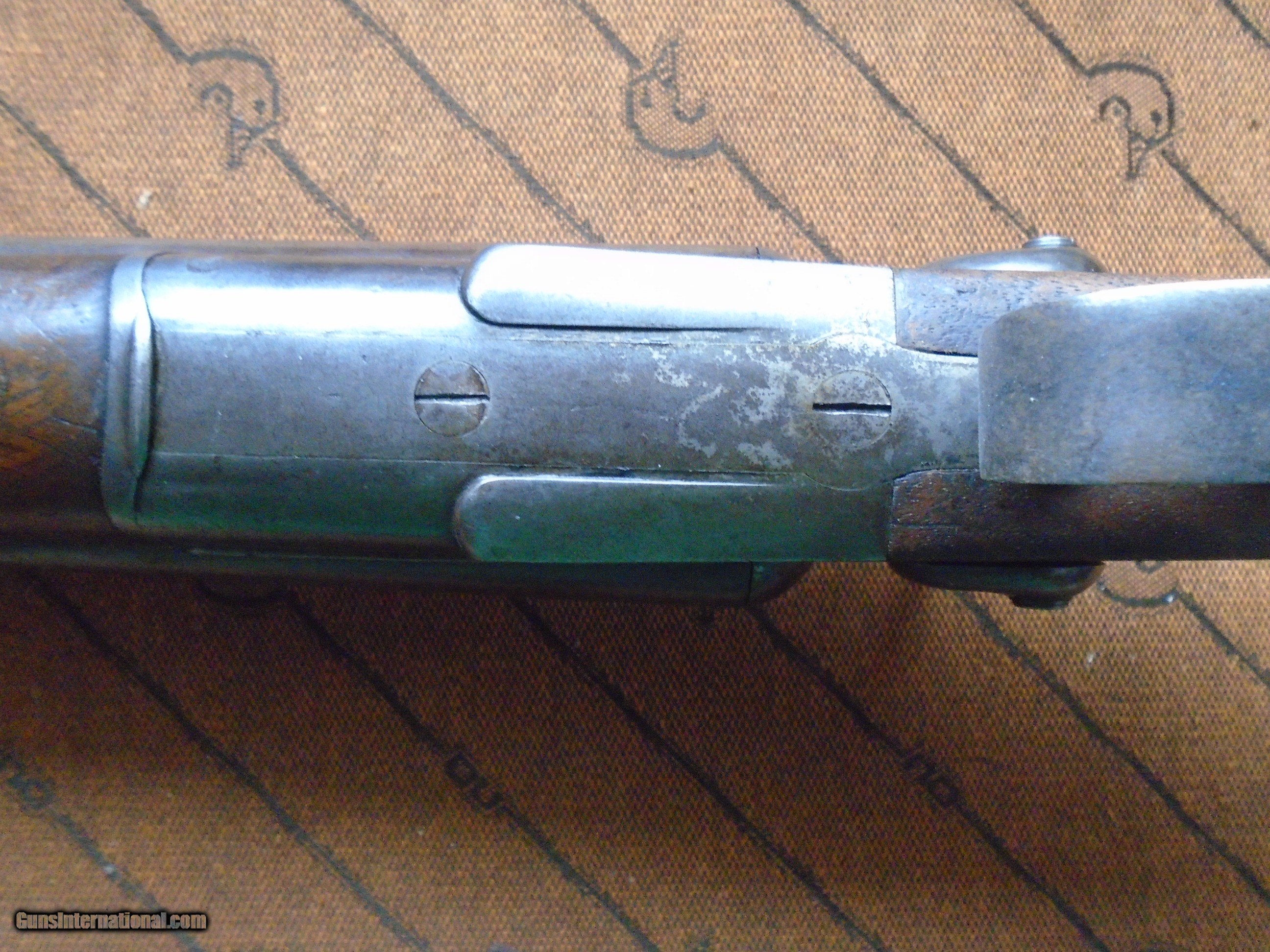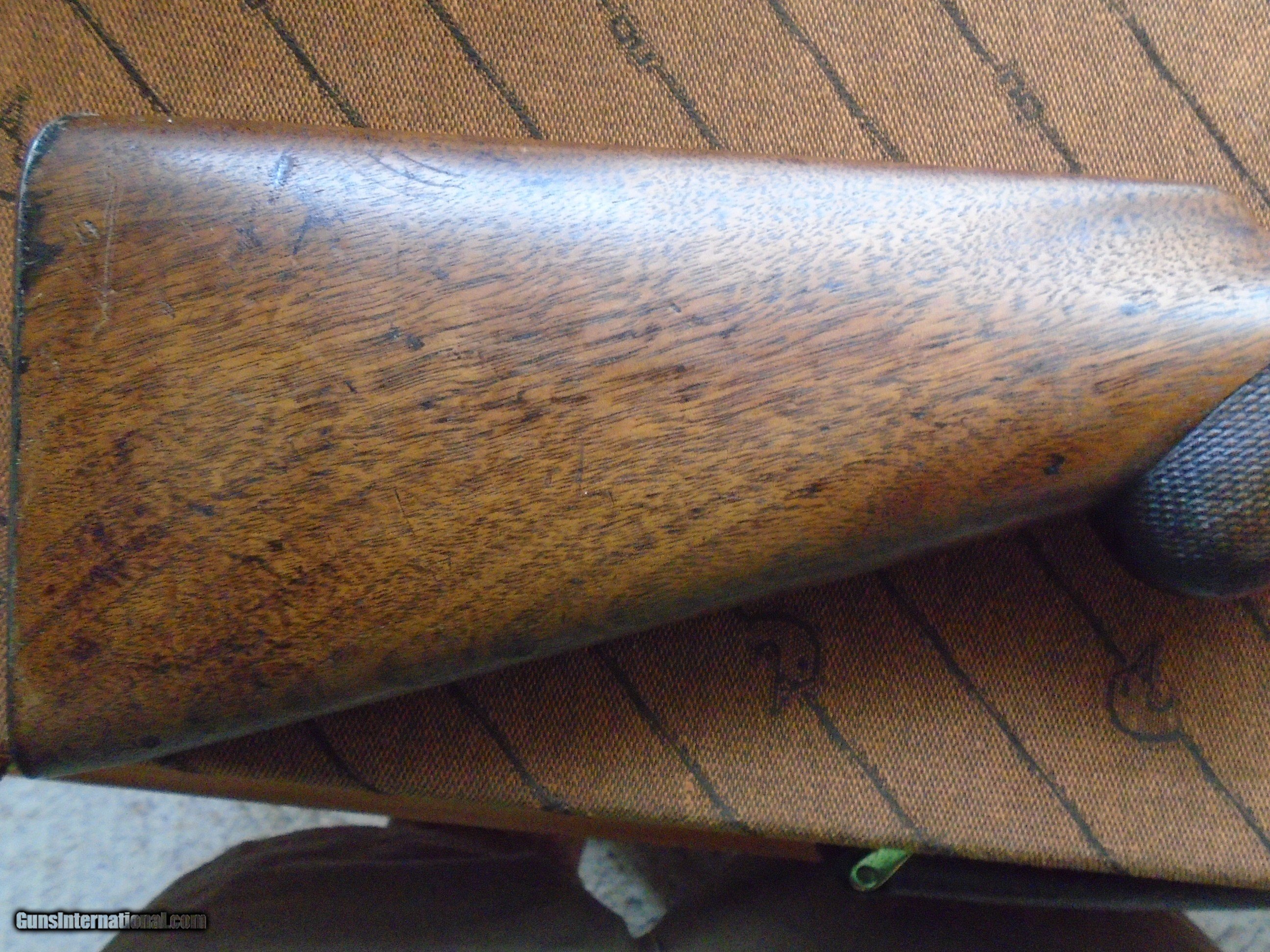 Description: Remington Lifter Action Model 1876 Grade 1. Serial No. 5046.: Marked on the top rib “E. Remington & Sons, Ilion, N.Y.” 12 gauge, 2 3/4" chambers, 30" fluid steel barresls, chokes full and full. There are no dents in the barrels and the bores are lightly pitted but still quite shootable. About 0.005" would clean them up. Since it was made in 1877 it is an antique and requires no FFL for transfer. This is actually a transition gun form model 1876 to 1878. The serial number is in the M ’76 range with all that model’s standard characteristics (lifter action, pinned forend, Hepburn’s 1875 patent locks, flat hammer faces, and non-sliding top plate on the action between the balls). However, like on the Model 1878 there are no vestigial flash shields. It is a 12 gauge with 30” full choke bored barrels. The gun is mechanically excellent and cosmetically an even patina with no rust. Bores are lightly pitted. You can get them cleaned up to like new at Skeet's gun shop (918-456-4749) foir about $250. I have reduced the price accordingly.The stock has the original steel butt plate, has been cleaned, and a minor professional repair made to the head. Checkering is worn but clear. This is a difficult model to find and would make a fine addition to your collection of early American Shotguns and it is ready to shoot. SOLD Antique: Yes Manufacturer: Remington Arms Co. Model: 1876 Serial Number: 5046 Barrel Length: 30 Chambers: 2 3/4 Ejectors: none Condition: Very good Metal Condition: good Wood Condition: good Bore Condition: Lightly pitted Action: sidelock outside hammers Triggers: double Stock: walnut Stock Comb: 2 1/4 Stock Heel: 3 Butt Pad: Steel Butt Plate LOP: 13 7/8 Weight: ca. 8 lbs Manufacture Date: 1877 Choke Left: Full Choke Right: Full Item Location: CA Proof:Black: yes |
