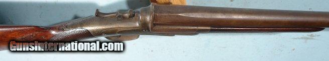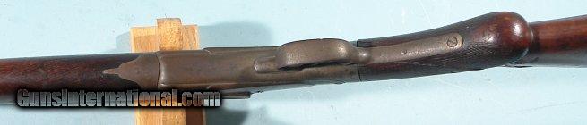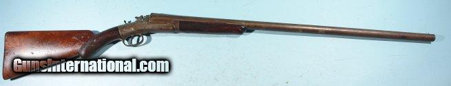 Description: SCARCE WILLIAM LAWRENCE , LACONIA, NEW HAMPSHIRE 10 GA. SINGLE BARREL SHOTGUN CIRCA 1890’S. 32’ full choke fluid steel barrel. Serial number in the 2xx range and original and matching. Hammer spur broken and missing and stock repaired at wrist. Unusual push lever release and single bite action with side mounted extractor. Working order, slight loosening and good bore with light pitting. Needs restoring. SOLD Antique: Yes |