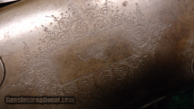 Description: This is a first model with the very small slide action forearm. Serial number 412. 12 ga with 30" bbl. Spencer Arms led the way in the repeating shotgun field. They are scarce and collectable. This is a higher grade shotgun with some engraving on it. Spencer was always noted for it's high quality firearms. This one is no exception. Action does work but is slightly stiff with age. Bore has scattered light pitting and roughness throughout but is bright. Overall cond would be good. Wood is very nice. Good fitting. Even has the orig buttplate which is not cracked. There is numerous dings and use marks. Forearm checkering is all worn off but wood is in good shape with no cracks or losses. A VG collectable shotgun. Leroy Merz Antique Firearms specializes in antique and vintage Winchesters and other fine American firearms. Since 1965 Mr. Merz has taken part in the world of firearms and has been a contributor to many well known reference books. Just recently we mailed the 124th edition of our privately-published catalog. We have hundreds of additional guns in every price range at our home online. Search for Merz Antiques in google. SOLD Antique: Yes |