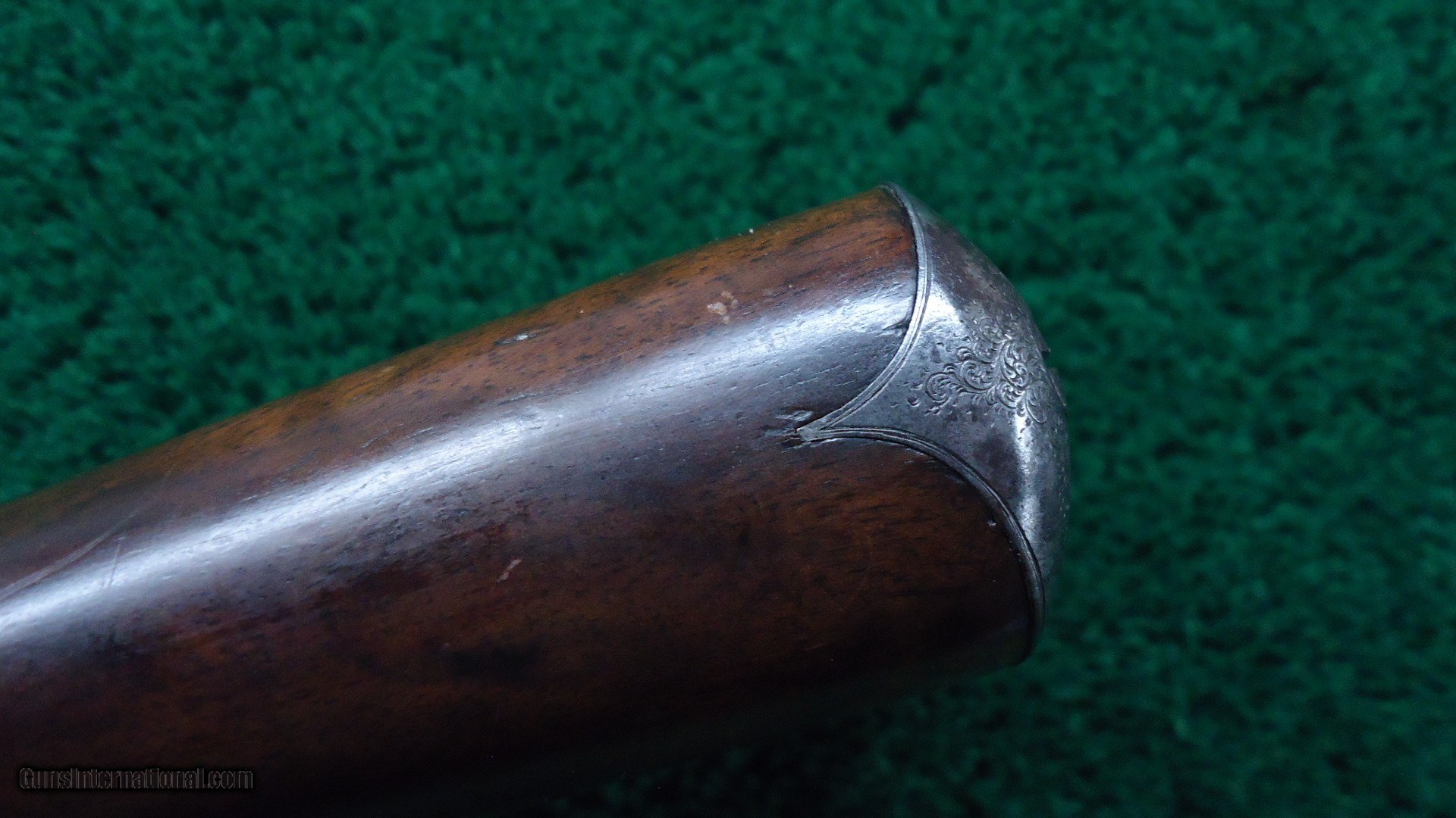 Description: Barrels by Thomas Golcher of Philadelphia. 12 gauge hammer gun. Delicate scrollwork with a dog on each side of the frame and one on the bottom. Wood has been nicely re-checkered. The rest of the stocks are in fine condition with most original varnish and steel shotgun style buttplate. Nice bores. 30 inch barrels are mostly a dark plum/ brown color. Receiver retains traces of case color. Bottom lever opener. Mechanics are fine. Striking gun. Leroy Merz Antique Firearms specializes in antique and vintage Winchesters and other fine American firearms. Since 1965 Mr. Merz has taken part in the world of firearms and has been a contributor to many well known reference books. We have hundreds of additional guns in every price range at our home online. Search for Merz Antiques in google. SOLD Antique: Yes Shotgun Gauge: 12 Gauge |