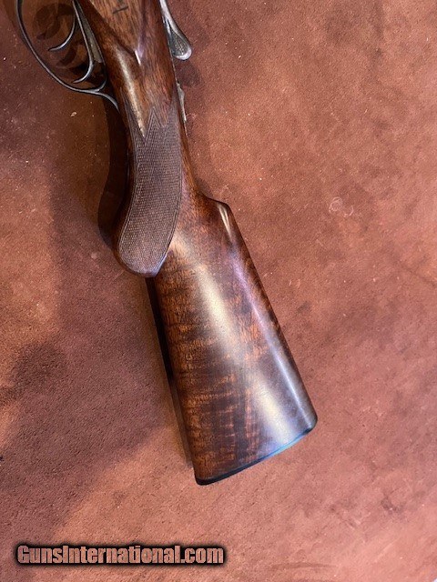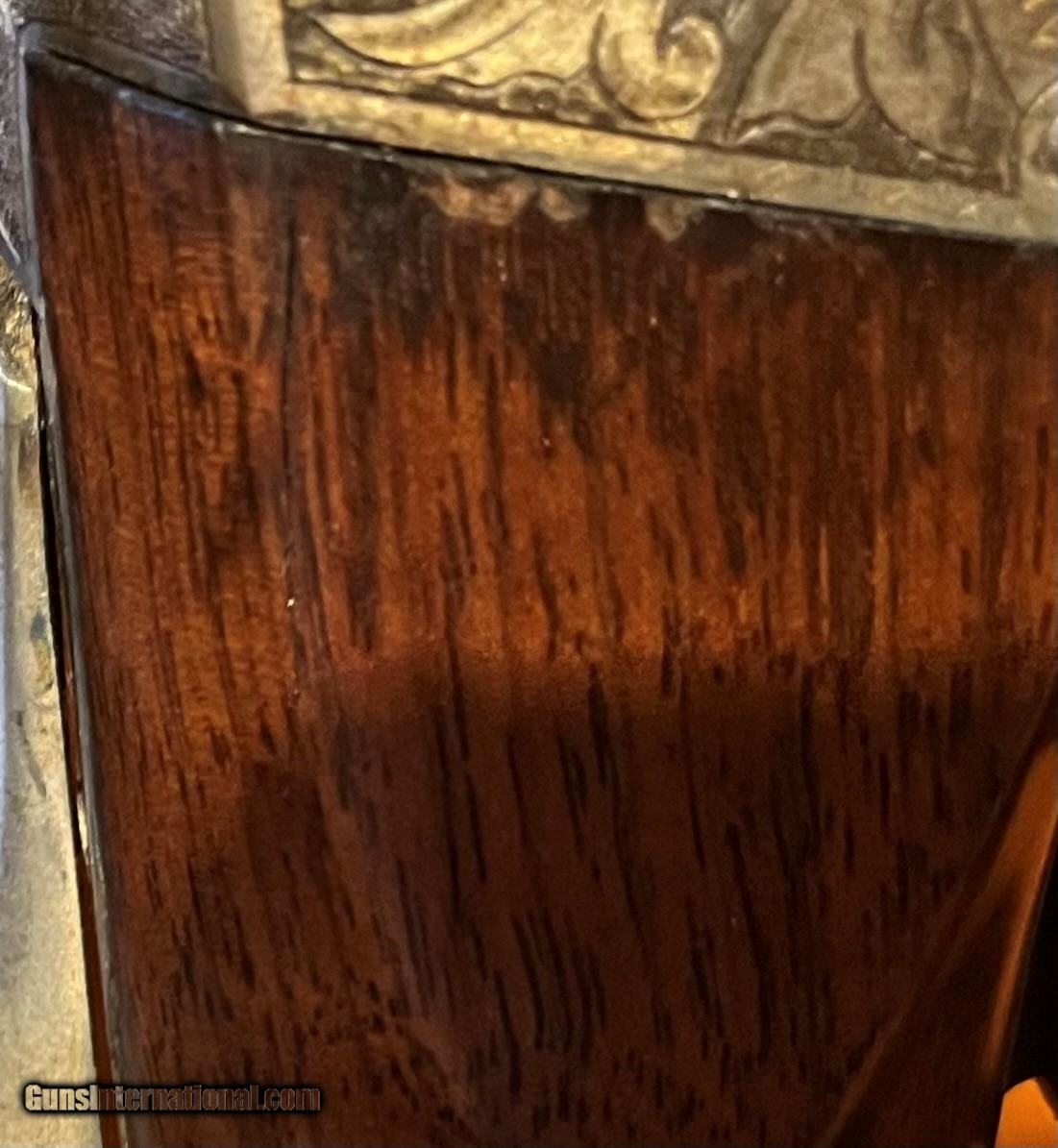 Description: A Fox A Grade 12 Gauge 28" Cool old FoX 12 gauge. SAVAGE UTICA. Certainly been hunted. Patina on the action with trace colors and signs of removed surface rust. Barrels are tight and reblued. Very minor pitting under the bluing. Stock certainly refinished with dings and bumps from a long history in the field. Small repairable crack at the stock head and some surface rust on the bottomof the action seen in photos. Chambers have minor pitting. Plenty of life left here. ORVIS COLLECTS SALES TAX AT THE RATE FOR THE RECEIVING FFL'S LOCATION. $65 SHIPPING. Shotgun Gauge: 12 Gauge Manufacturer: FOX Model: A GRADE Serial Number: 34918 Barrel Length: 28 Chambers: 2 3/4 Ejectors: NO- Extractor gun Condition: Fair to good Metal Condition: Good Wood Condition: Good Bore Condition: FAIR Action: Boxlock Triggers: Double Triggers Stock Dimensions: 14 1 5/8 2 1/2 Stock Cast: Neutral Butt Pad: Plastic Weight: 6 3/4 lbs. Sights: Brass bead Chokes: M/F Item Location: Millbrook NY Price: $1,000.00 Shipping: $65.00 Contact Seller |