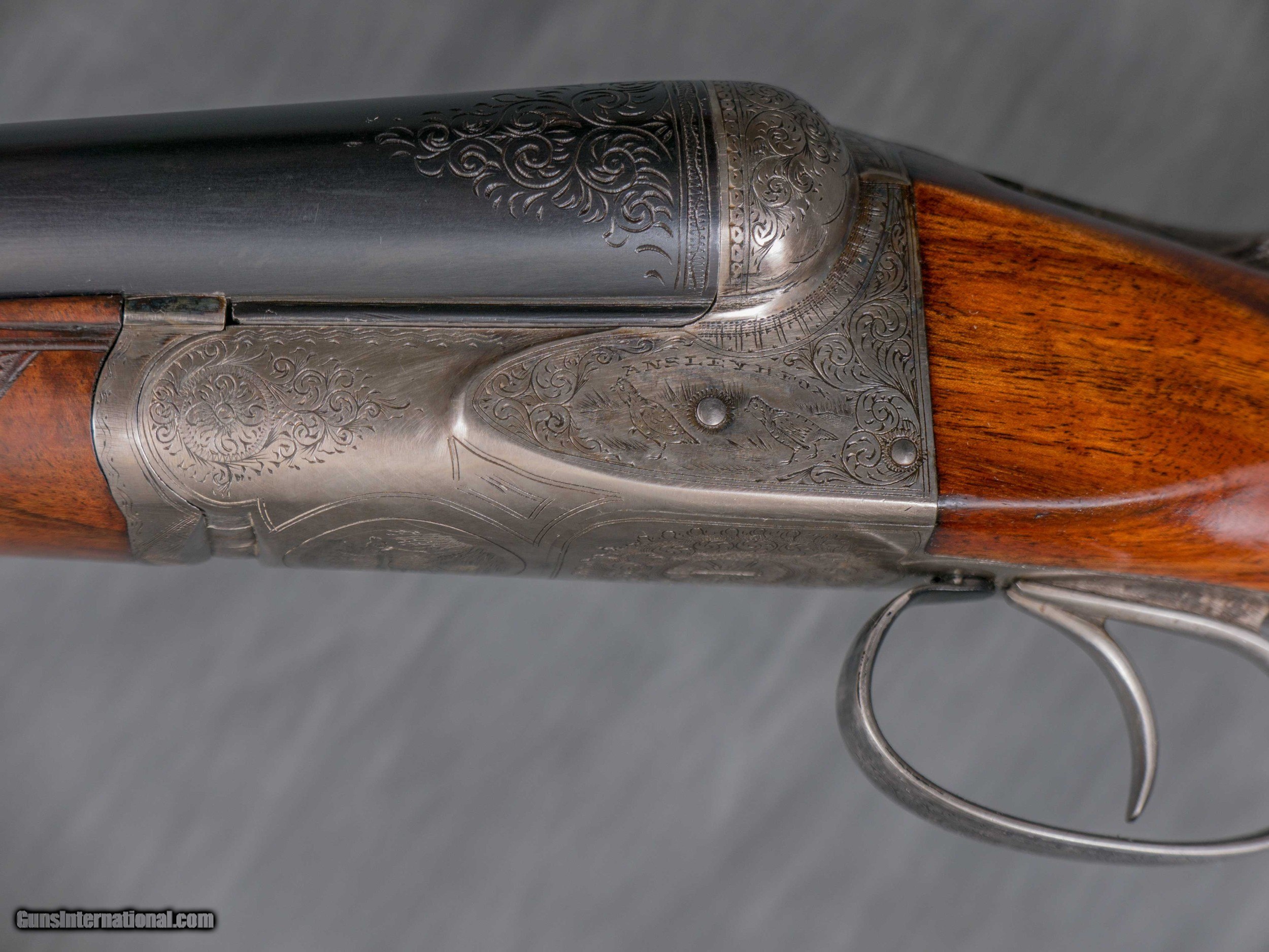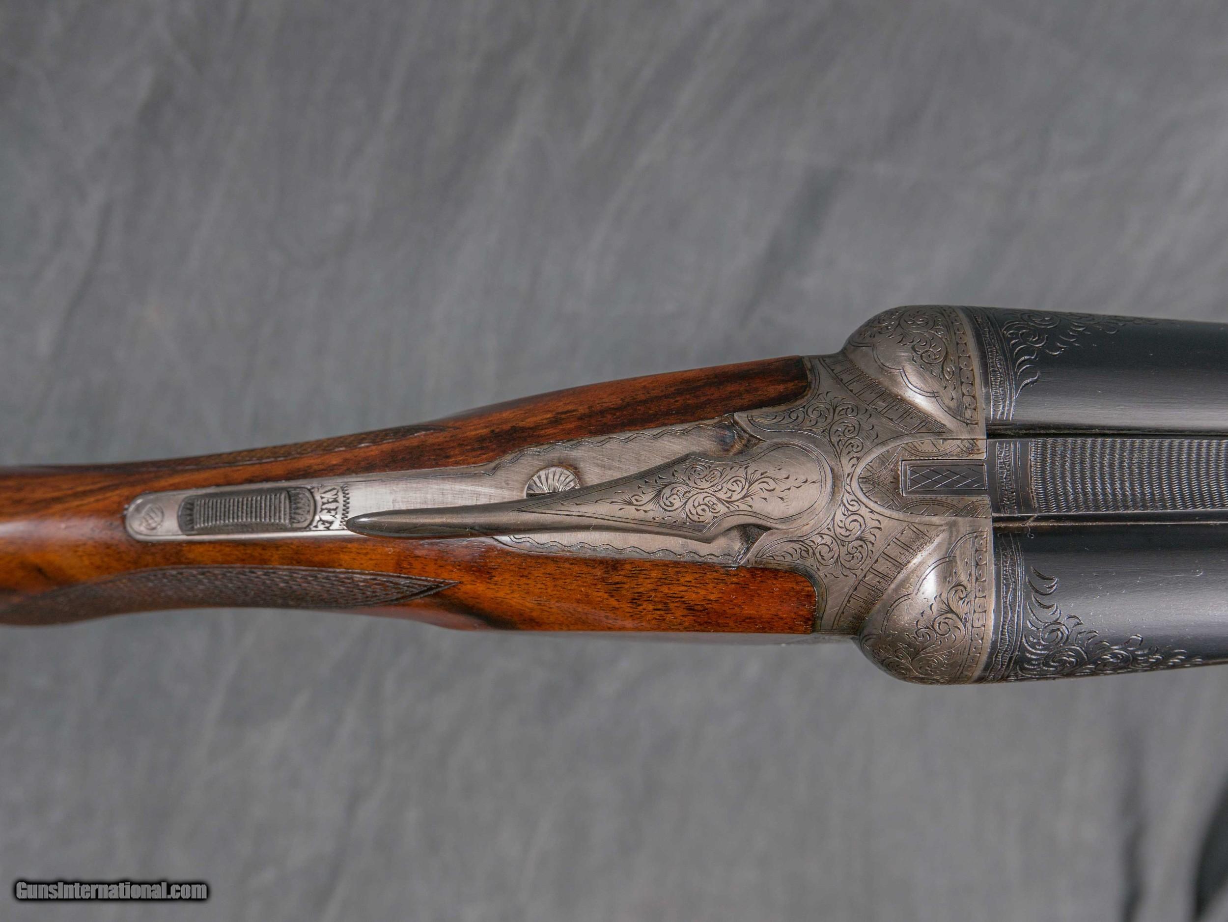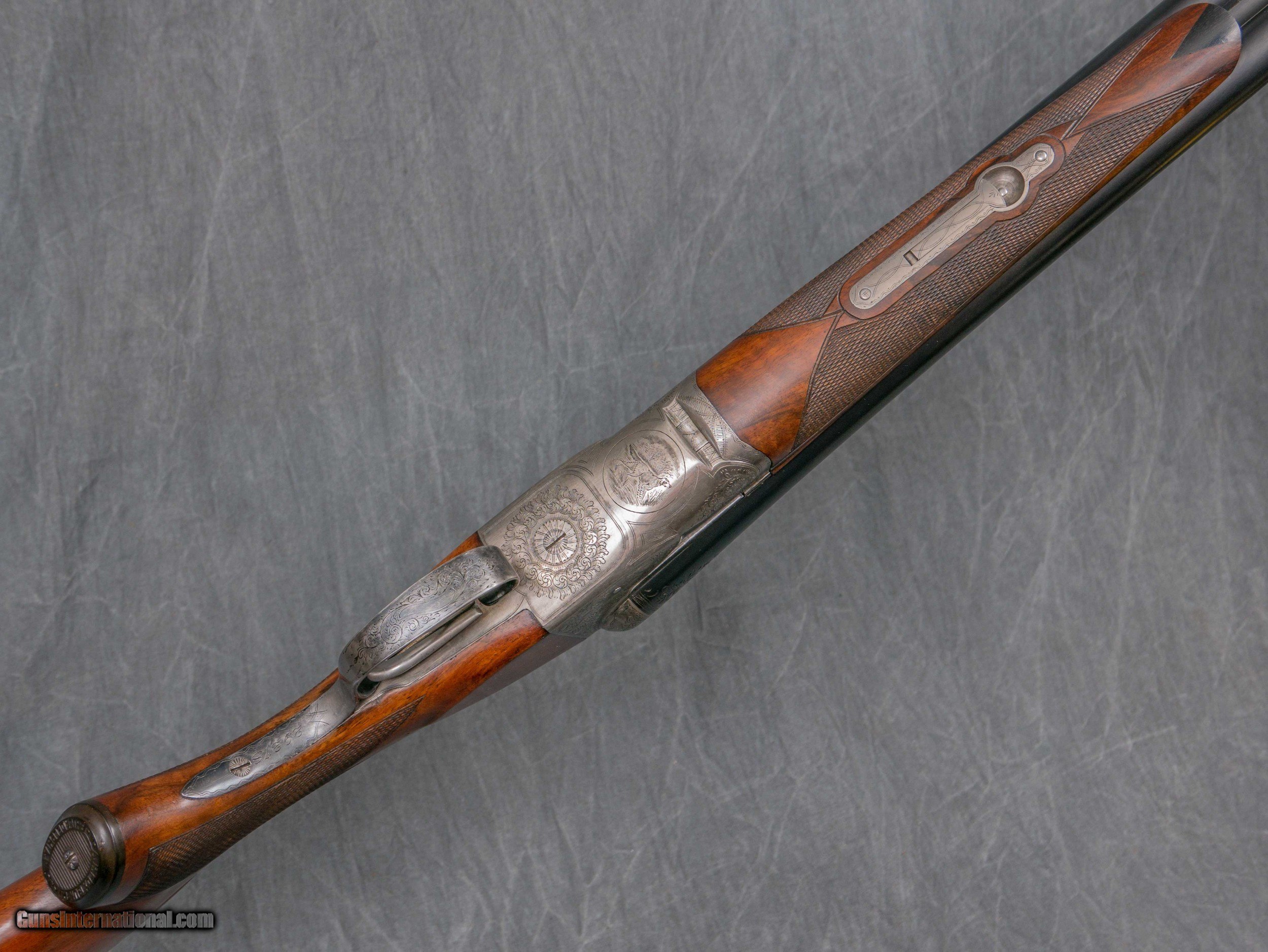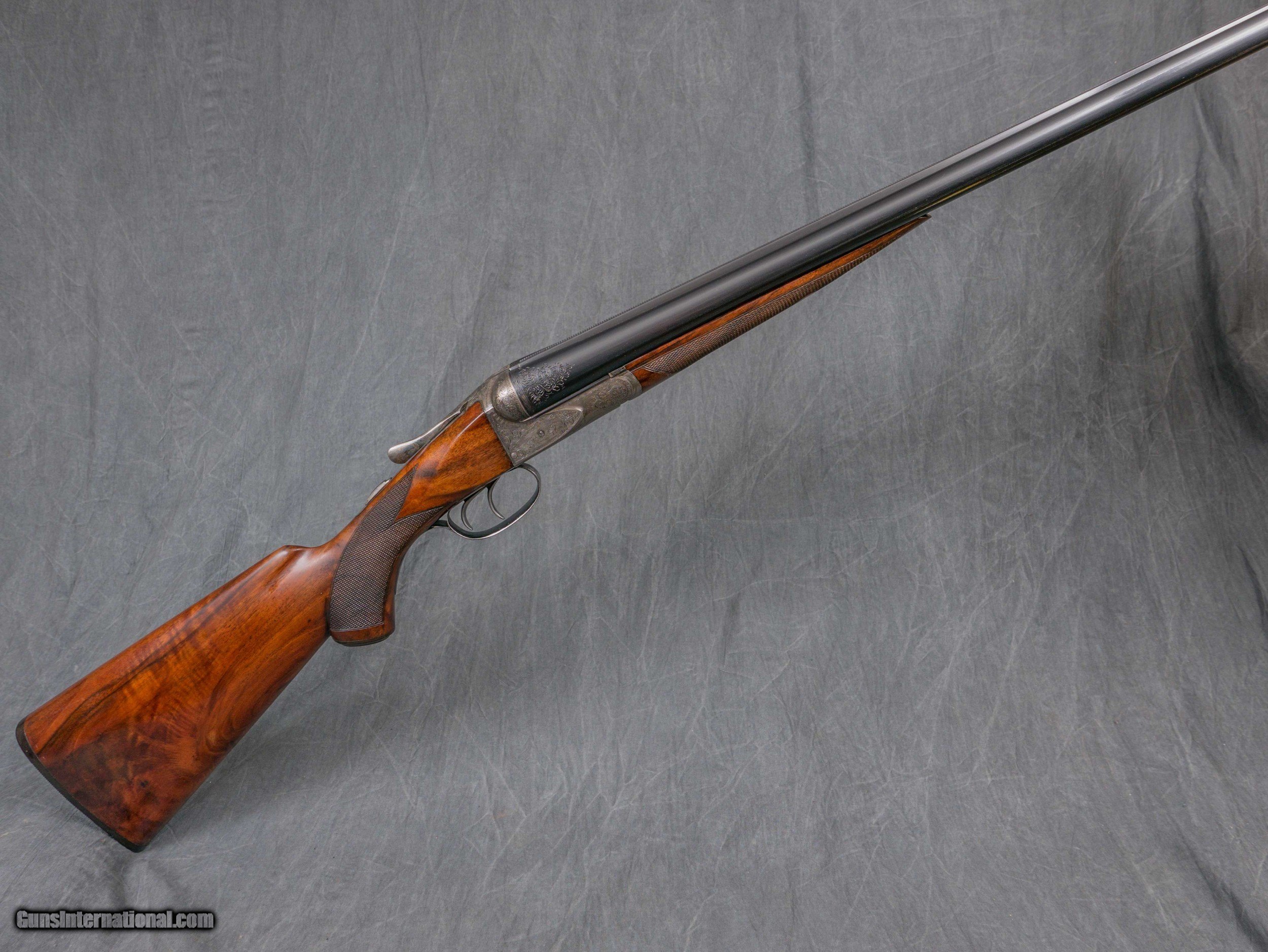 Description: A.H. FOX CE Grade 12 gauge SxS, Game scene engraved color case hardened action, 28" bbls. w/ 2 5/8" chambers, Matted concave rib, Chokes: Right .728 / .020 / M & Left .731 / .044 / F, Double triggers, Automatic ejectors, Automatic safety, Well-figured capped semi-pistol grip stock w/ original butt plate, Ebony-tipped splinter forearm, Stock Dimensions: DC: 1 9/16" x DH: 2 11/16" x Cast: 1/8" OFF at Heel x LOP: 14", Weight: 7 lb., Condition: Excellent, 100% original, Made in Philadelphia, PA circa 1924, Serial #29278 (C8090) FIELDSPORT: $7995. SOLD |