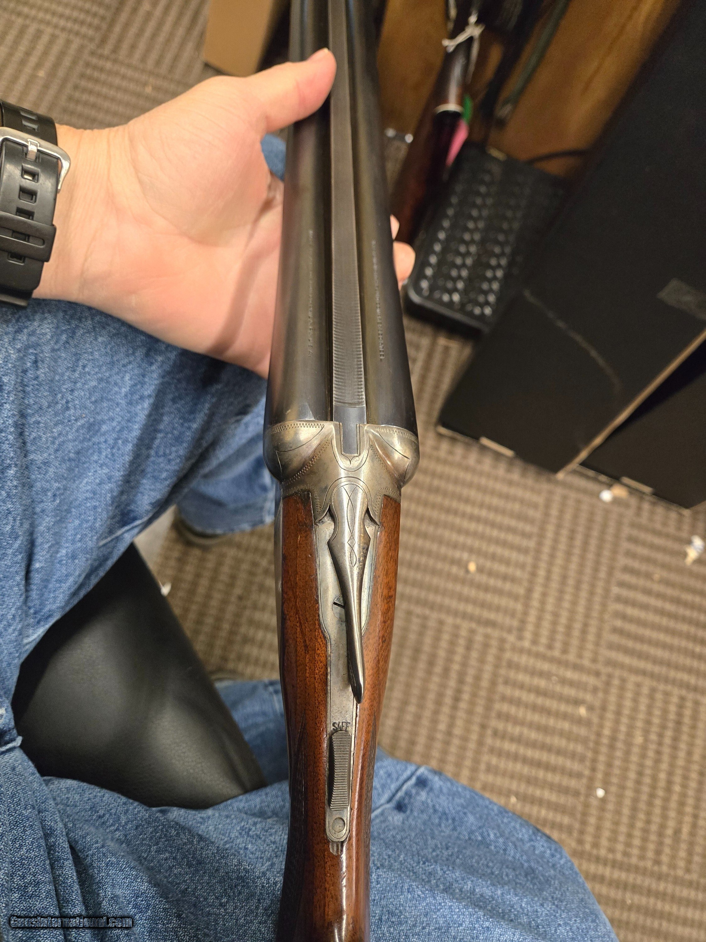 Description: CONSIGNMENT USED GOOD CONDITION AH FOX STERLINGWORTH SXS 12 GAUGE -- 30" BARRELS M/F -- WALNUT STOCK PHILLY GUN MADE AND SHIPPED EARLY 1930 -- BORES ARE NICE & BRIGHT 14 1/8" LOP **** PRICE SET BY OWNER ****** ****PLEASE CALL IN THE WITH THE SELLER’S INVENTORY NUMBER IF INQUIRING ABOUT A FIREARM****** WE DO NOT SHIP FIREARMS AND/OR FIREARMS’ PARTS OUT OF THE 50 UNITED STATES, SO DON’T ASK—YOU NEED TO KNOW IF FIREARM IS LEGAL FOR YOUR STATE PRICE REFLECTS PAYMENT BY MONEY ORDER / CASHIERS CHECK. A 3% PREMIUM IS ADDED FOR CREDIT CARDS. WE DO ACCEPT PERSONAL OR BUSINESS CHECKS, BUT THERE IS A GRACE PERIOD OF 10 BUSINESSS DAYS ON THEM. Shipping is $60 for handguns and $50 for long guns. Shipping to Alaska and Hawaii will be more based on the weight of firearm. WE DO OFFER LAYAWAY PLANS FOR 30,60, OR 90 DAYS.NOT ON CONSIGNMENT GUNS THERE IS A $5.00 CHARGE FOR EVERY 30 DAYS ITEM IS ON LAYAWAY. WE ALSO REQUIRE A 20% DOWN PAYMENT ON TOTAL OF LAYAWAY SALE. LAYAWAYS ARE NON- REFUNDABLE. HERE IS HOW THIS PROCESS WORKS. YOU WOULD CALL US AT 540-337-9218 WITH LISTER # TO PURCHASE THE GUN. THEN ONCE I HAVE RECEIVED PAYMENT AND AN FFL (FEDERAL FIREARMS LICENSE) FROM A LICENSED DEALER IN YOUR AREA OF YOUR CHOICE. WE WILL THEN SHIP THE GUN TO THEM. YOU WOULD THEN PICK UP THE GUN AT YOUR LOCAL DEALER AND DO PAPERWORK THERE. Please have your FFL Dealers contact information when you call. DOMINION OUTDOORS 15 ANGELA COURT FISHERSVILLE, VA 22939 540-337-9218 540-337-2422 fax M – F 9 a.m. to 6 p.m. ETZ Sat 9 a.m. to 4 p.m. ETZ ****PLEASE CALL IN THE WITH THE SELLER’S INVENTORY NUMBER**** ***PLANO HARD CASES AVAIABLE FOR PURCHASE $25.00 WITH THE PURCHASE OF A FIREARM** *** Online prices compared to in store prices will vary. *** Price: $1,499.99 Contact Seller |
