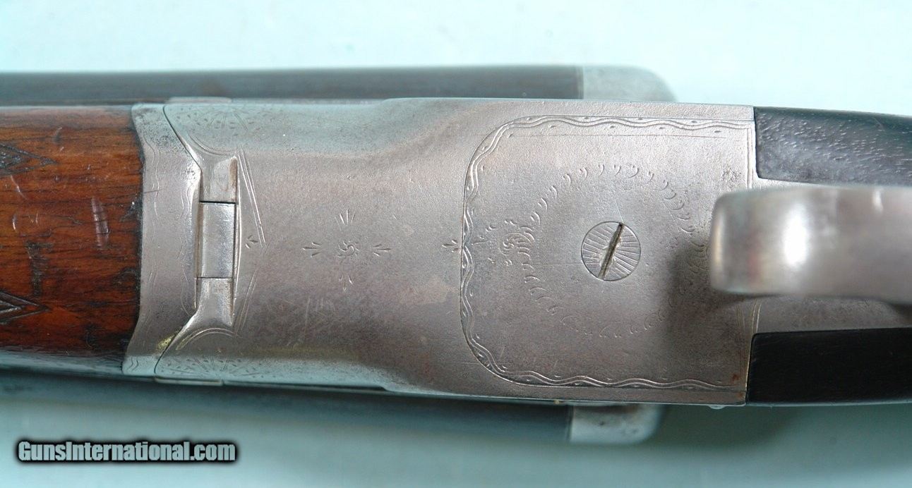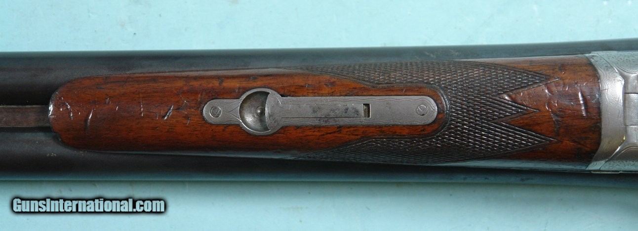 Description: 33048- ANSLEY H. FOX, PHILADELPHIA A GRADE 12 GAUGE SIDE X SIDE 30” SHOTGUN W/EXTRA MATCHING SET OF 26” BARRELS NUMBERED TO GUN. MFG. 1908. Both sets of barrels (Krupp) with 2 ¾” chambers. 30” set choked Modified and Modified. 26” set choked Improved Cylinder and Modified. Double triggers, auto safety and extractors. Frame engraved on both sides “ANSLEY H. FOX”. Serial in the 8xxx range and matching. Original wood with semi-pistol grip checkered butt stock with hard rubber original butt plate. 1 ½”, 2 ¾” drop. 14” pull. Very good overall with moderate wear. Frame medium grey patina. Barrels with approximately 90% blue. Excellent bores. Tight working order. Priced reasonably and it still has a lot of shooting left in it. $1450. Curio/Relic: Yes Shotgun Gauge: 12 Gauge Price: $1,450.00 Contact Seller |