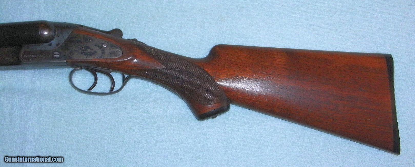 Description: Baker 12 Gauge Batavia Leader. Ca: 1919~1929. Serial Nr. 7723F. 26 in. barrel. No dents or scrapes on the metal, Wood is excellent, without cracks or dings. Blueing on the barrels is still about 95%. Frame is case hardened. Double extractor, safety, and triggers work properly. The action locks up tight. I have not shot this gun but believe it to be completely serviceable. It is what I believe to be a field grade shotgun, in overall great condition for its age. Sold As-Is, as represented. No returns. I am selling this for a friend, and may not be able to answer detailed questions, but feel free to contact me for more information and I'll try to help. Thanks. SOLD Manufacturer: Baker Gun Company, Batavia, NY Model: Batavia Leader Serial Number: 7723F Bore: 12 Gauge Chambers: 2 Ejectors: Double Condition: Very Good Metal Condition: Excellent Wood Condition: Excellent Bore Condition: Minor pitting both chambers Barrel Type: Double Triggers: Double Gauge Info: 12 Gauge Stock: Walnut |