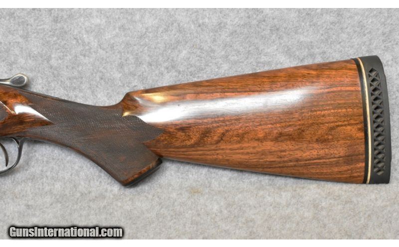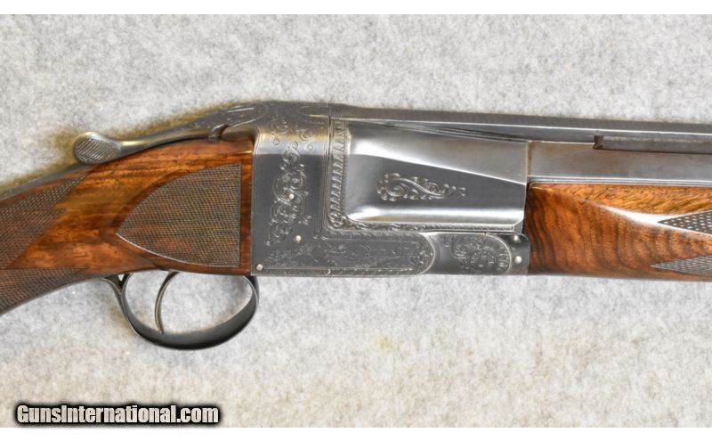 Description: Has a St. Louis gun club medalion on the fore end. SOLD Caliber Info: 12 Ga. Chambers: 2 3/4 inch Metal Condition: very good condition, some wear around the receiver Wood Condition: excellent condition, a few dings Bore Condition: bright and shiny Barrels: 32 inch vent rib Triggers: single, smooth trigger Stock: checkered walnut pistol grip with 24 lines per inch checkering Stock Dimensions: 14 inch lop, 7 3/4 inch drop, neutral cast Fore End: 24 lines per ingh checkered walnut Butt Pad: Pachmaur brand recoil pad Weight: 7 lbs 12 oz Sights: dual beads Chokes: fixed, between Imp. Mod and full Extras: none, no box or case Item Location: Kansas City, KS |