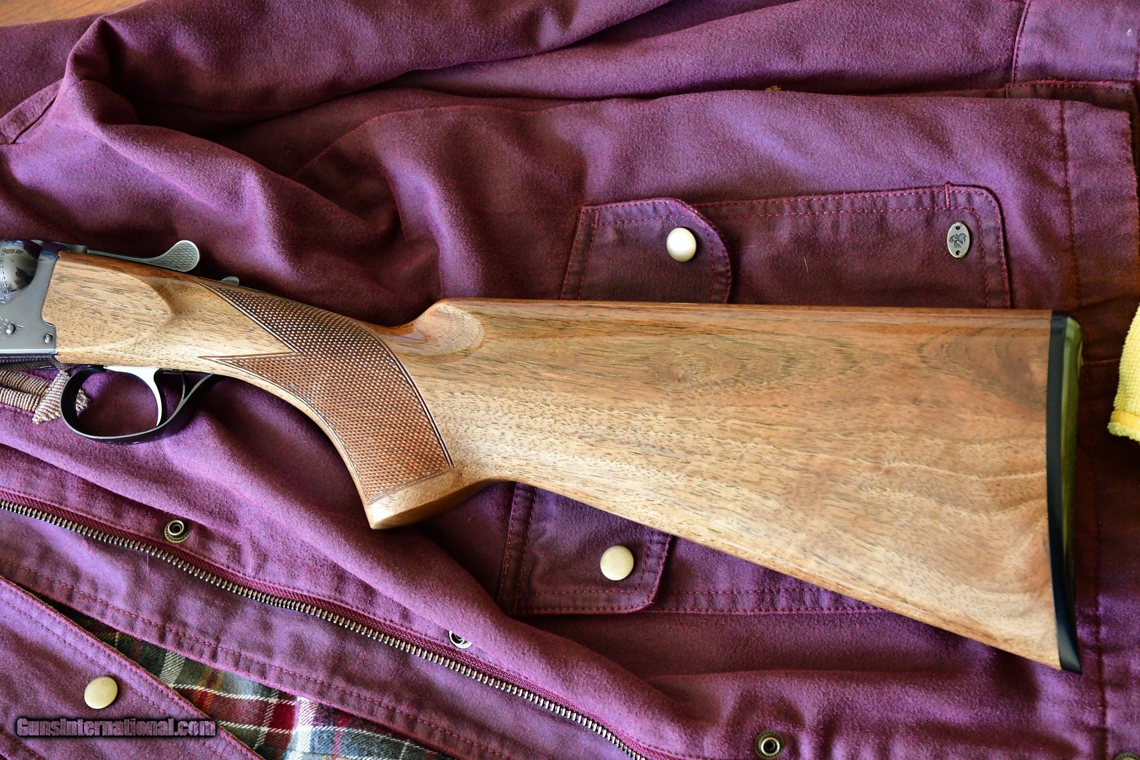 Description: 20ga BSS, 28" bbls, 2 3/4 & 3" chambered, single non-selective trigger, pistol grip, BTFE. 100% blue, 98% stock finish. Choked */** (Full/Mod) as marked, very light handling marks in stock, no bluing wear or marks except under the safety on the tang. There is a fiber optic front sight that replaced the original factory brass bead and a white mid bead that I believe was added. The stock is 14 1/4" LOP, 1 1/2" DAC, 2 7/16" DAH to the original Browning buttplate. It's about as near to new as I have seen for a BSS from about 45+ years ago now. The serial number indicates pre-75 manufacture. I purchased the gun second hand and shot several rounds of sporting clays with it. The gun is still tight to open. 3 day inspection, on your shipping cost. Returns for misrepresentation of condition. SOLD Shotgun Gauge: 20 Gauge Manufacturer: Browning Model: BSS Barrel Length: 28 Chambers: 3 Ejectors: yes Condition: 99.8% Metal Condition: 100% Wood Condition: 98% Bore Condition: smooth shiney Action: sxs Triggers: single non select Stock: pistol grip btfe |