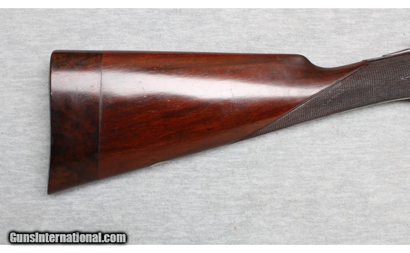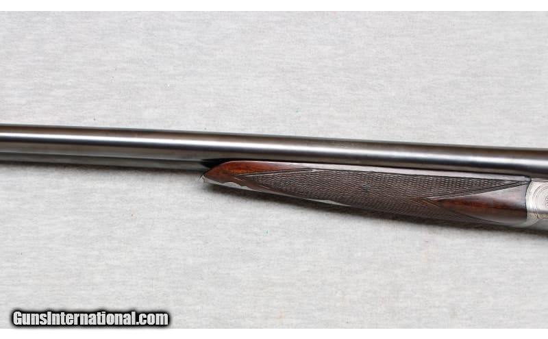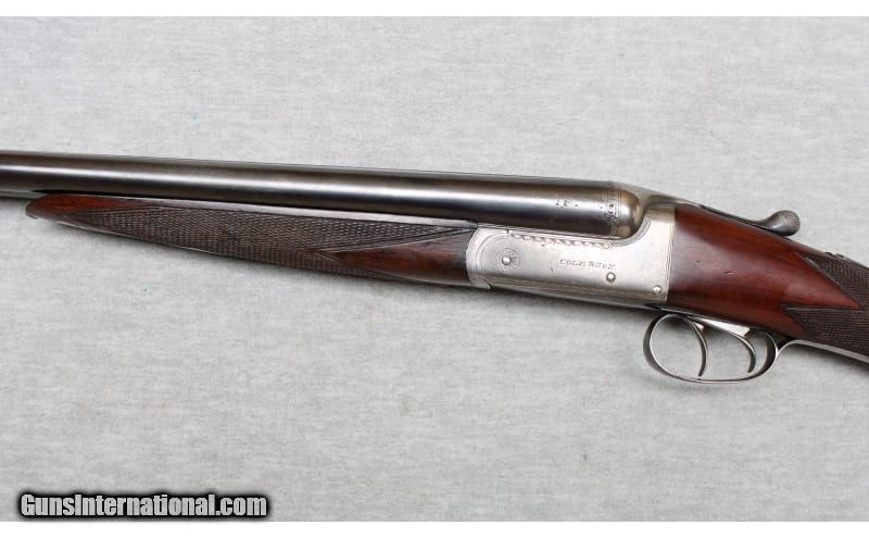 Description: Cole and Son boxlock double barrel Shotgun in 28 gauge. Factory engraved english Side By Side shotgun. The blued 28 inch barrel has a solid rib with a single silver bead. The engraved action is case-hardened. The walnut straight grip stock is finely checkered. The LOP is 13 3/8". Chambers proofed at 2 1/2" with extractor. The bore Condition is Good - Some light pitting or frosted appearance. 28 Gauge SOLD Chambers: 2 1/2 Inches Metal Condition: Very good. It appear to refinished. Wood Condition: Very good Bore Condition: Good - Some light pitting or frosted appearance Barrels: 28 Inches Triggers: Double triggers Stock Dimensions: LOP 13 3/8 Inches Fore End: Checkered walnut Butt Pad: Checkered walnut Sights: Single silver bead on solid rib Chokes: Improved Cylinder/Modified Item Location: La Vista, NE |