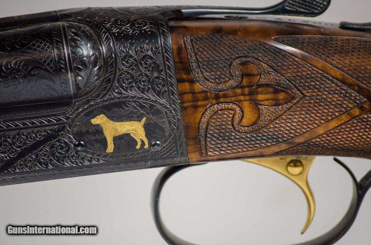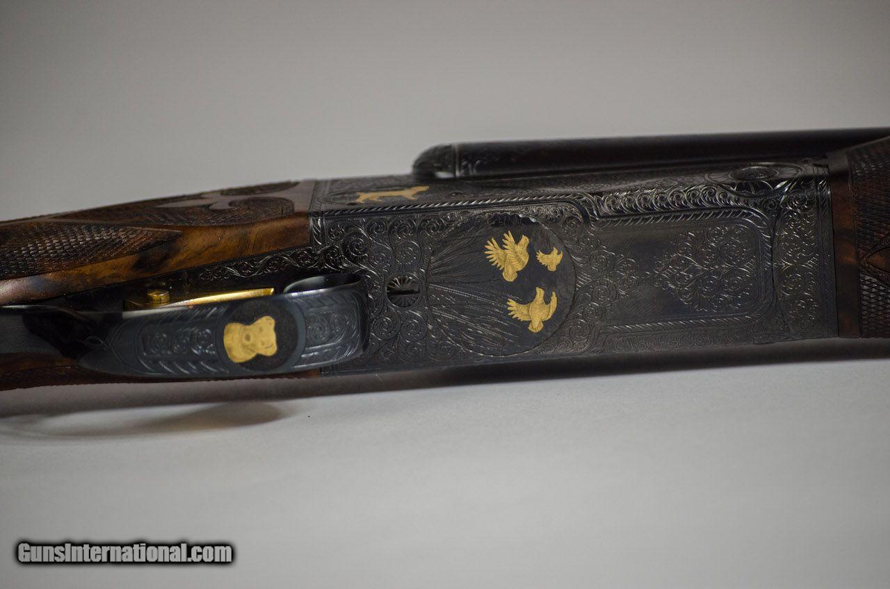 Description: This pre-owned, never fired, custom Galazan Model 21 Grand American Custom is a 6 barrel sub gauge set with 32 inch and 30 inch each barrels in each 20, 28 and 410. Receiver features 6 gold inlays, comes with 2 Huey cases and is Briley choked. SOLD |