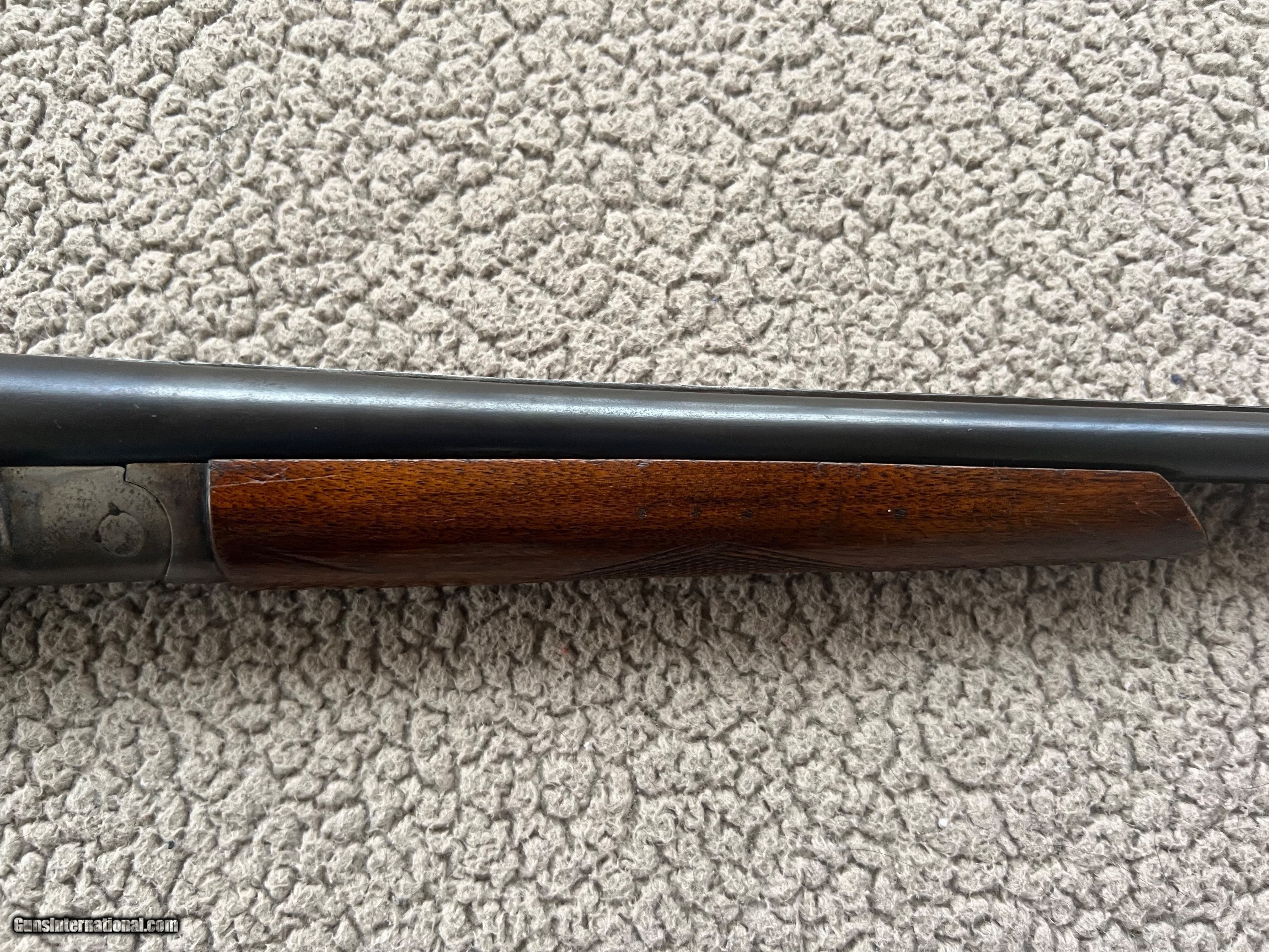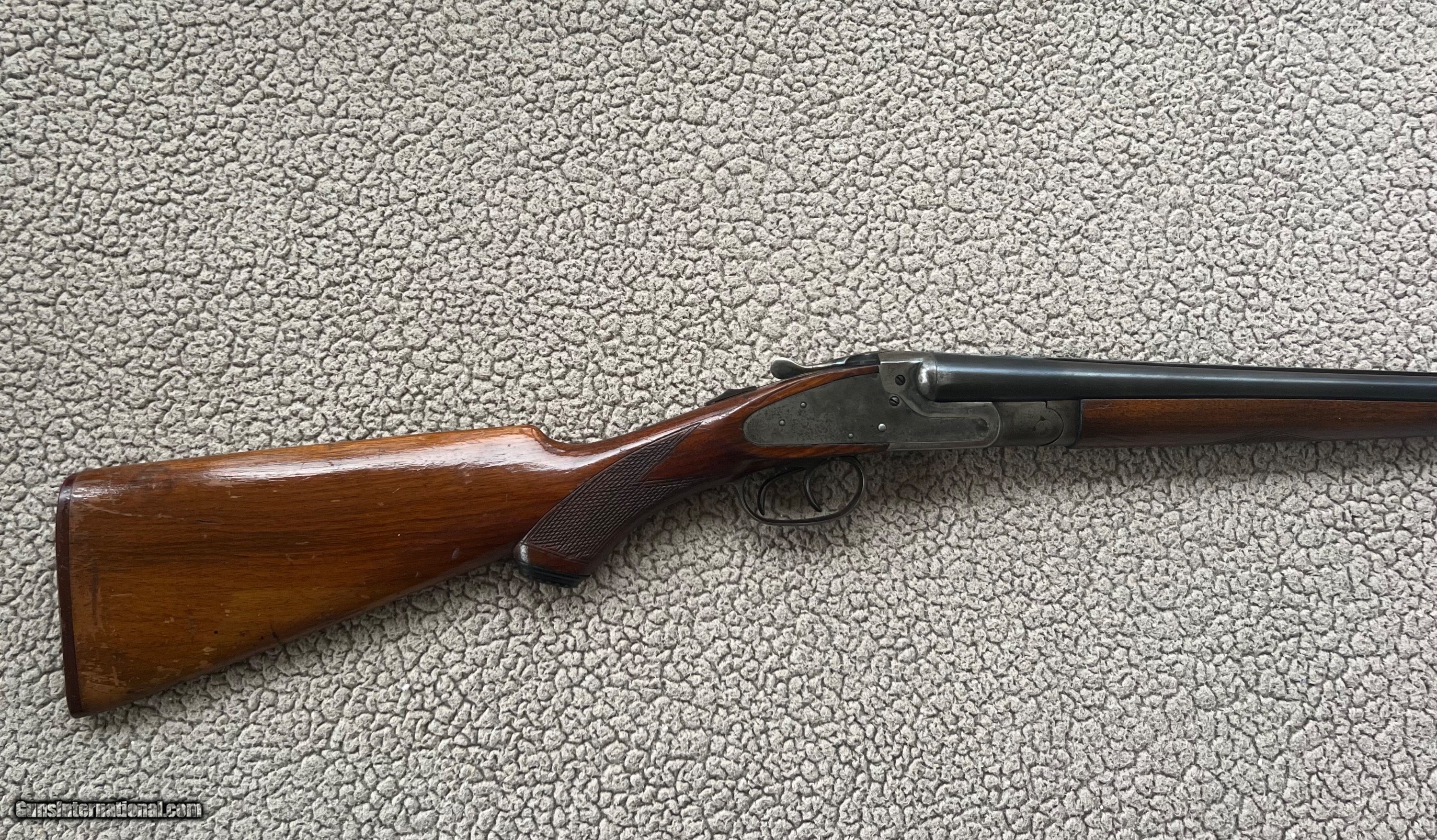 Description: Crescent Arms .410 SXS. 26" barrel choked Cyl and IC. Bores are good with no pittting. 14" LOP to the front trigger. Numbers all match. Retains a lot of the original case hardening. Bluing is good overall with the normal wear from use. The wood has use and handling marks as seen in the pics. It appears to have a small crack on the right side of the forend. Can't really tell for sure and didn't want to mess with it. Nice example of a older American SXS. $60 shipping. SOLD Manufacturer: Crescent Model: SXS Condition: Good Barrels: 26” Action: SXS Triggers: Double |