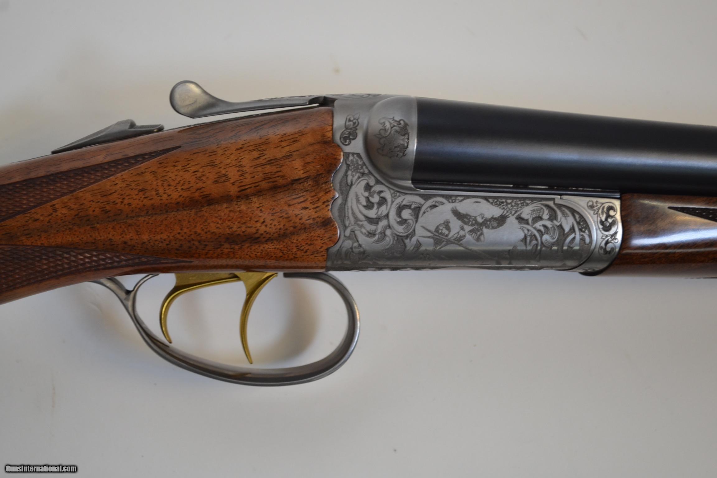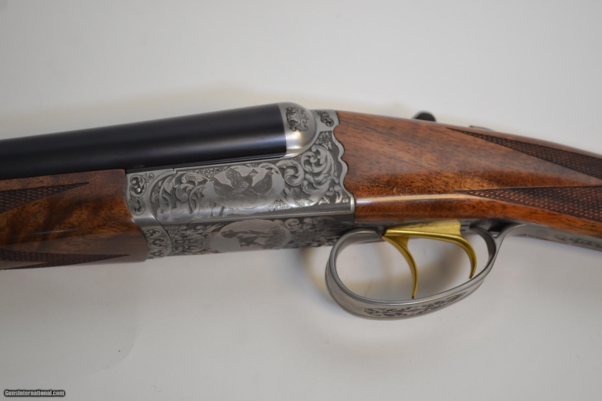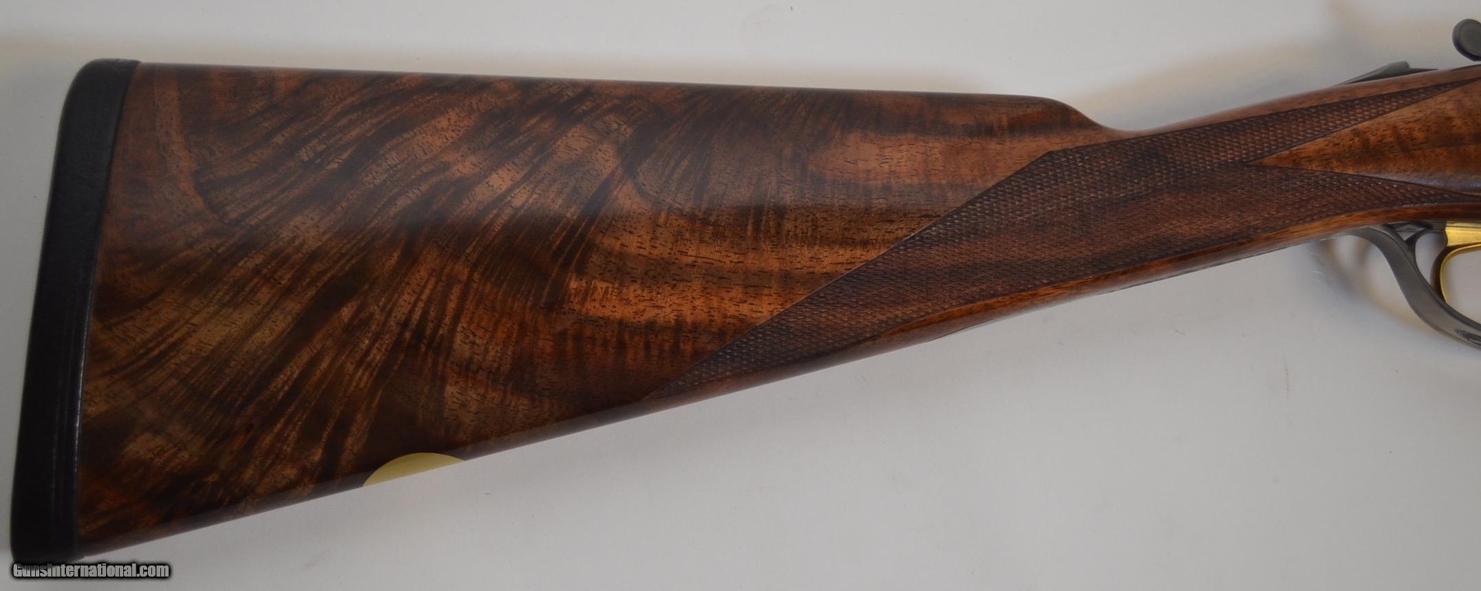 Description: CSMC Christian Hunter 20ga., 30” barrels with Choke Tubes and a detachable floor plate. straight grip, gold oval, splinter forend, coin finish. Magnificently executed miniature Scroll engraving that has bulino details that puts it at the highest level of our intricate Rose & Scroll pattern. Mind blowing piece of Exhibition American Walnut. Double Trigger, vent rib, Auto Ejector, 2 ¾” chamber. This gun comes with a lifetime warranty. Based on the true Anson & Deeley system without any modern methods. This is a true high grade, handmade shotgun. Inv# 37155 14 5/8” X 1 1/4” X 2” Price: $16,500.00 SOLD |