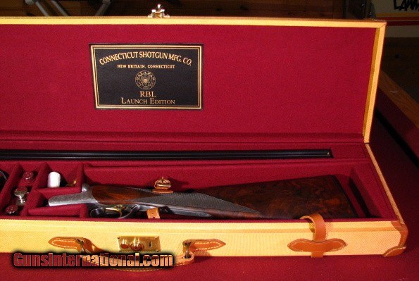 Description: Connecticut Shotgun Manufacturing Company 20 Gauge RBL Launch Edition cased with all accessories. 28" barrels with five flush mount chokes and choke wrench. French Silver engraved receiver. Gold washed single selective trigger. Automatic safety. Stocked in a gorgeous piece of 3X walnut. 14 5/8" LOP over a hard buttplate. DAC-1 1/2" DAH-2 1/8" 6lb 4oz Neutral cast. Straight grip and splinter forend. The whole cased in it's factory case with all accessories to include manual, snap caps, oil bottle, two piece cleaning rod, mop, brush, shooting glasses, and ear plugs. Not new but shot very little and remains at 99% SOLD |