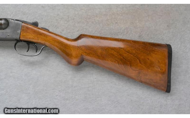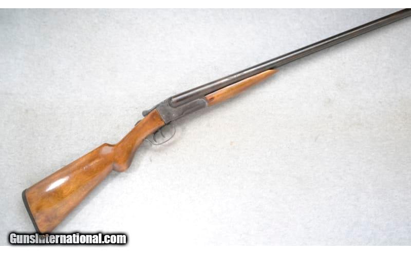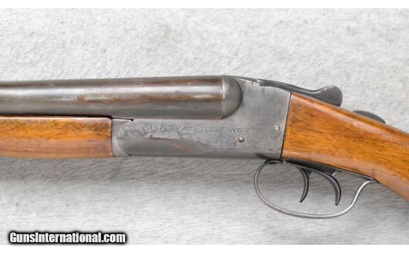 Description: This Eastern Arms Company Model Side by Side is a shotgun that comes in 16 Ga. It has 30 inch barrels with extractors and a solid rib. A brass bead front sight. With 2 3/4 inch chambers it has fixed Cyl. and Mod. chokes. Double triggers. The butt stock is a smooth grip walnut round knob pistol grip. The forearm is a smooth grip splinter. 16 Gauge SOLD Chambers: 2 3/4 inch. Metal Condition: "Fair. Shows age, use and wear. Some minor rust spots. Wood Condition: Good. Some handling marks. Appears to have been refinished. Bore Condition: Shiny Barrels: 30 inch barrels with extractors and a solid rib. Triggers: Double Stock Dimensions: LOP 14 inches. Fore End: Smooth grip walnut splinter. Butt Pad: Checkered black plate. Weight: 8 Lb. 0 Oz. Sights: Brass bead front. Chokes: Fixed Cyl. and Mod. Item Location: Richfield, WI |