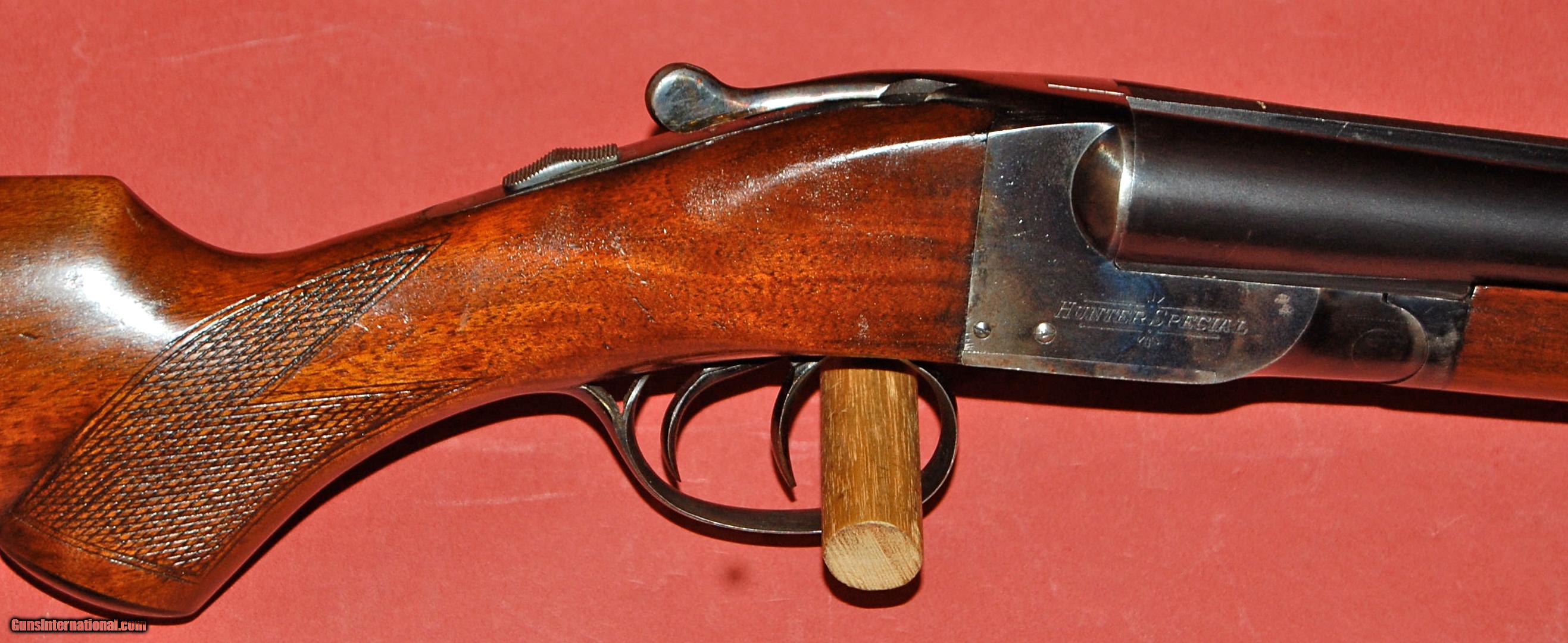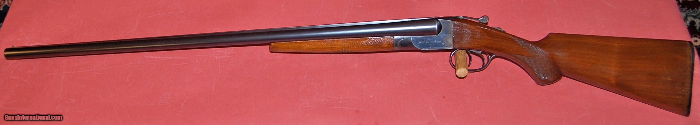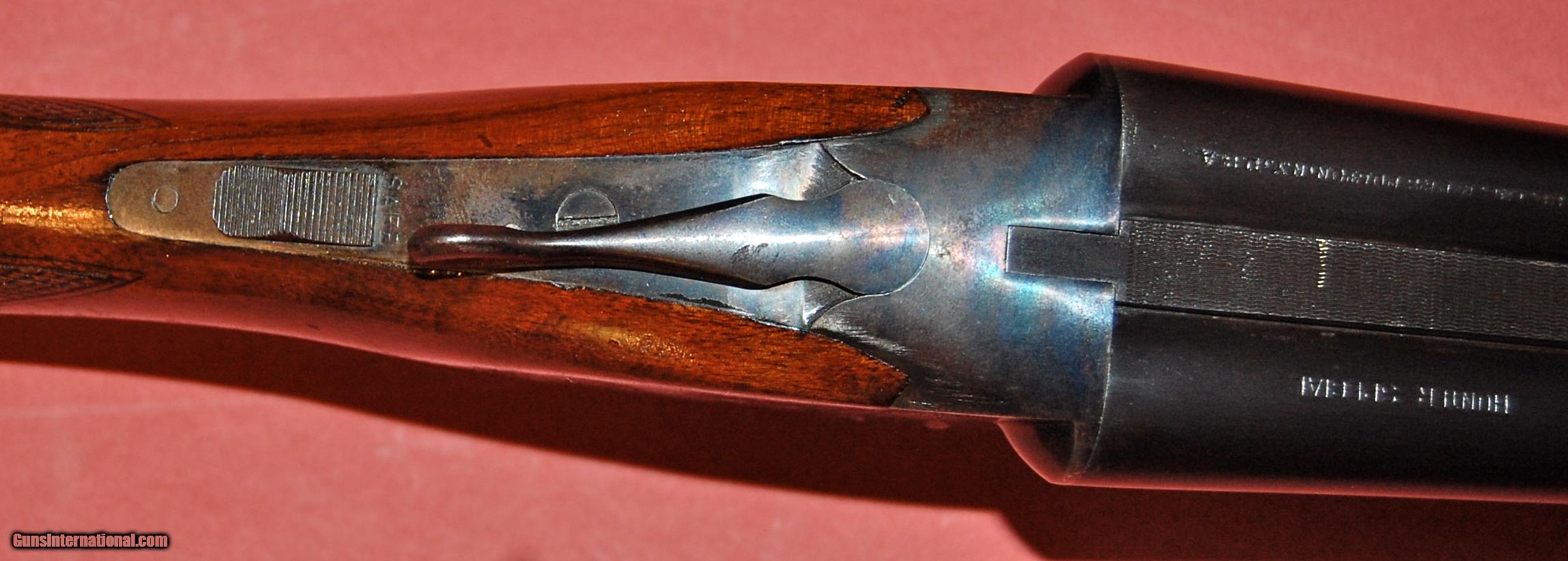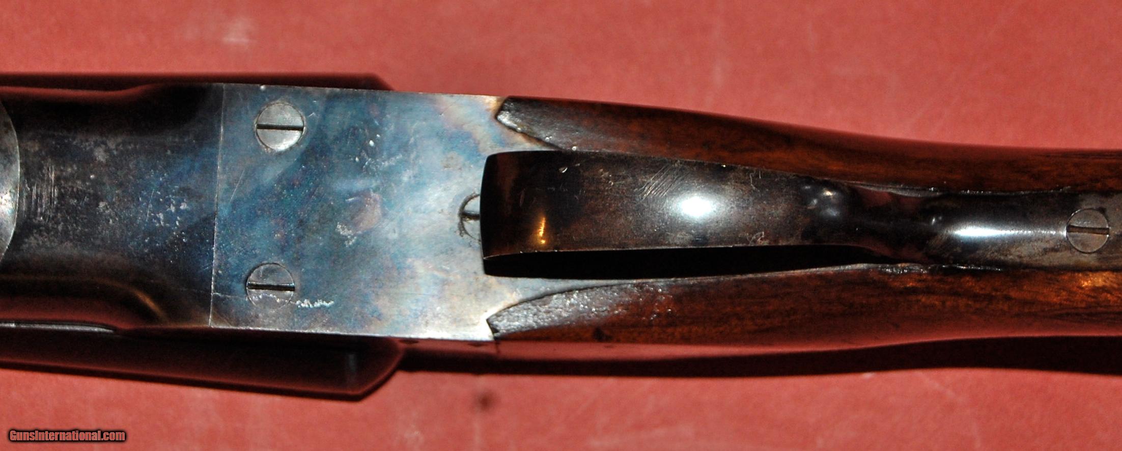 Description: 16 gauge Fulton Special built by Hunter Arms,the company that built the L.C.Smith guns.This gun appears to be unfired,retianing 100% of the original case colors,100% of the original barrel blue,and wood finish.It show no signs of ever having been fired.There are no primer marks on the standing breech,no powder residue anywhere on the gun.It has 28"barrel choked modified (.023") and full (.035").The chambers are the original 29/16" length.The gun has double triggers,extractors,a semi pistol grip stock,and a splinter forend.It is the finest example of a Fulton Special I have ever owned.C&R eligible. SOLD Curio/Relic: Yes Manufacturer: Hunter Arms Model: Fulton Serial Number: 186627 Bore: excellent Chambers: 29/16 Ejectors: extractors Wood Condition: excellent Bore Condition: excellent Triggers: Double Gauge Info: 16ga Choke Left: full (.035") Choke Right: modified (.023") |