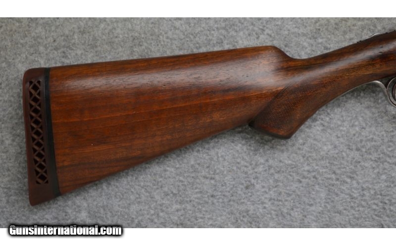 Description: Good condition overall for its vintage. Butt Stock and Fore Arm have been refinished. SOLD Curio/Relic: Yes Manufacturer: Circa: 1898 Caliber Info: 12 Gauge Chambers: 2 3/4 Metal Condition: Good Wood Condition: Good Bore Condition: Good Barrels: 30" with Tapered Rib Triggers: Double Triggers with Extractors Stock: Checkered Walnut Pistol Grip Butt Stock Stock Dimensions: DAC: 1 3/4", DAH: 3 1/4", Cast off: 1/8", LOP: 14 1/4 Fore End: Splinter Style with Ebony Insert Butt Pad: Pachmayr Ventilated Recoil Pad Weight: 7 lbs. 12 ozs. Sights: Single Bead Chokes: Fixed: Light Full & Extra Full Item Location: Hamburg, PA |
