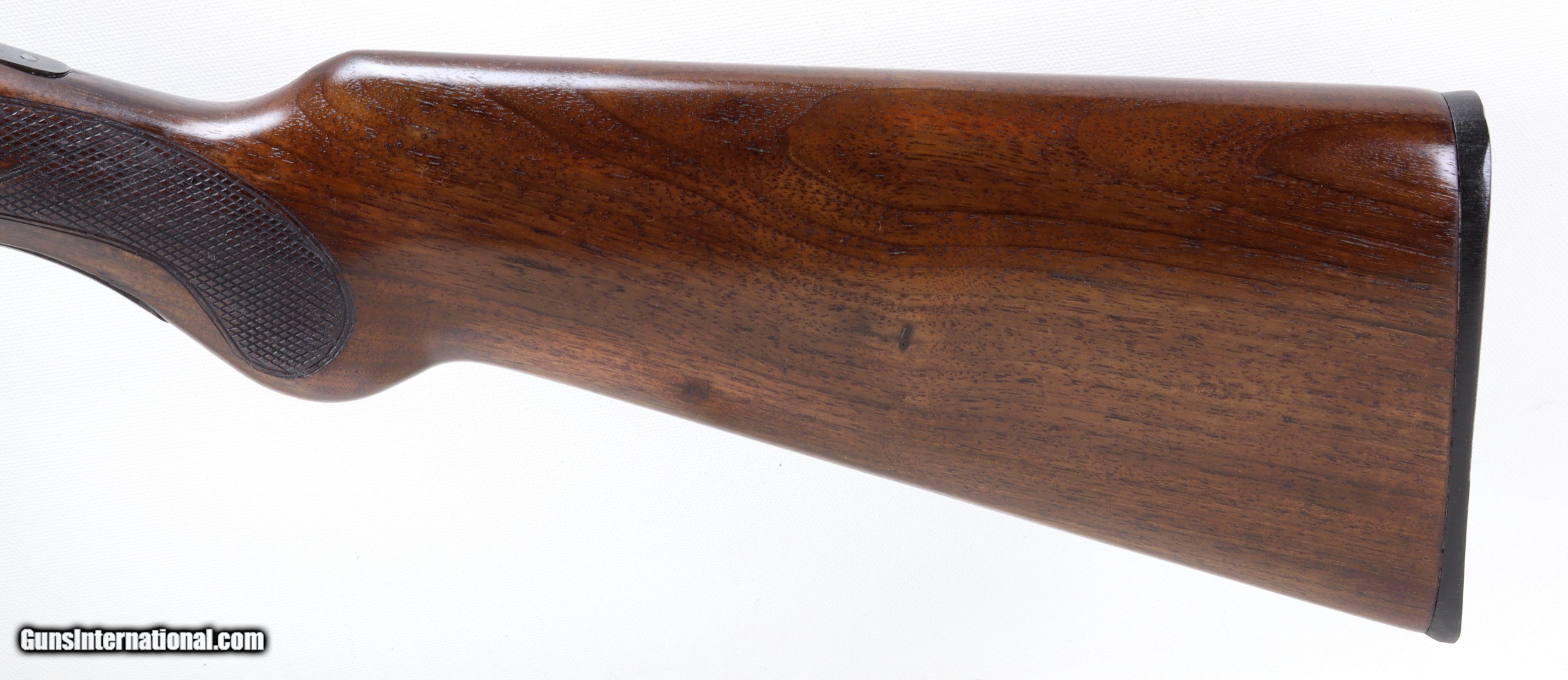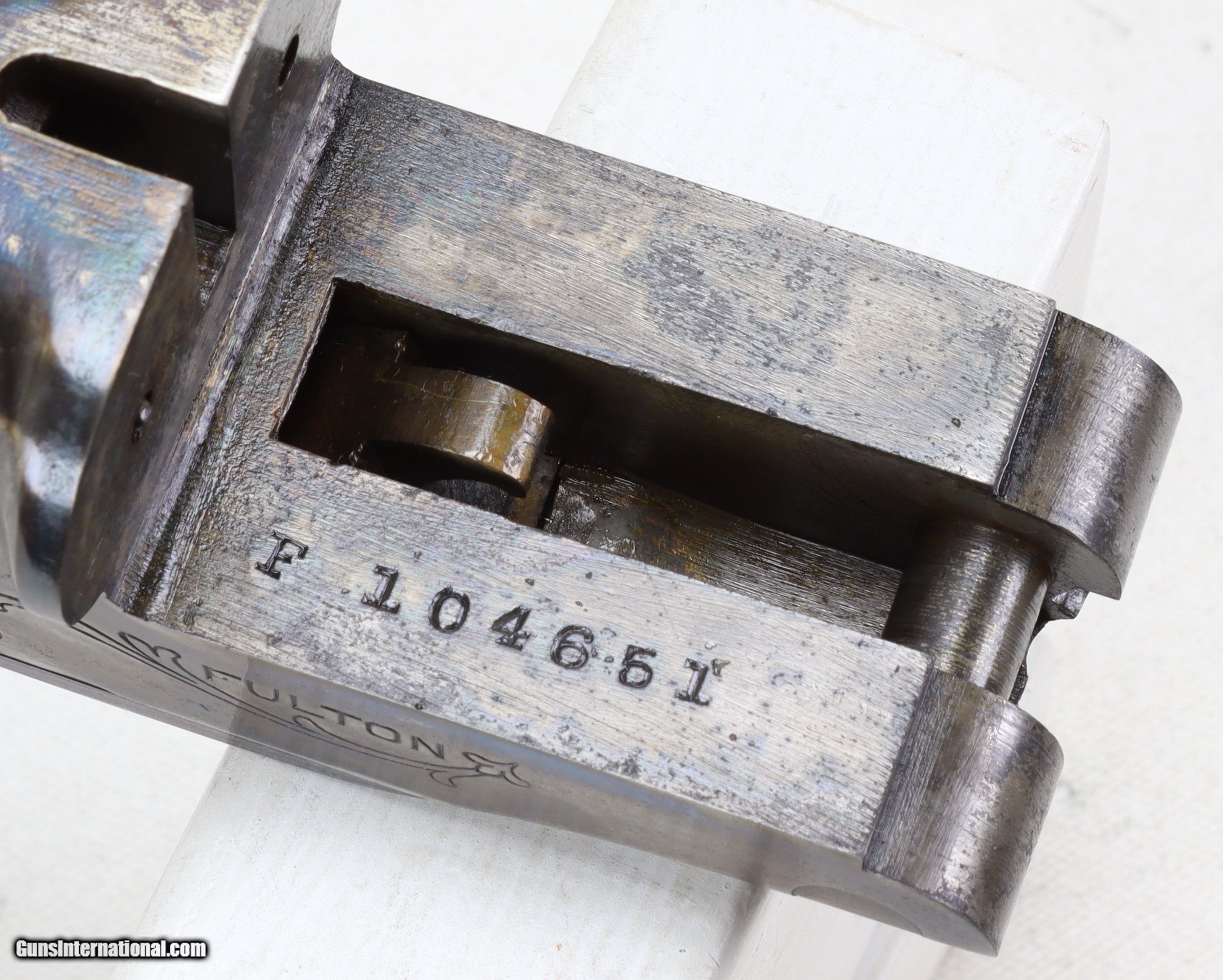 Description: Hunter Arms" The Fulton" SxS Shotgun in 20Ga. SN #F104651. Mfg. 1918-1946. DOUBLE TRIGGERS. LOP 14 1/8" & 13 1/4". Chamber 2 3/4". DAH 2 3/4". DAC 1 1/2". Chokes are L/S- Mod. and R/S- I.C. 28" Barrels with EXCELLENT Bores for their age. The Blued / Case Colored Metal and Checkered Round Knob Pistol Grip stock and Forend have been FULLY RESTORED by SHOOTER'S EXCHANGE and LOOK GREAT. Solid Rib. Case Colored Receiver and Triggers. Weight: 6.6 lbs. Trigger Pull: Front: 4 1/2 lbs. Back: > 8 lbs. *** RESTORATION BY SHOOTER'S EXCHANGE $550.00*** More photos available upon request. Ships to Lower 48 W/ Insurance $45.00. SOLD Curio/Relic: Yes Shotgun Gauge: 20 Gauge Manufacturer: Hunter Arms Model: The Fulton Serial Number: F104651 Barrel Length: 28 Chambers: 2 3/4 Condition: Excellent Metal Condition: Refinished Wood Condition: Refinished Bore Condition: Excellent LOP: 14 1/8" & 13 1/4 Finish: Blue Weight: 6.6 lbs Manufacture Date: 1918-46 |
