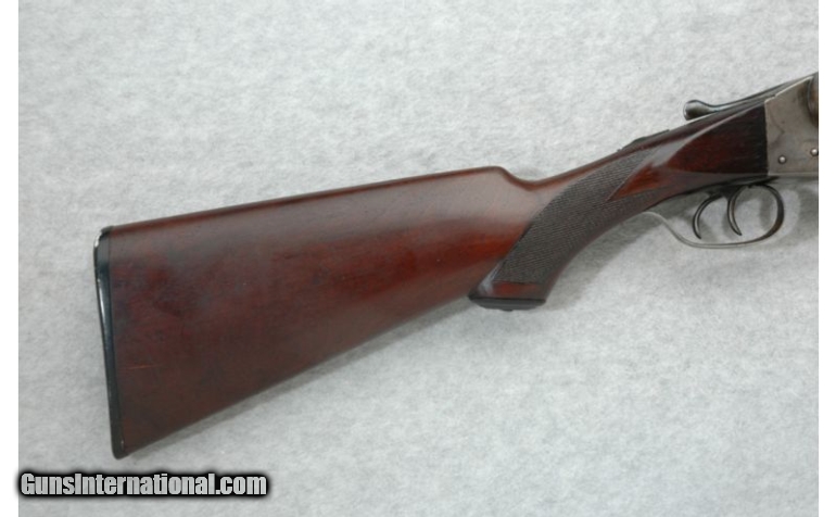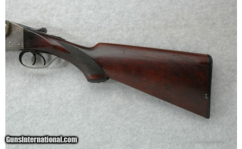 Description: SOLD Manufacturer: S/N 236223 Caliber Info: 12 GA Chambers: 2 3/4 inch Metal Condition: Shows some age, use and wear. One dent in right barrel/rib 11 inches down from the bore Wood Condition: Shows age, use and wear. Bore Condition: Shiny Barrels: 30 inch Damascus steel with a solid rib. Triggers: Double Stock: Checkered walnut pistol grip with a black cap. Border engraved receiver. Stock Dimensions: LOP 14 inches. Fore End: Checkered walnut Splinter. Butt Pad: Ithaca black plate. Weight: 8 lbs. 8 oz. Sights: Brass front bead. Chokes: Fixed Full and Modified. Item Location: Richfield, WI |