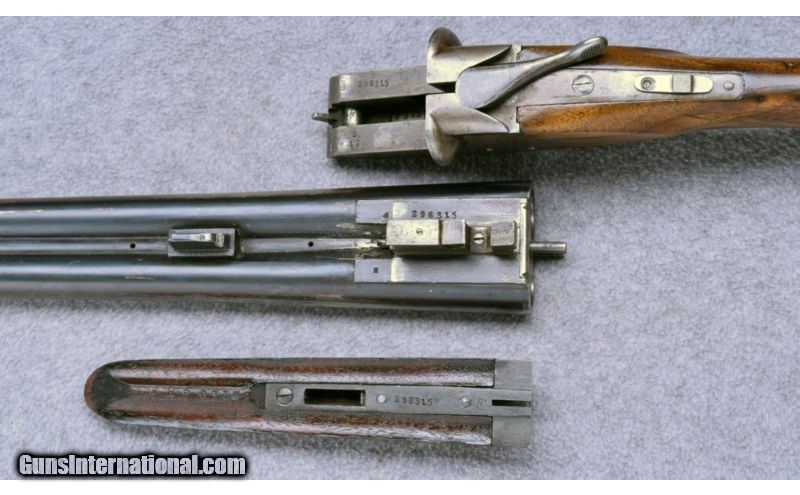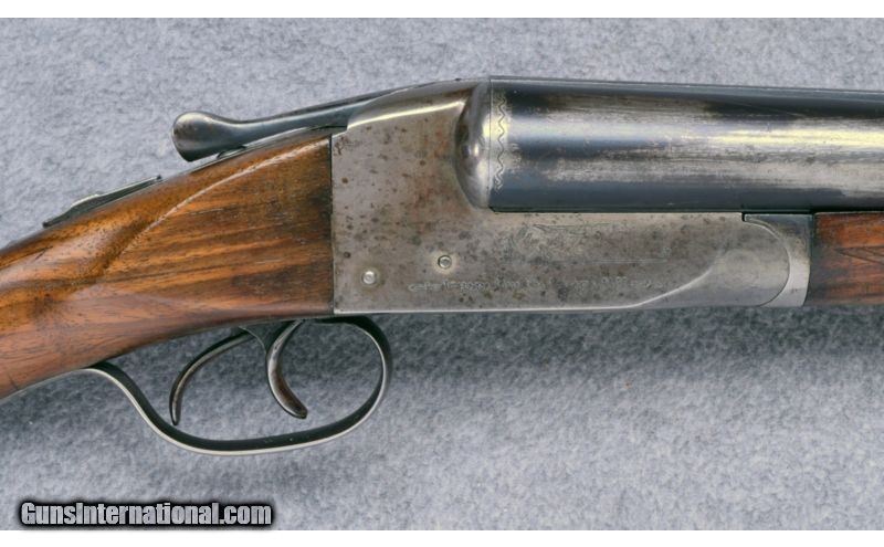 Description: Wood has been sanded with a repaired crack at the wrist. Upper tang has a non-original screw. Metal shows little remaining finish and barrels remain free of dents. Bores are bright and excellent. Lockup remains tight with a bit of looseness on the hinge. Mechanical function remains excellent. SOLD Manufacturer: S/N 296XXX Caliber Info: 12 GA Chambers: 2 3/4" with Extractors Metal Condition: Fair Wood Condition: Fair Bore Condition: Excellent Barrels: 30 Triggers: Double Stock: Checkered Walnut Pistol Grip with Black Cap Stock Dimensions: 14 1/8" LOP Fore End: Checkered Walnut Splinter Butt Pad: Black Hard Rubber Weight: 7 1/2 LB Sights: Single Brass Bead Chokes: Modified / Full (#2 - #4 Marked) Item Location: Wheeling, WV |