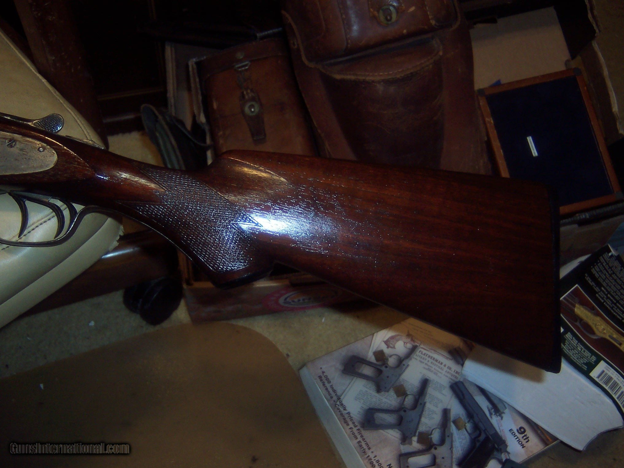 Description: 12 x 30 inch barrels fine bores // w&r steel marked barrels / marked oo and matching serial #// 50 % barrel blue ///35% weak case on locks // 90 % original stock finish // / replaced butt plate looks original holes match up but could be better matched up to stock some overhang // made 1911 and in vg original condition // stock shows very little use // tight crack in heal from buttplate 4 inches fwd hard to see cause by overscrew crack $56 sh ins // matching # 334940// 14 inch lop from front trigger / stocked for field use probably for pass shooting or long range quail or phesant hunting SOLD Curio/Relic: Yes Manufacturer: l c smith Model: grade 00 Serial Number: 334940 |