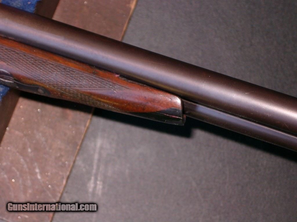 Description: SN 95167. LC Smith Featherweight, 6 pounds 8 ounces, 16 bore, extractors, 28" F/M, perfect bores, bright shiney bores, no loose ribs, no pitting, raised small dent in left barrel 10" from muzzle, (see pic) perfect mechanicals, tight on face, 14-1/8" LOP, 1-1/2" DOC, 2-1/2" DOH, really nice modern dimensions, wood is solid, it does have lots of hunting dinks and wear on wood, sliver chip on right forarm front (see pics), original varnish is worn, mostly oiled finish showing, barrels show 93% thinning original blue, case is silvered with trace grey colors, no external or internal rust or pitting. Still lots of hunt in this old gun! OUT OF MY PERSONAL COLLECTION. Buyer pays $60 USPS Priority Mail to your signed FFL. CONTACT ME VIA EMAIL ONLY AS I AM VERY HARD OF HEARING. SOLD Shotgun Gauge: 16 Gauge |