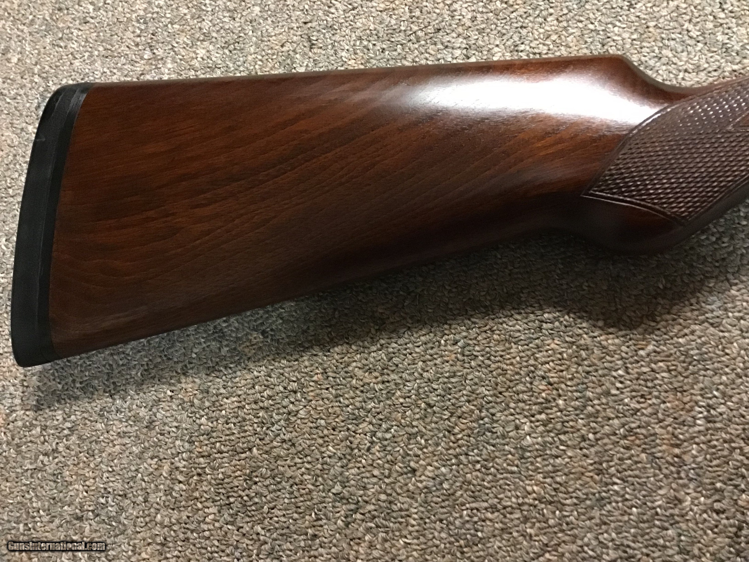 Description: Research states that these models should not be confused with actual L.C. Smith sidelock shotguns. In reality, these models are high quality, less expensive boxlocks built with quality similar to field grade L.C. Smiths. This L.C. Smith Hunter Arms Fulton .20 ga. was made in Fulton, NY between 1915 until 1945. The receiver fore end iron, trigger guard and trigger were all machined (not stamped) from forgings. These models have excellent durability and collector interest. This - The Fulton by Hunter Arms - is in mint condition, 28 in barrels and a decelerator recoil pad added. Photos tell the story. An excellent quick swinging quality shotgun showing condition and won't "break the bank". Buyer pays shipping. Price: $1,395.00 Contact Seller |