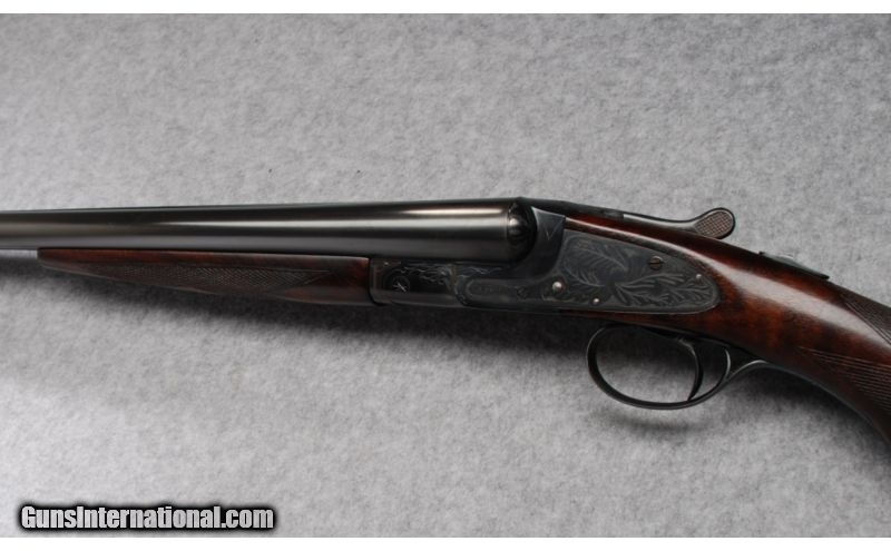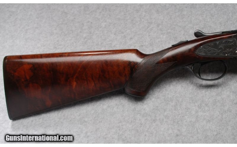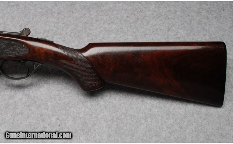 Description: A previous owner rejuvenated this fine firearm with an eye toward functionality in the field as opposed to a complete restoration to its original configuration and appearance. There is a barely perceptible looseness in the action lock-up that is magnified with the forearm removed. SOLD Curio/Relic: Yes Manufacturer: Serial number of 1631xx indicates a manufacture date of 1938 Caliber Info: 12 Gauge Chambers: 2-3/4" - Ejectors Metal Condition: Completely refinished. All metal surfaces have been blued with no original case coloring remaining on any action surfaces. The barrel ribs and lugs show evidence of being resoldered before re-bluing and do not ring true. Several light scratches in the Wood Condition: Both the forend and stock have been sanded and refinished. The checkering points are worn flat and the wood surfaces surrounding both the upper and lower tangs show evidence of removal. The lower right stock horn has a chip missing where it meets the re Bore Condition: Both bores are bright Barrels: 26" - Re-soldered and refinished Triggers: Hunter One-Trigger single selective trigger Stock: Cut-checkered walnut with Prince-of-Wales grip Fore End: Splinter-type, cut-checkered walnut Butt Pad: Serrated, black composition buttplate Weight: 7-1/4 lbs. Sights: Metal front and mid beads Chokes: Fixed chokes; Modified & Full Item Location: Garner, NC |