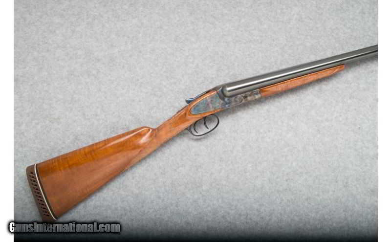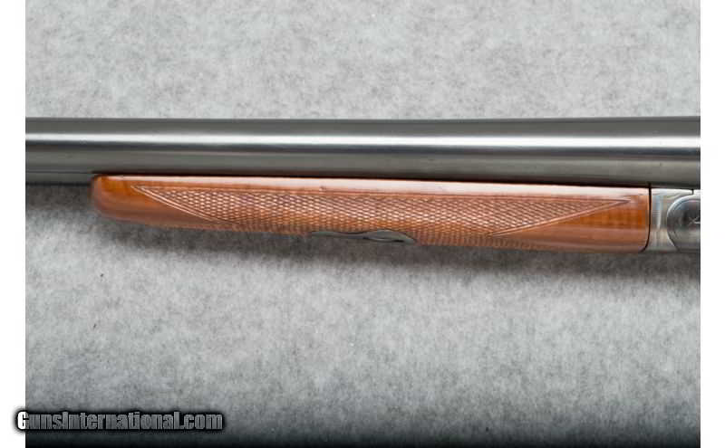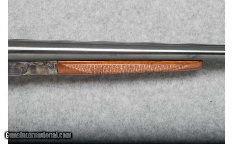 Description: Used. New wood; re-case colored; re-blued. SOLD Curio/Relic: Yes Caliber Info: 12 Ga. Chambers: 2 3/4 Metal Condition: Very good Wood Condition: Very good Bore Condition: Clean and bright Barrels: 26 Triggers: Double triggers Stock: Straight grip checkered walnut Stock Dimensions: LOP - 15 Fore End: Splinter style checkered walnut Butt Pad: Brown rubber pad Weight: 6 lbs. 9 oz. Sights: Brass bead front; white mid bead Chokes: Fixed - Cylinder & Cylinder Item Location: Sun Prairie, WI |